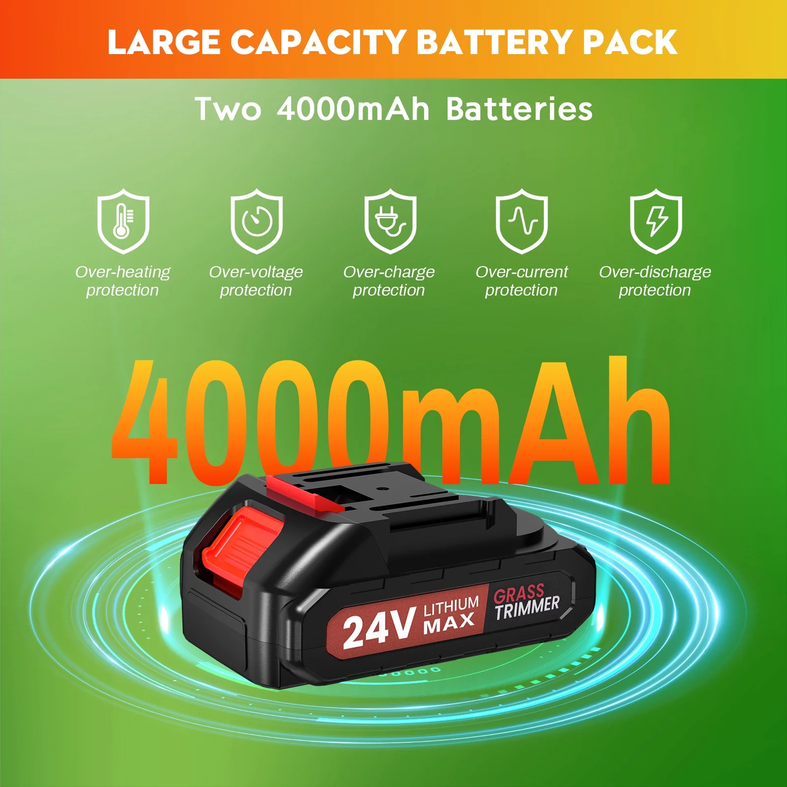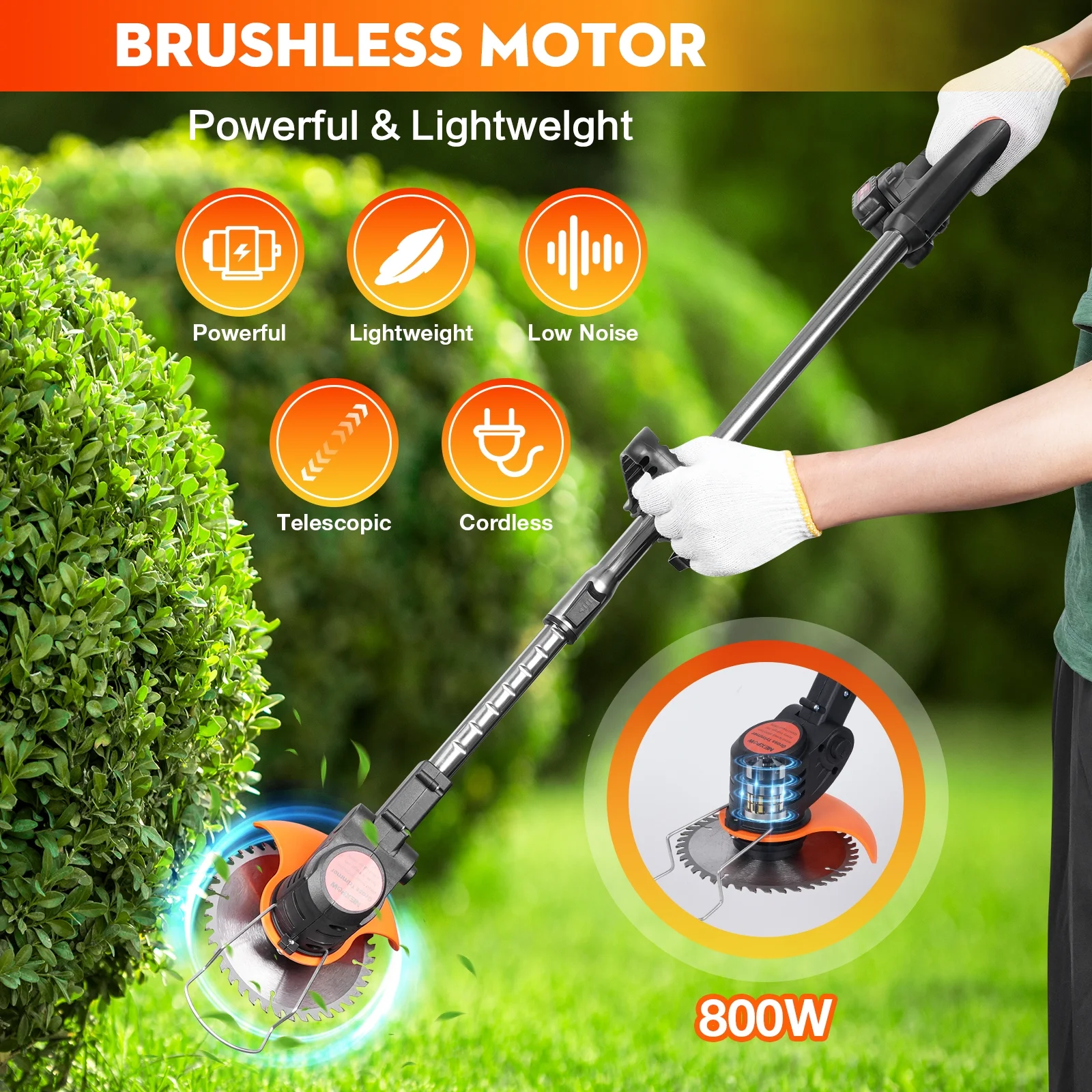NEXPOW 24V Cordless Grass Trimmer – Lightweight Lawn Edger & Weed Cutter for Garden & Yard Care, Orange