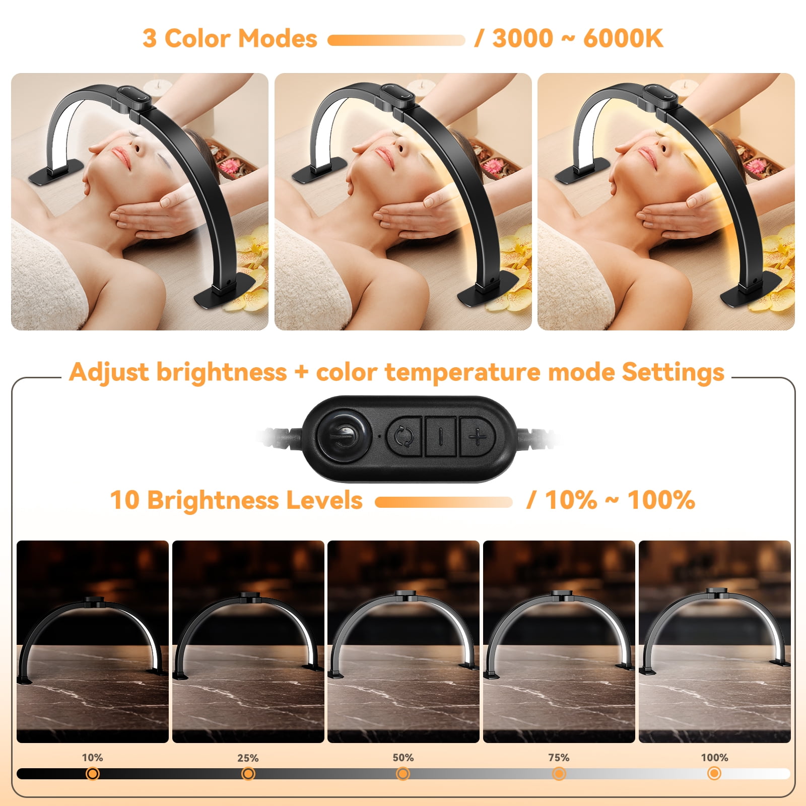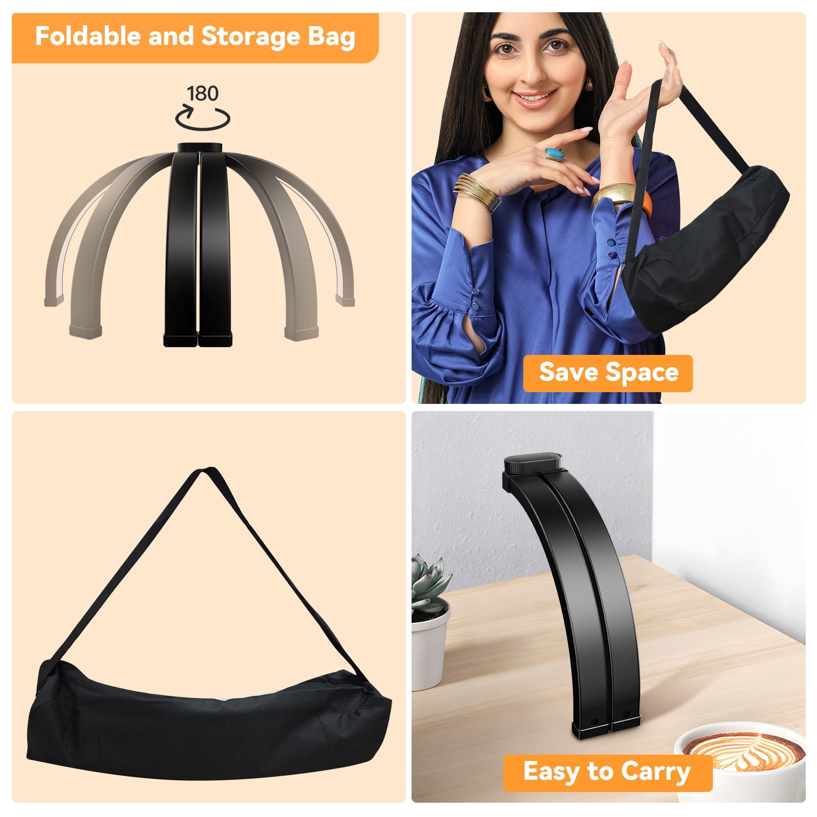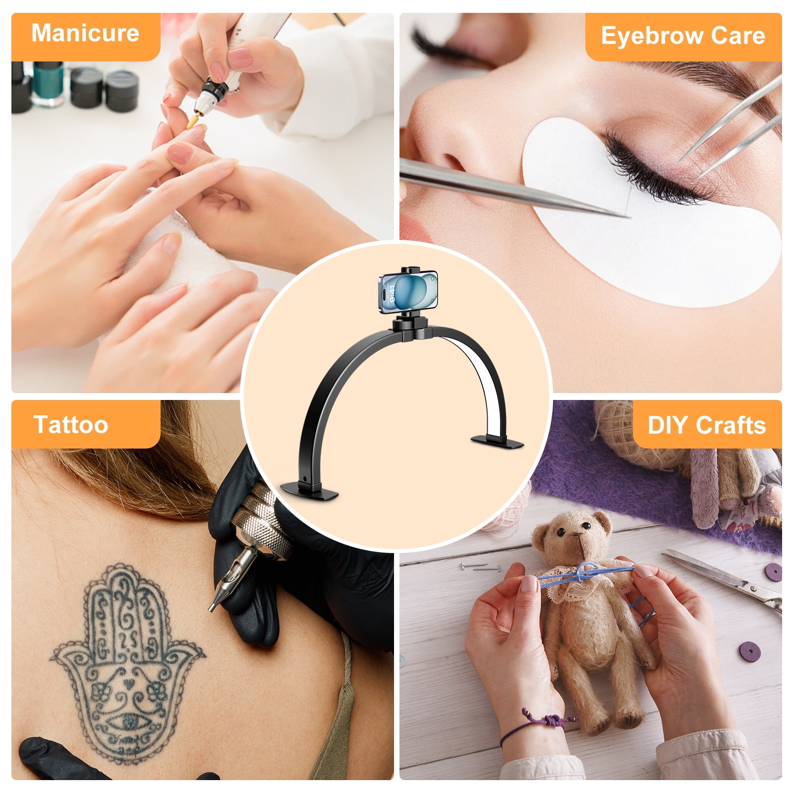 Multiple adjustable modes & LED lights: NEXPURE half-moon lamp has 10 adjustable lights to meet the needs of different scenes. 3 temperature modes (3000k-6000k) adapt to various environments, provide stepless dimming function, protect eyes and reduce fatigue. High-efficiency LED light source, low energy consumption and long life. Multiple scenes can be applied: The nail table half-moon lamp is not only suitable for professional manicurists, but also for professional facial care, eyelashes, tattoos, crafts, handmade DIY, etc. In addition, it is also equipped with a mobile phone holder function, allowing you to easily fix your mobile phone when doing manicure, makeup live broadcast or online teaching, freeing your hands. Foldable nail craft lamp: With an innovative arc semicircular design, it perfectly covers the nail area, and the extended design provides a wide irradiation range to ensure uniform illumination of each fingertip. The lamp adopts a foldable structure and comes with a storage bag. It can be quickly folded after use for easy carrying and storage. Easy installation: First open the foldable nail lamp, install 2 rectangular iron plate bases, snap into the bottom of the lamp, and then connect the adapter to easily install it without additional tools. The unique non-slip base design avoids vibrations, allowing you to concentrate on your work. Perfect Gift Choice: This half-moon desk lamp is perfect for nail art enthusiasts, DIY craft beginners, and anyone who likes creative projects. It is a great gift for birthdays, holidays, and special occasions such as Christmas, Valentine’s Day, and Thanksgiving.