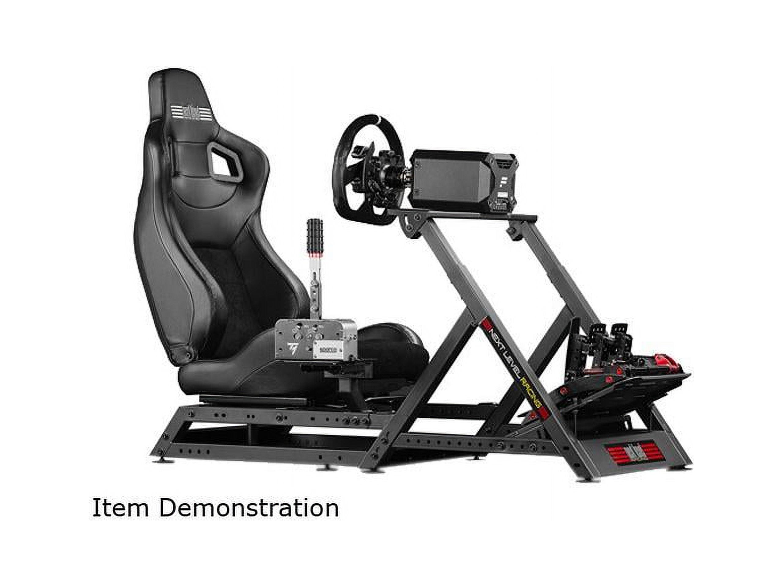 · Compatible with Wheel Stand DD and future Wheel Stand 2.0 · Compatible with Next Level Racing® Motion products · Designed with breathable fabric with added leather trim for a slick design · Custom reclining chair with angle and distance adjustment · Premium industry manufacturing to ensure durability and strength · Gear shifter distance adjustable. Gear Shifter and Handbrake Support (Can also support 2 x Thrustmaster® TSS at the same time) · Buttkicker® Gamer 2 adaptor and height adjustable feet included · Compatible with Next Level Racing® Accessories range