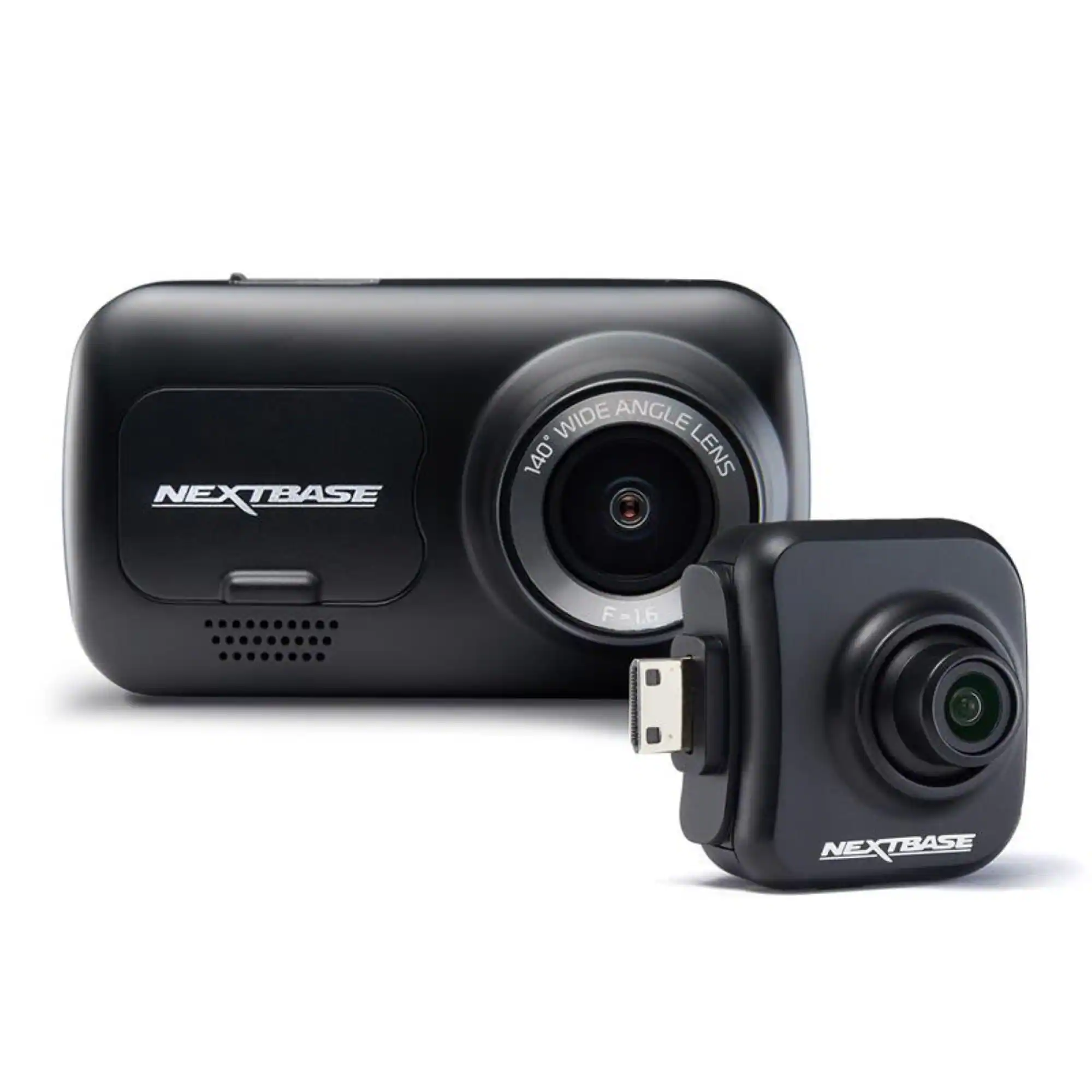 Capture high-definition 1080p footage with the Nextbase Series 2 dash cam, featuring a 140-degree wide-angle lens and a compact design for discreet placement. View footage clearly on the 2.5-inch HD IPS screen. The intelligent parking mode automatically records if motion is detected or if the vehicle is bumped while parked. Enhance your vehicle surveillance with the Nextbase rear-view camera, equipped with a 30-degree telephoto lens that captures clear footage behind your vehicle, offering a rearview mirror-like perspective for added safety while driving.