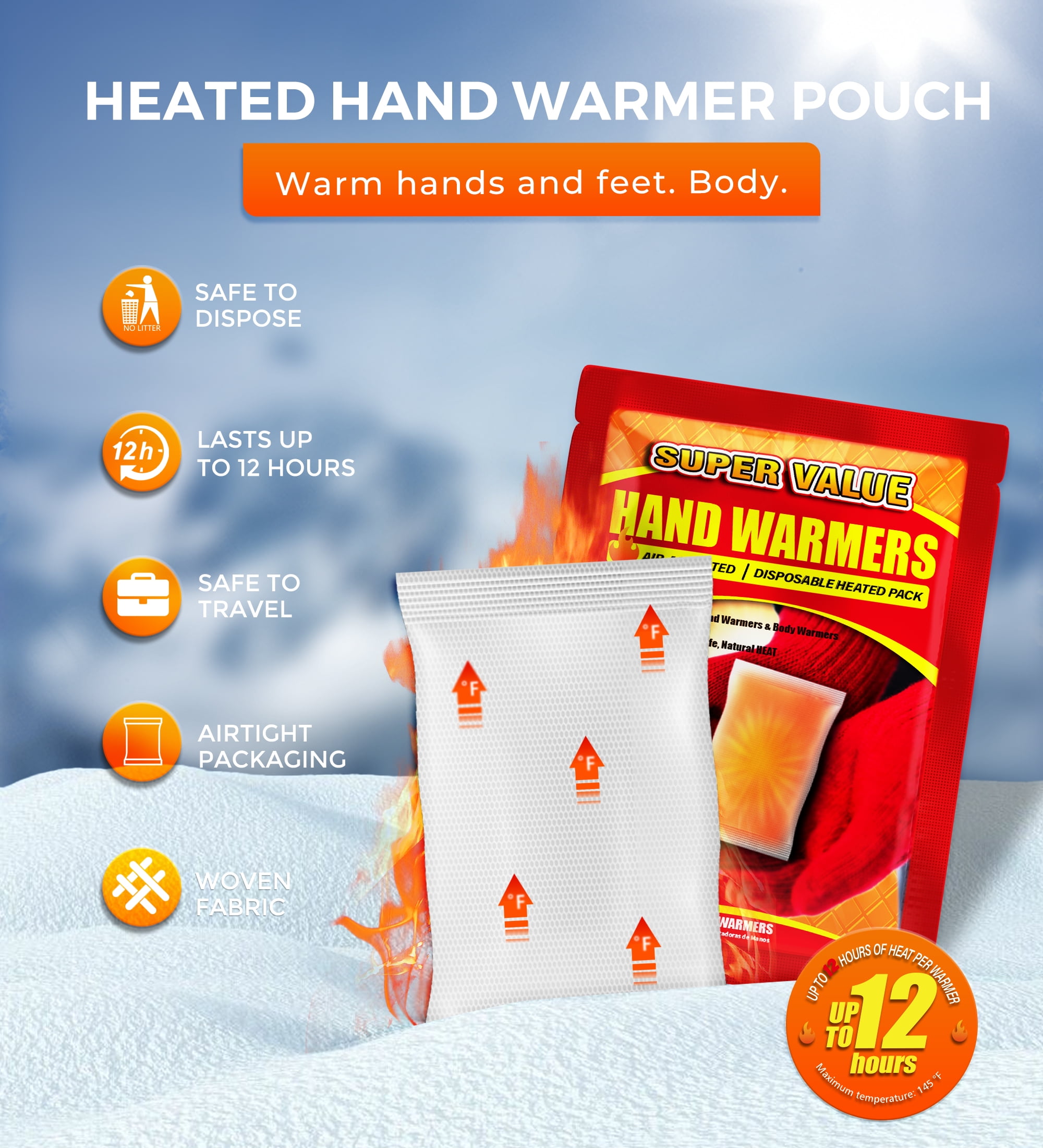 NATURAL SAFETY, Odorless, Disposable, Single-Use Item, Do Not Apply Directly to The Skin. TO ACTIVATE – Tear open outer package, remove warmer, shake to activate. Warmer heats up in 10-20 minutes. If heat decreases, expose warmer to air and shake. After use, dispose with regular garbage. MULTIPURPOSE WARMERS: Single use air-activated heat packs that provide everyday warmth and are ideal for keeping your body warm when the temperature gets cold. NFTIGB disposable warmers are available in several styles designed for your hands, feet, and body. WHEN TO USE? At winter Events, Outdoor Sporting Events, Hunting and Fishing, Camping and Hiking, Working in The Yard, Jogging or Taking Your Pet for A Walk. Convenient, Compact, Portable – Easily fits inside your gloves or pocket to bring quick and gentle natural heat. SUPER LONG-LASTING HEAT: Up to 12 hours of heat, warming your hands, body. Ideal for skiers, fishermen, hunters, campers, and all outdoor activities.