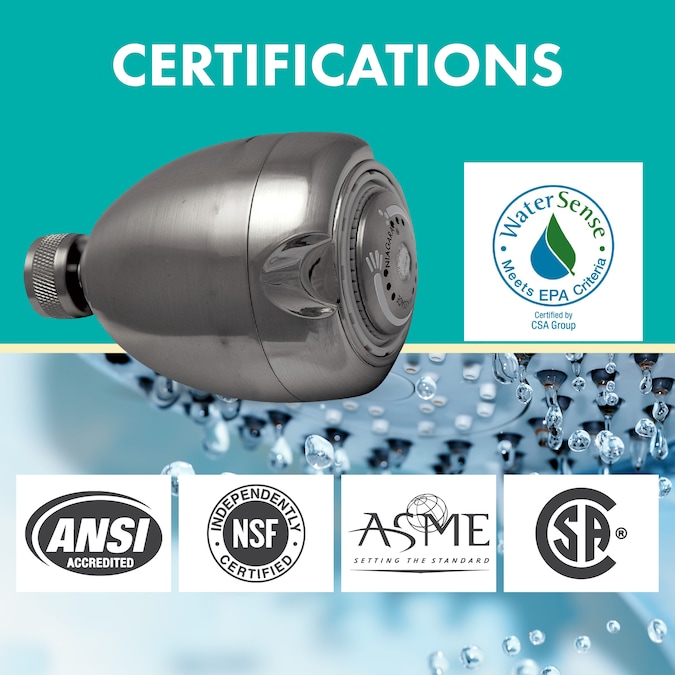 - ANSI, NSF, ASME, and CSA listed and Watersense compliant showerhead
