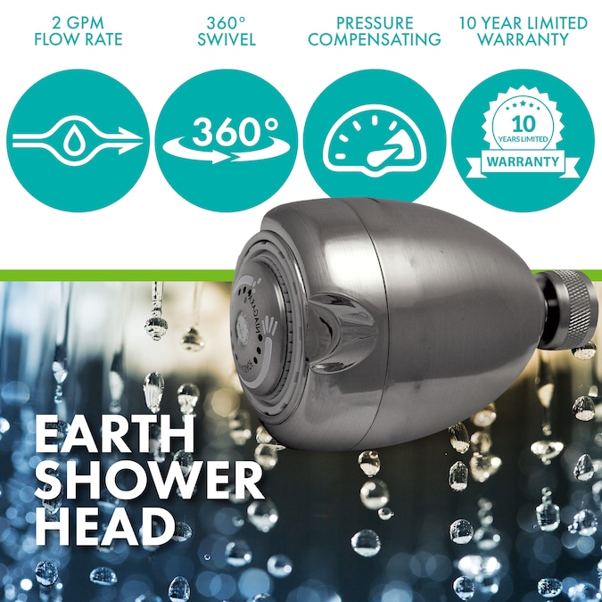 Get a luxurious, high-performance shower experience with our Earth Spa series 2 GPM Fixed Shower Head. This fashionable, adjustable shower head has the feel and function of a luxury bathroom accessory while giving you annual savings in water and heating costs. Our water-saving shower head uses pressure compensating technology to provide a consistent and steady spray at nearly any water pressure.This sturdy bathroom essential is a welcome addition to any walk-in shower or bathroom shower undergoing home improvement. It swivels 360 degrees on a sturdy ball joint that can direct a luxurious downward spray wherever you need it. High impact-resistant polycarbonate thermoplastic is also used in its construction so you get a corrosion-free fixture that lasts for ages. Earth Spa showerheads are durable, stylish energy savers that don’t compromise on your bathing experience.