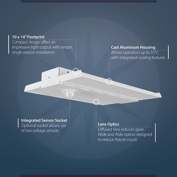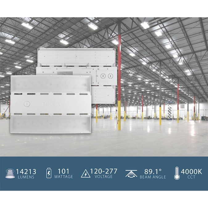 The HML1 is the newest addition to NICOR’s high bay product family. With it’s slim 10×14” footprint (on smaller wattages), the HML1 offers the high performance of a full-size fixture in a compact package. Available in 4000K and 5000K color temperatures with a variety of wattage and aisle distribution options, making it the ideal solution to replace traditional fluorescent fixtures. The HML1 also features a sensor socket option, allowing for field installation of motion sensor accessories adding to its versatility. The DLC 5.1 Premium fixture is equipped with built in 0-10V Dimming (full-range) and is Damp-Location Rated. Included is a V-Hook and Chain mounting system for easy installation. With its durable single-piece cast aluminum design, the HML1 is perfect for rugged applications like warehouses, gymnasiums, and other industrial or commercial spaces.