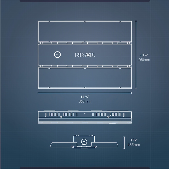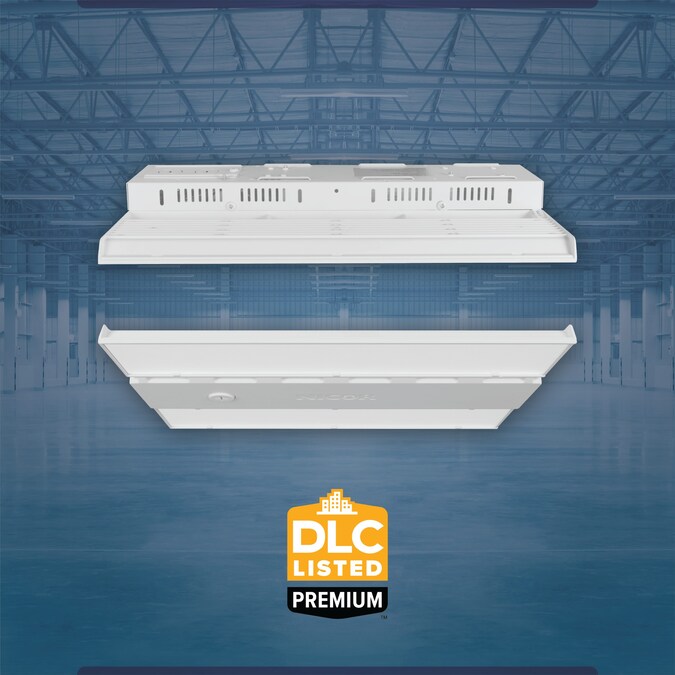 The HML1 is the newest addition to NICOR’s high bay product family. With it’s slim 10×14” footprint (on smaller wattages), the HML1 offers the high performance of a full-size fixture in a compact package. Available in 4000K and 5000K color temperatures with a variety of wattage and aisle distribution options, making it the ideal solution to replace traditional fluorescent fixtures. The HML1 also features a sensor socket option, allowing for field installation of motion sensor accessories adding to its versatility. The DLC 5.1 Premium fixture is equipped with built in 0-10V Dimming (full-range) and is Damp-Location Rated. Included is a V-Hook and Chain mounting system for easy installation. With its durable single-piece cast aluminum design, the HML1 is perfect for rugged applications like warehouses, gymnasiums, and other industrial or commercial spaces.