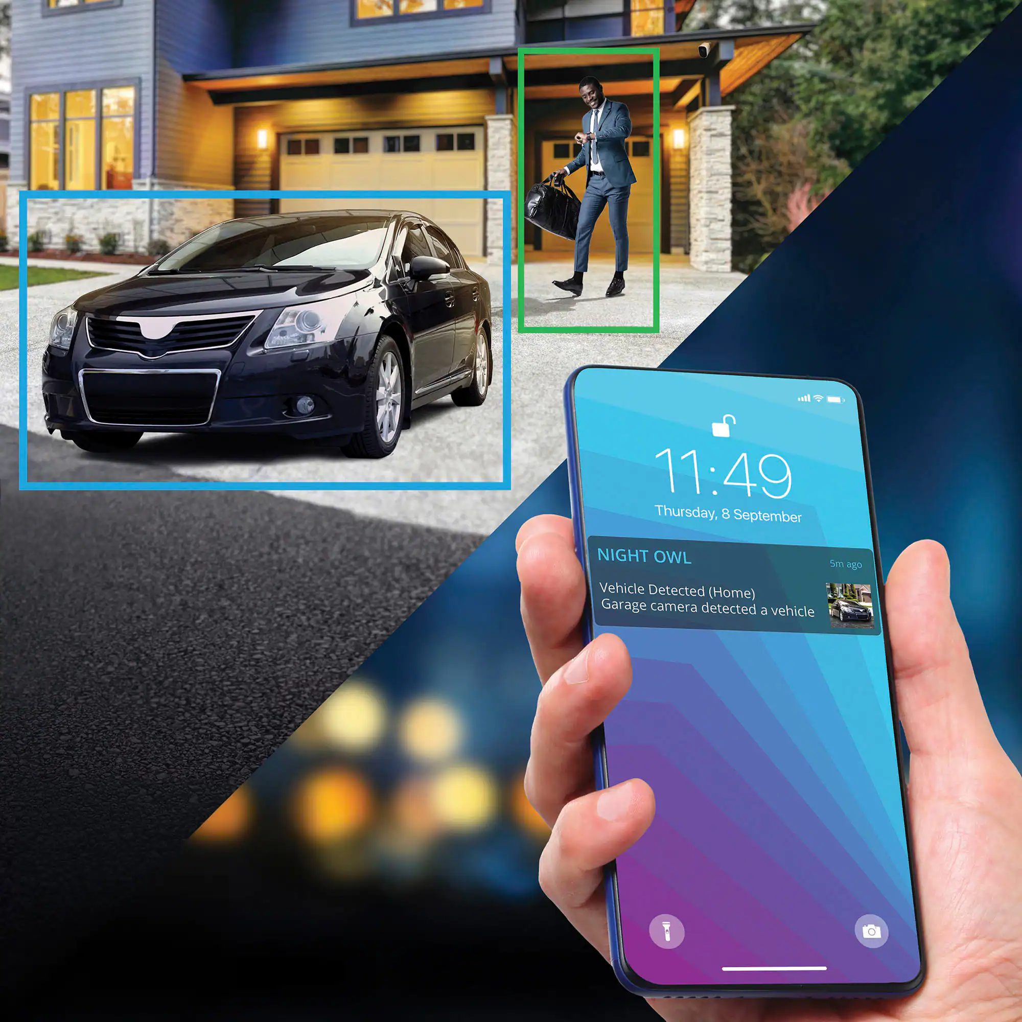 Introducing the Night Owl Wi-Fi Hub with Plug-in Wireless 4K Deterrence Cameras, designed to provide unparalleled security and convenience. Each camera captures stunning 4K video and features onboard AI for human and vehicle detection, offering precise alerts that minimize false notifications. Included is a 64GB microSD card for free local storage, with the option to expand to a hard drive (sold separately) for even more storage capacity. With HDMI spot out view, you can easily view your cameras on a TV or monitor utilizing our free mobile app. Built to withstand the elements, these weather-resistant cameras are perfect for both indoor and outdoor use. The cameras are AC-powered, plug-and-play, making them incredibly easy to install and move as your coverage needs change. The Night Owl Wi-Fi Hub creates a secure wireless network, safeguarding your data privacy while keeping your property under constant surveillance. By choosing Night Owl, you eliminate the hassle of mandatory monthly fees, subscription costs and hidden charges. Protect your property with confidence, knowing that your data remains private and secure, and enjoy the peace of mind that comes with comprehensive, state-of-the-art surveillance technology.