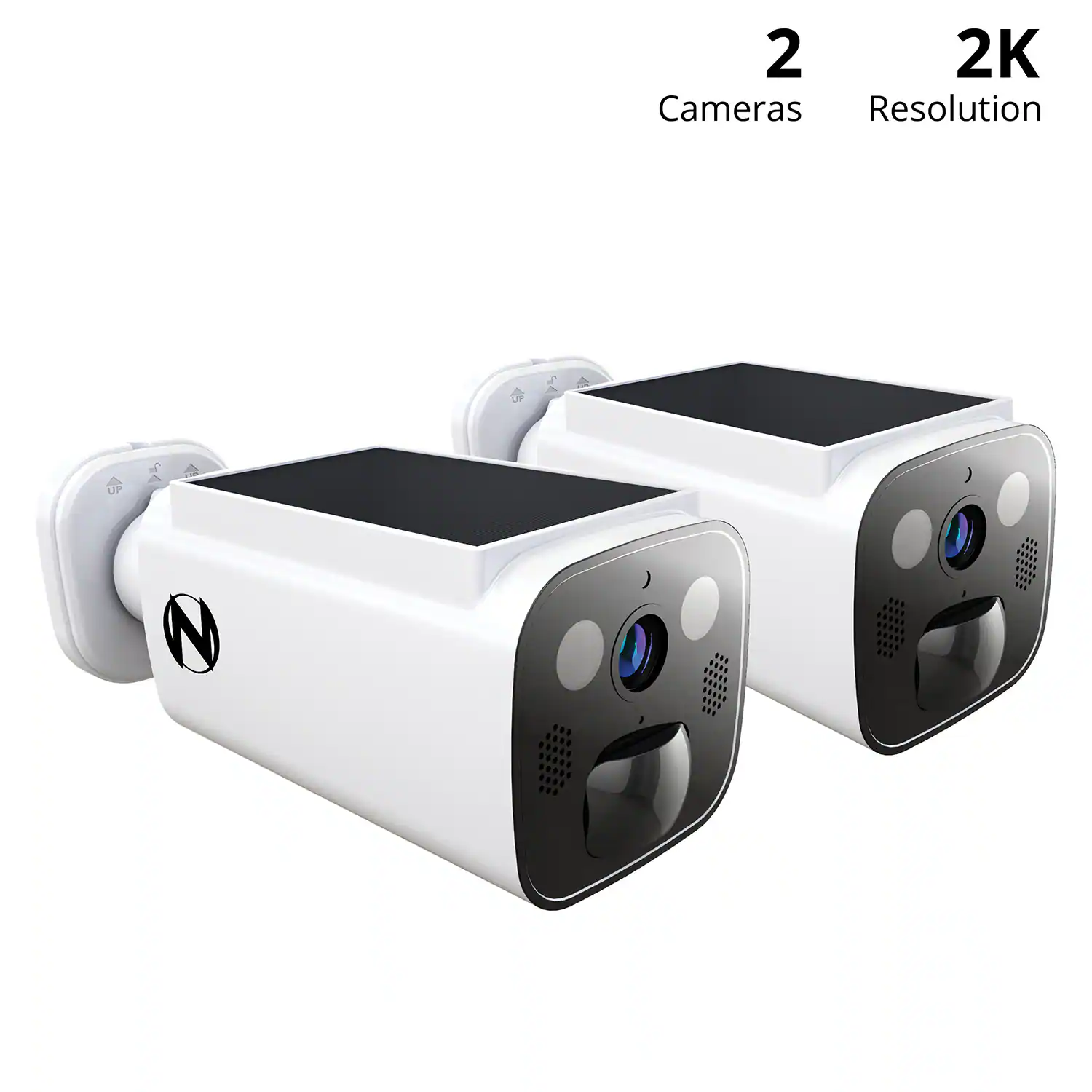 More coverage, zero battery worries. This 2-pack of Night Owl Solar-Powered Wi-Fi 2K Cameras gives you dependable power with built-in solar charging and a backup battery—no more climbing ladders to recharge. Enjoy crystal-clear 2K video, full-color night vision up to 100 ft. Get real-time alerts with motion activation, 2-way audio, voice alerts, and a loud siren. Built tough for any weather, easy to place anywhere.