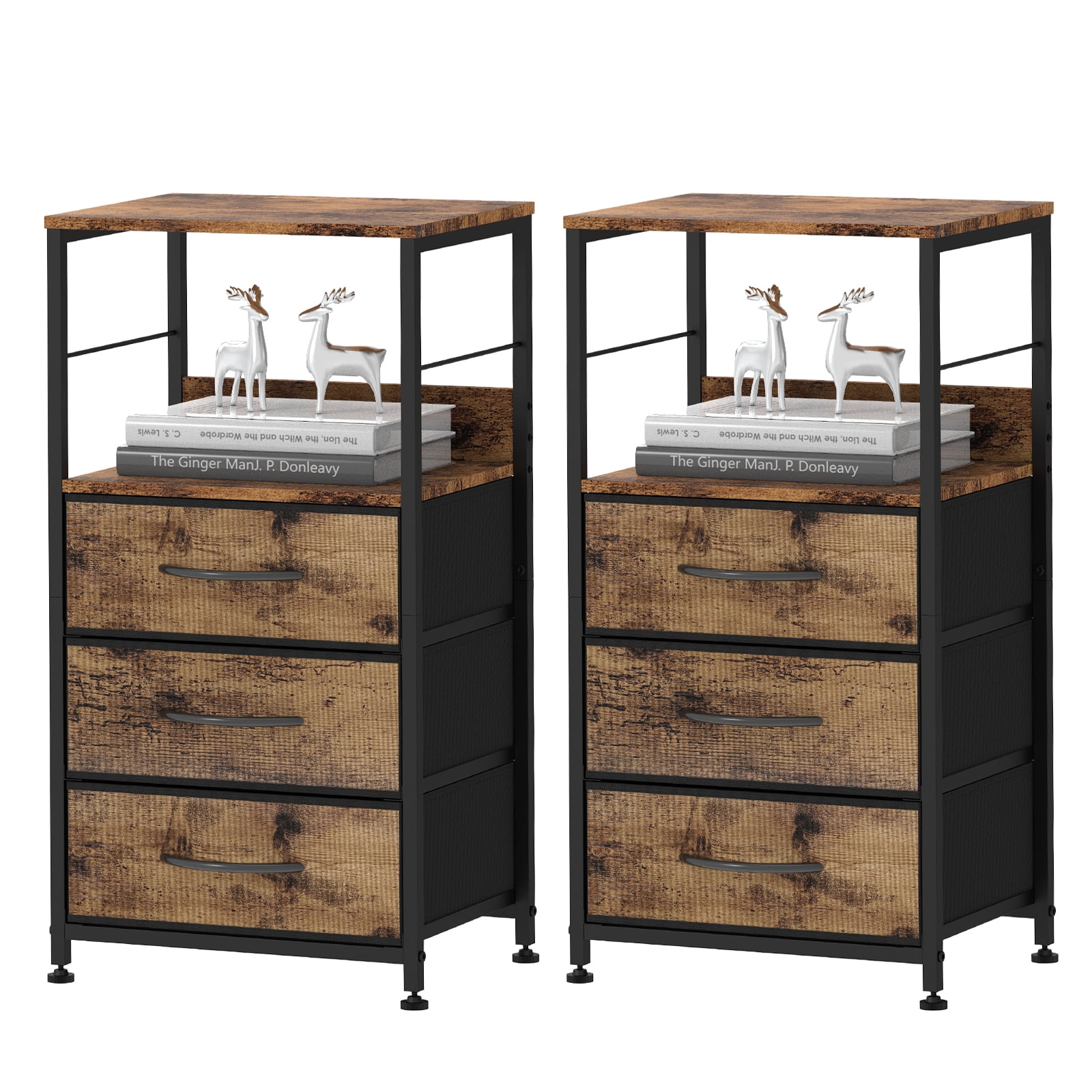 [Bedside Table with Drawers] This nightstand set of 2 with drawers provides three layers of fabric drawers and two layers of open storage shelves, increasing your storage space and making your room more organized, eliminating the hassle of cluttered rooms. [Durable and Stable Structure] The tall nightstand with drawers is composed of high-quality medium density fiberboard, which is thick and durable enough to support long-term use. Four adjustable metal foot pads keep the end table balanced on uneven ground and increase its stability. [Fabric Drawer] This nightstand with storage comes with an easy to pull handle for easy access to items. The drawer is made of high-quality non-woven fabric, lightweight, breathable, and has a simple and elegant appearance. [Multi-Functional Small End Table] Size: 15.7 x 11.8 x 29.3 inches. The just right size won’t take up a lot of space, and this nightstands for bedrooms can be placed in multiple scenes. It can be placed in the living room, bedroom, study, and office, with multiple functions and is very practical.