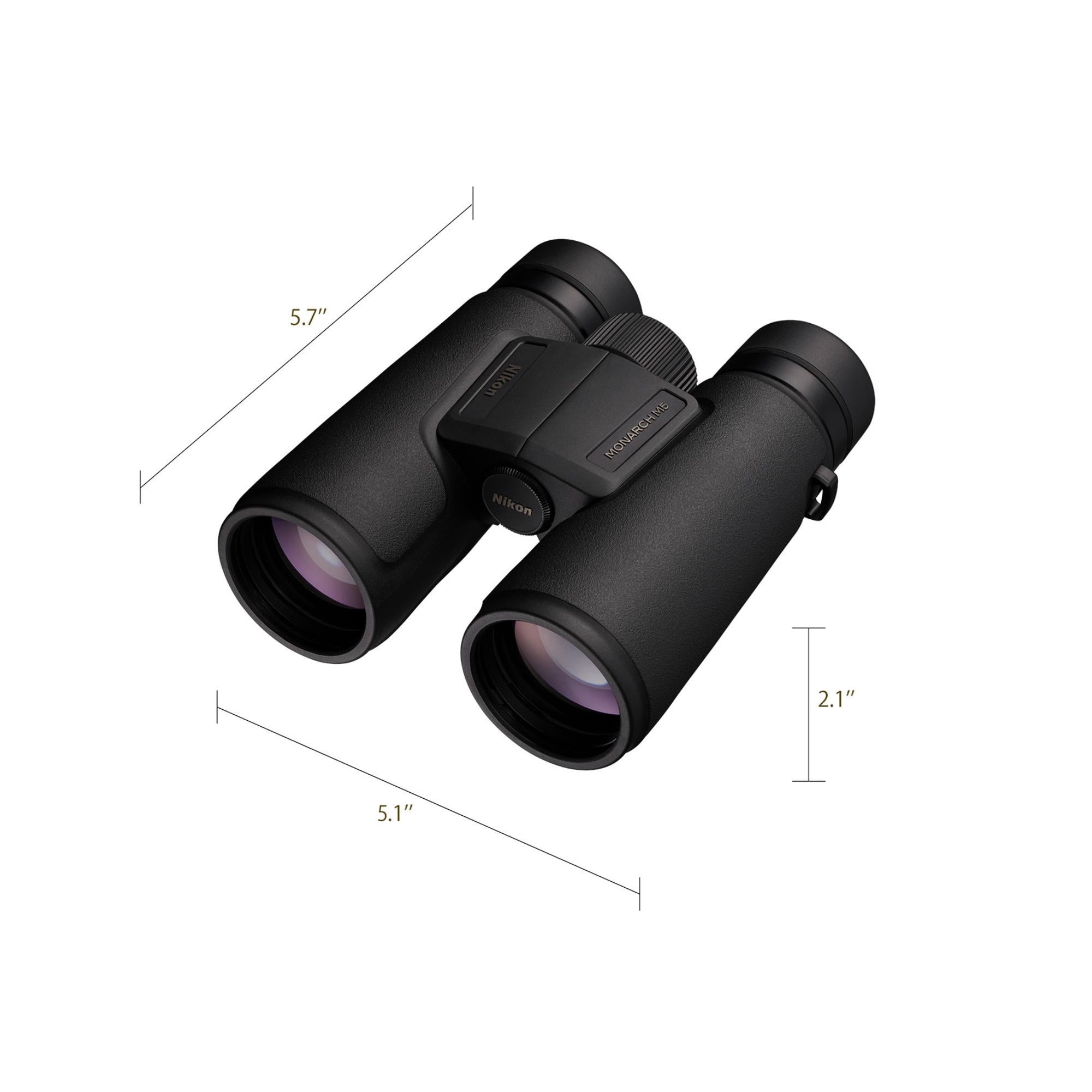 <h1>Nikon Monarch M5 8×42 Binoculars</h1><p>Some of the most amazing moments happen in the light of dawn and dusk and the Monarch M5 is built for these moments. With a wide 42mm objective lens and a large field of view, it gathers more of the scene for you to experience. The adjustable eyecups, with long eye relief, gives you long-lasting comfort during use. The ED glass with dielectric high-reflective multilayer prism and phase-correct coatings will reduce chromatic aberrations and provide you with brighter and natural colored images.</p><h3>Magnification and Objectives</h3><p>The Monarch M5 features a large 42mm objective (front lenses) that gathers abundant light and provides an amazingly clear field of view. 8x magnification means objects appear eight times closer than they actually are.</p><h3>Wide Field of View</h3><p>With an astoundingly wide field of view up to 335-ft at 1000 yards, you can see more details and more of the scene. This makes it easy to locate your subject when trying to view birds and wildlife through trees and landscapes.</p><h3>Renowned Nikon Design</h3><p>The roof prisms on the M5 have a phase-corrected coating applied to prism surfaces for higher resolutions. The eco-friendly multilayer prism coating ensures superior transmittance across the entire visible range, giving you brighter images and more natural colors. Nikon's ED glass eliminates common distortion, chromatic aberrations, and color fringing from your image. This gives you clear high-resolution views in any lighting condition. Get as close as 8.2-ft from your subject for striking high-detailed views. </p><h3>Comfortable Operation</h3><p>You can keep your glasses when viewing landscapes and wildlife thanks to Nikon's comfortable high-eyepoint design. Giving you sufficient space between your brow and the eyecups. The turn and slide rubber eyecups are adjustable, so you can place them right where you want them, The M5 also has an advanced rubber-armored body, giving you a non-slip grip but also protecting your binocular from bumps and bruises. Lastly, the M5 is nitrogen-filled and O-ring sealed for fog-free performance.</p><h3>Lightweight Design</h3><p>At just 22 ounces, it has a compact and lightweight design that allows you to carry it easily on any adventure.</p><h1>Focus Camera Binocular Harness</h1><p>Protect your optics against accidental drops with Focus Camera binocular harness. Lightweight and durable, this binocular and rangefinder harness features a leather back piece that is low profile and stylish. This self-centering back piece keeps your device properly balanced, reducing the neck and back strain during extended use. With this one-size-fits-all shoulder harness, you can adjust the elastic straps according to your needs and comfort.</p><h1>Nikon Lenspen Cleaning System</h1><p>This simple lens cleaning system features a pen-like sheath and soft brush that removes fingerprints, dust, and debris, as well as a round-tipped polishing tool at the other end for smudges. It works with all camera types, and even telescopes, binoculars, and other optics. Safe for multicoated surfaces, it will not scratch or damage lenses.</p><h3>Self-Replenishing Compound</h3><p>This cleaning agent coats the soft pad to remove fingerprints and serious dirt without damaging your multicoated lens.</p><h3>Retractable Brush</h3><p>The retractable brush makes it easy to toss this accessory into a camera bag without taking up much space.</p><h1>Nikon Moisture Wicking Competition Mesh Hat with Adjustable Back Closure (Black)</h1><p>The Nikon Moisture Wicking Competition Mesh Hat is constructed to transport moistu