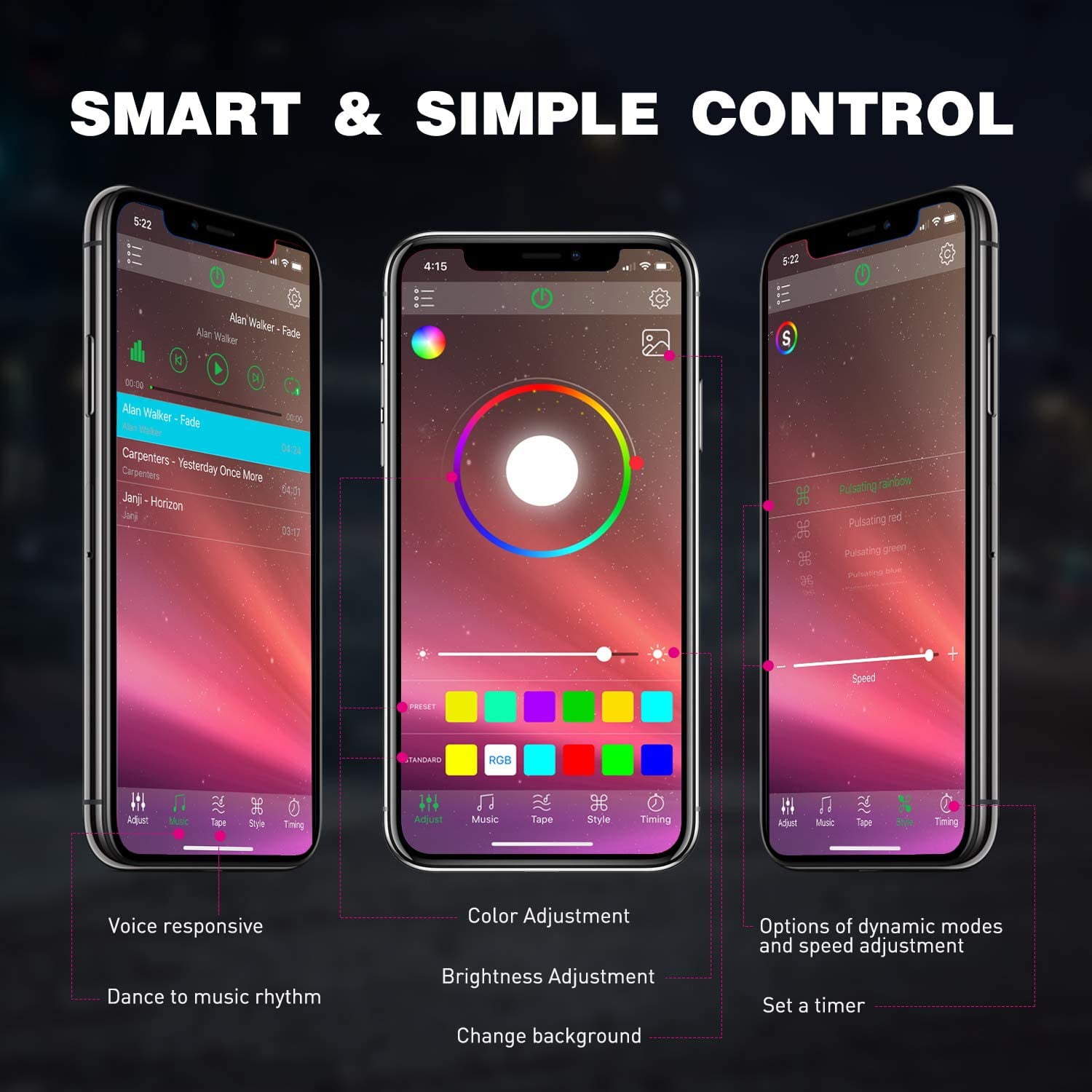 About this item Top bright & durable: employing quality led chips, each light pod outputs 10-14 watts top bright and high intensity RGB colors for exterior truck lighting. Also features of ip68 waterproof and premium aluminum constructed, ensures it a higher performance and a longer lifetime at 50,000 hours Define your style: offers marvelous lighting modes for your options, include millions of different colors with brightness adjustment, 20 modes of flashing & strobing with speed adjustment, sync with the music rhythm, voice response, and timing function. Add on more fun on your ride Small, simple, stable controller: upgraded smaller controller box for less space and easier installation. Compatible with ios 7. 0 android 4.3 above system. Just download app -quick open Bluetooth on your phone and connect devices in app-and then restart “on” button to freely control light and using all functions without errors or bugs Easy installation: based on the mounting position, choose either flat or round/bull bar rubber pad to get lights seated on and mount to the position; then plug and play lights to the 8 way splitter controller wires and fix controller box to a position not overheated; lastly connect controller box to power. (note: connect to a switch first instead directly to battery to avoid drainage) Easy installation: based on the mounting position, choose either flat or round/bull bar rubber pad to get lights seated on and mount to the position; then plug and play lights in the 8 way splitter controller wires and fix the controller box to a position not overheated; lastly connects the controller box to power. (Note: connect to a switch first instead directly to battery to avoid drainage) Wide applications: operating voltage 9-32v DC, can be generally used as exterior bed light, wheel well light on truck, ATV, UTV, RZR, SUV, buggy, motorbike, Raptor, Ranger, Jeep and boat motorcycle etc. add on both style and safety Fit type: Universal Fit