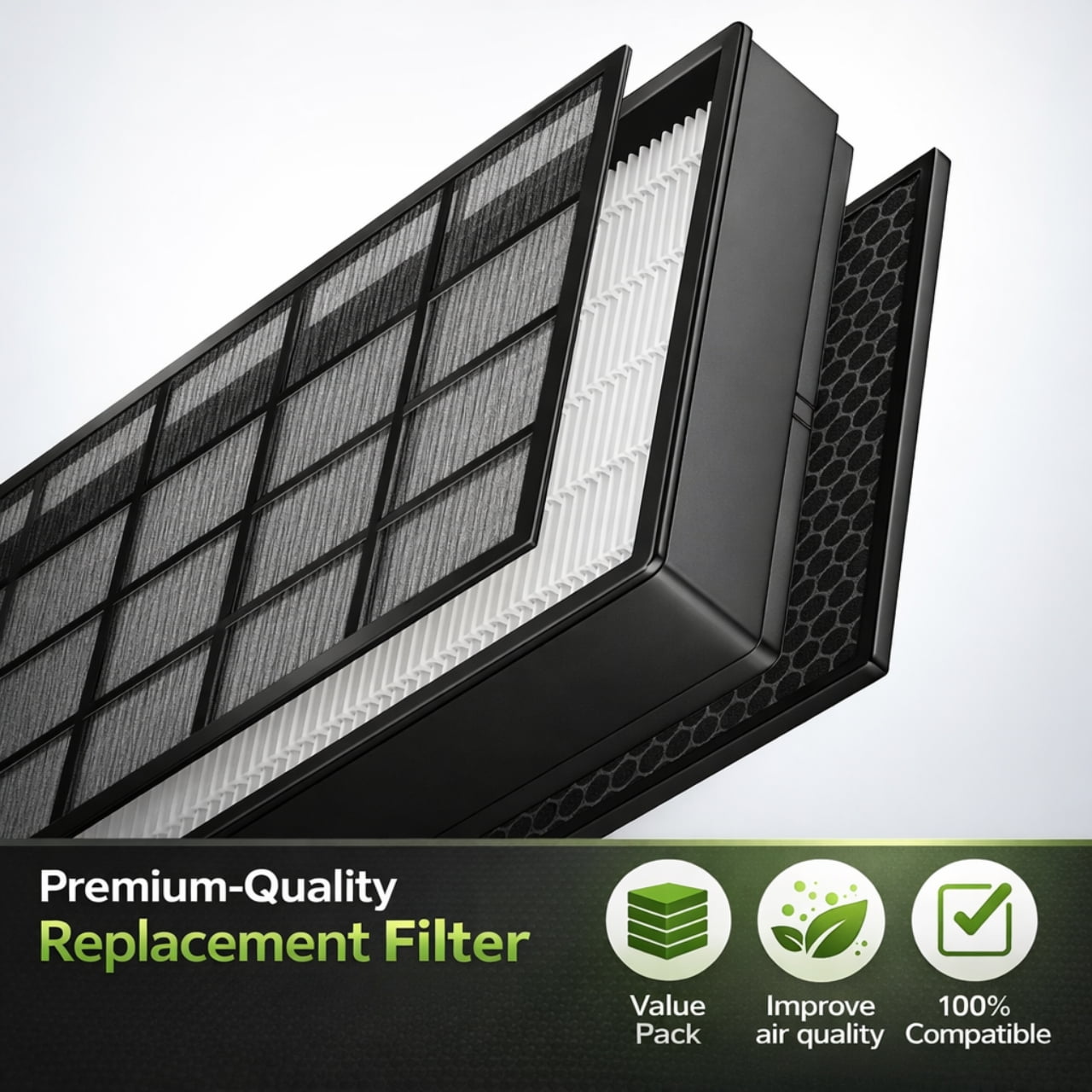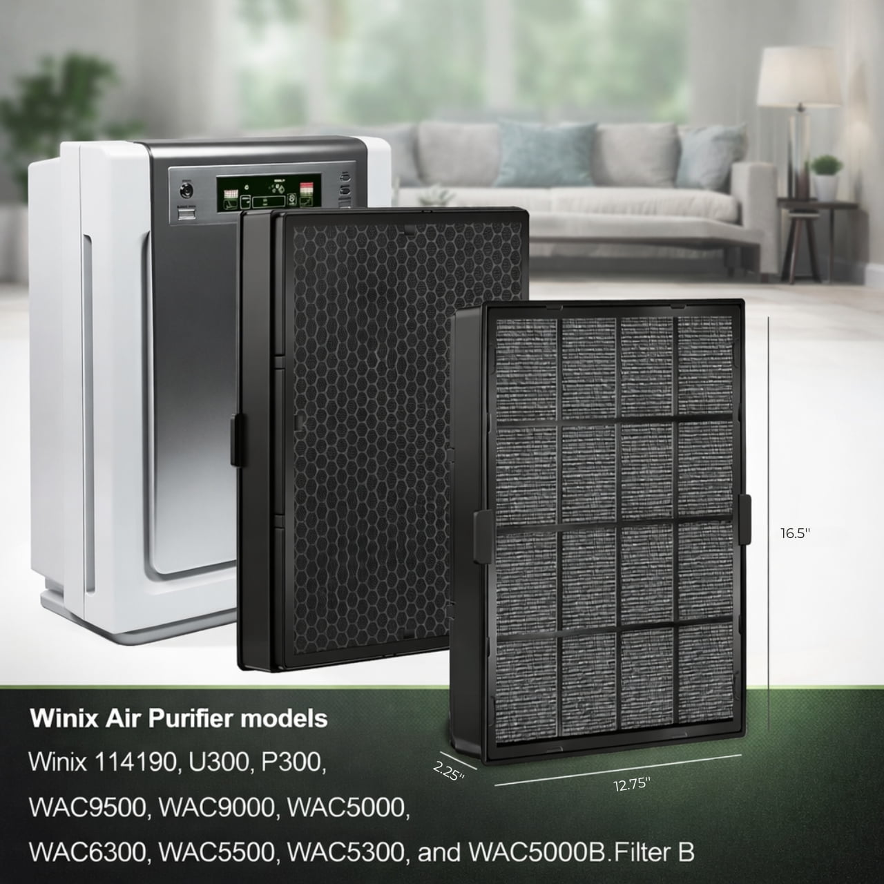 Nispira True HEPA filter + Carbon Filter in cassette compatible with Winix air purifier 9500 and U300. Compared to Winix filter B 114190 The washable Pre-Filter captures larger particles saving the effectiveness of all other filters. High quality HEPA filter capture 99.97% of airborne particles down to 0.3 microns. The activated carbon pre filter eliminates many common household odors and chemical smells Dimension: 16.5″ x 12.75″ x 2.25″. 2 sets of filter included 100% customer satisfaction guaranteed. Quality meets or exceeds leading national brand