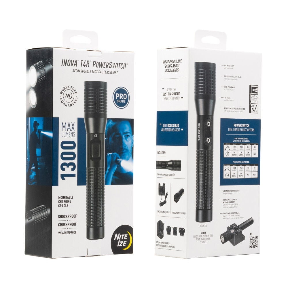 Solve an everyday problem like having a reliable and powerful light source with the Nite Ize INOVA T4R Powerswitch Rechargeable Tactical Flashlight. This tactical flashlight is a must-have for law enforcement and first responders. This flashlight is designed to be your reliable companion for all your outdoor adventures. Whether you’re in an emergency or setting up a campsite, this flashlight is what you need to illuminate your surroundings. This flashlight delivers a maximum brightness of a whopping 1300 lumens. The flashlight’s beam stretches to an impressive distance of 853 feet, making it perfect for professional use. This tactical camping and hiking flashlight offers different modes, including blast, high, medium, low, momentary blast, and strobe. This drop-proof camping accessory is waterproof up to 1 meter and features an impact-resistant head, ensuring it can withstand the rough, outdoorsy life. With the included mountable USB charging cradle, the high-powered lithium-ion battery fully recharges in just 3 hours and will power the T4R for up to 72 hours. With the PowerSwitch technology, you can run the flashlight on its included rechargeable lithium-ion battery or two non-rechargeable CR123 batteries, giving you more flexibility. Our mission at Nite Ize is to design and manufacture inventor-driven products that organize your life, protect your gear, light your way, and creatively solve your everyday problems. Nite Ize began in 1989 with one entrepreneurial spirit, an innovative product idea, a small Colorado cabin, and enough passion to lay the foundation of who we are today. CEO and Founder Rick Case continues to helm the Nite Ize ship, instilling his energy, inventor-driven creativity, and attention to detail into every aspect of our company. We pride ourselves in being fun and functional, trusted and innovative, and obsessively dedicated to making products that support your life.