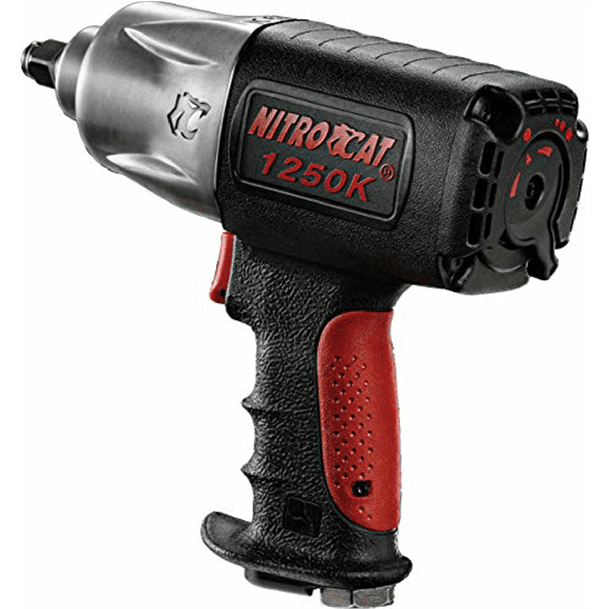 The NITROCAT 1250-K, 1/2 in. Kevlar Twin Clutch Impact Wrench is ideal for heavy duty frame on medium to heavy duty trucks. This no non-sense hard hitting impact outperforms anything in its class with 1300 ft. lb. of loosening torque. It features the most significant advances in the performance of pneumatic power tools in nearly 30 years. The tool has substantially reduced noise levels while retaining more power and torque. It also incorporates a patented, ergonomically engineered handle design to relieve stress and fatigue on the operator hands, wrists and arms. The tools featured patented tuned exhaust muffler technology, allows discharged air to pass without developing back pressure, thus retaining more power, while significantly reducing noise. More Power – Half the Noise. Our unparalleled commitment to product innovation, high service levels, continued product development and expansion truly make AIRCAT/NITROCAT products the #1 Choice in air tools.