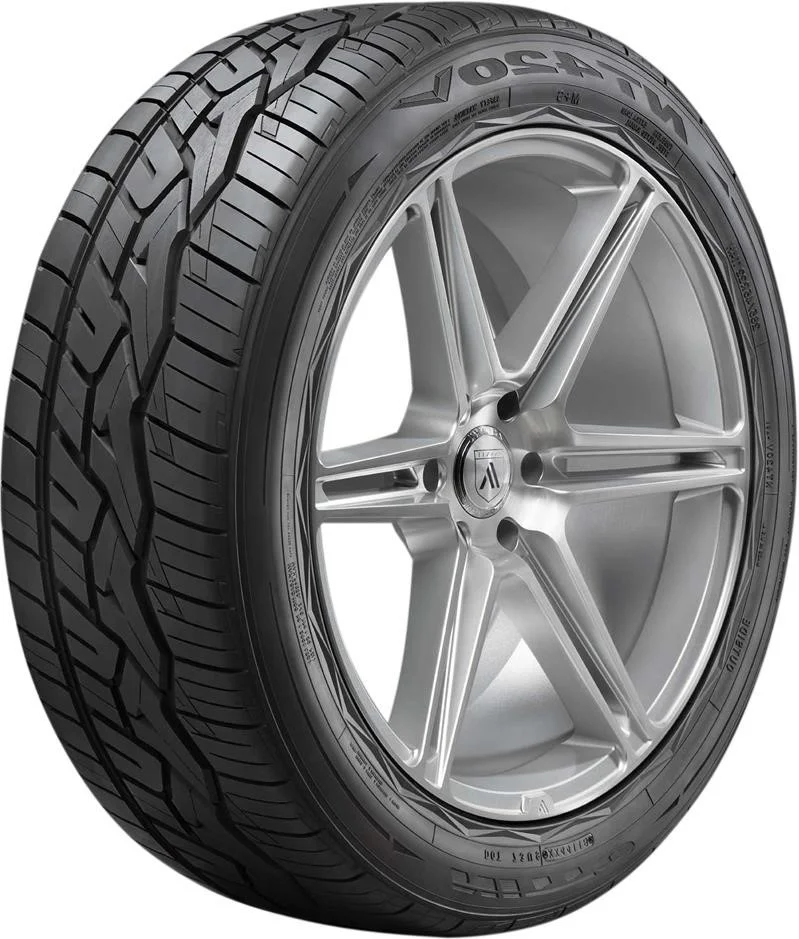 Nitto NT420V 305/35ZR24 112H XL OVERVIEW The Nitto NT420V is an all-season tire for light trucks and offers drivers superior longitudinal traction and cornering grip on dry roads. Large outer tread blocks and an asymmetric tread design maximize the road contact patch to provide stability during cornering, and the NT420V’s sipe and groove pattern lowers road noises and vibrations to create a quiet, comfortable ride for drivers and passengers. Additionally, the NT420V’s extra biting edges increase grip on wet roads for better hydroplaning resistance.