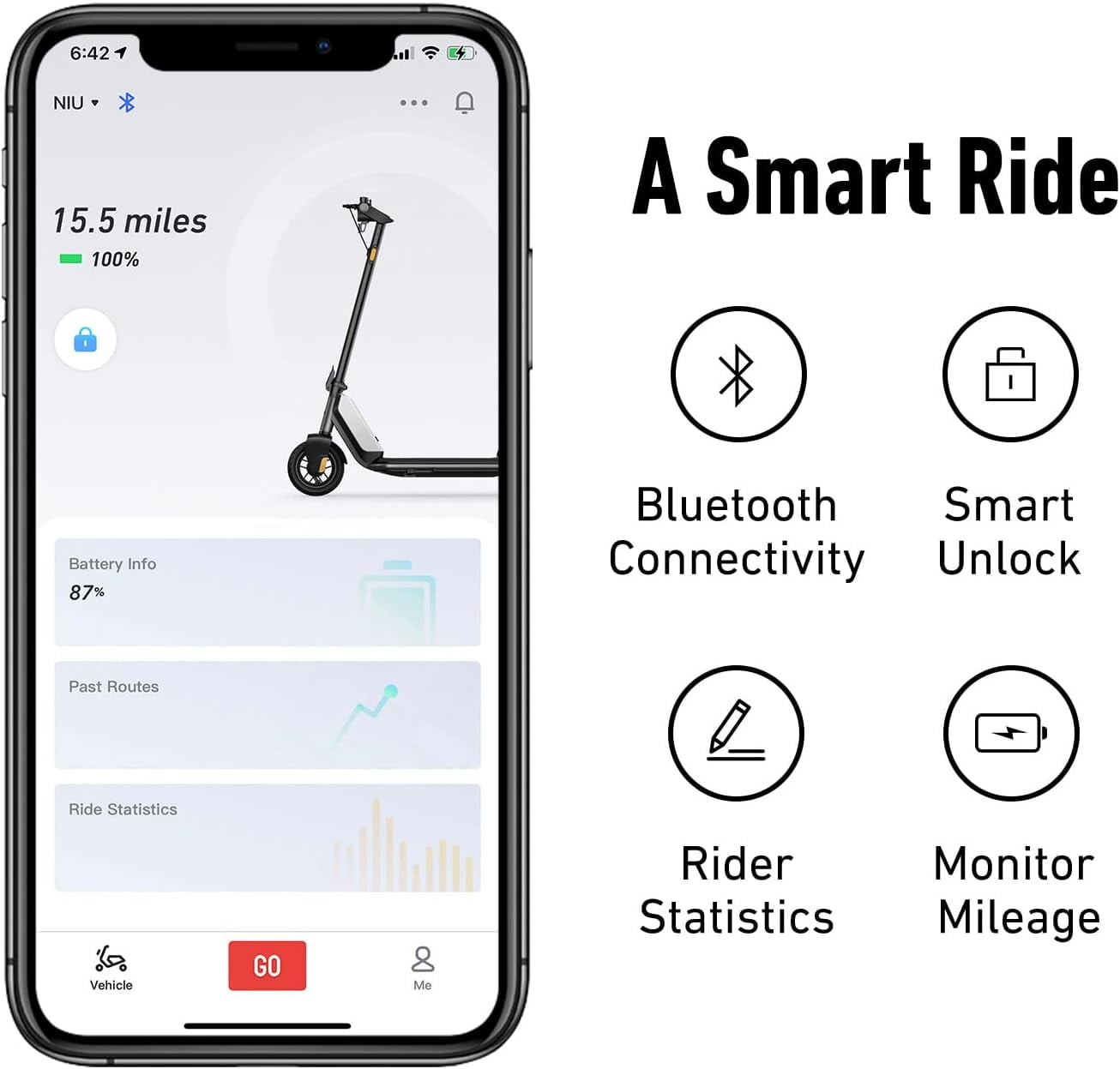 NIU (NIU Technologies) (NASDAQ: NIU), founded in 2014, is the world’s leading provider of smart urban mobility solutions. The KQi1 Pro: The NIU Essential Kick Scooter. The KQi1 Pro features all the awesome essentials of the Sport model, plus quick and easy folding! It’s easy to handle at just 34 pounds, without sacrificing build quality or performance. The 30% larger battery lets you cruise along comfortably for longer, carrying you 15.5 miles on a single charge, while the colorful, back-lit display keeps you informed about your power, speed, and riding mode.