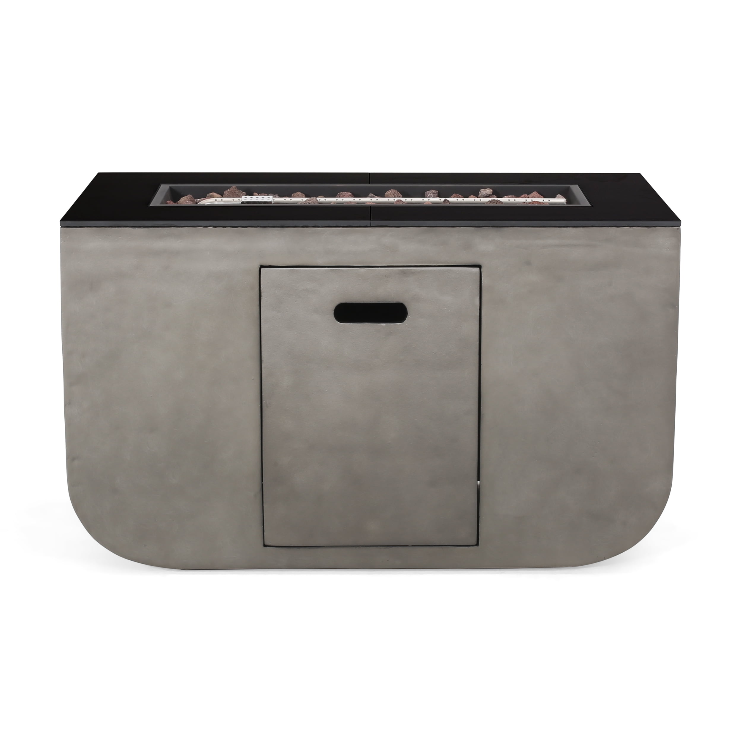 Add a bit of modern grace and a dash of warmth to your backyard or patio space. Made with lightweight concrete, our rectangular fire pit offers an incredible upgrade in style that allows you and your guests to enjoy the outdoors to its fullest. This piece is perfect for outdoor gatherings with its easy seating arrangement and convenient built-in tank holder. From starry night lounging to evening gatherings with friends and family, our fire pit will warm your summer nights with ease. LIGHTWEIGHT CONCRETE: This fire pit is constructed with lightweight concrete for a smooth, modern look. This provides a highly durable structure that can hold a substantial amount of weight. The top of this fire pit is finished with a sleek ceramic top that emphasizes this piece’s modern design. RECTANGULAR FIREPIT: Featuring a rectangular shape, our fire pit allows easy seating arrangement for you and your guests, providing light and warmth all around during those chilly evenings. TANK SPACE INCLUDED: This fire pit comes with a built-in space for your propane gas tank. You can enjoy your fire pit without having to worry about running a hose to the tank or tripping over the exposed tank. DIMENSIONS: Choose an accessory that is the perfect size for you and your furniture. This fire pit is 40.00” W x 20.00” D x 24.00” H. You will love how much your space can transform with the simple addition of this charming fire pit. NO ASSEMBLY: No assembly is required for this fire pit. Simply place the lava rocks in the pit without covering the burner, and then plug in your standard size propane tank and enjoy your fire pit. Features: Includes: One (1) Fire Pit Material: Light Weight Concrete Top Material: Ceramic Finish: Light Gray Top Finish: Gloss Black No Tank Holder Required Hand-Crafted Details No Assembly Required Specifications: Product Dimensions: 24.00″ H x 20.00″ W x 40.00″ D Product Weight: 112.57 lbs