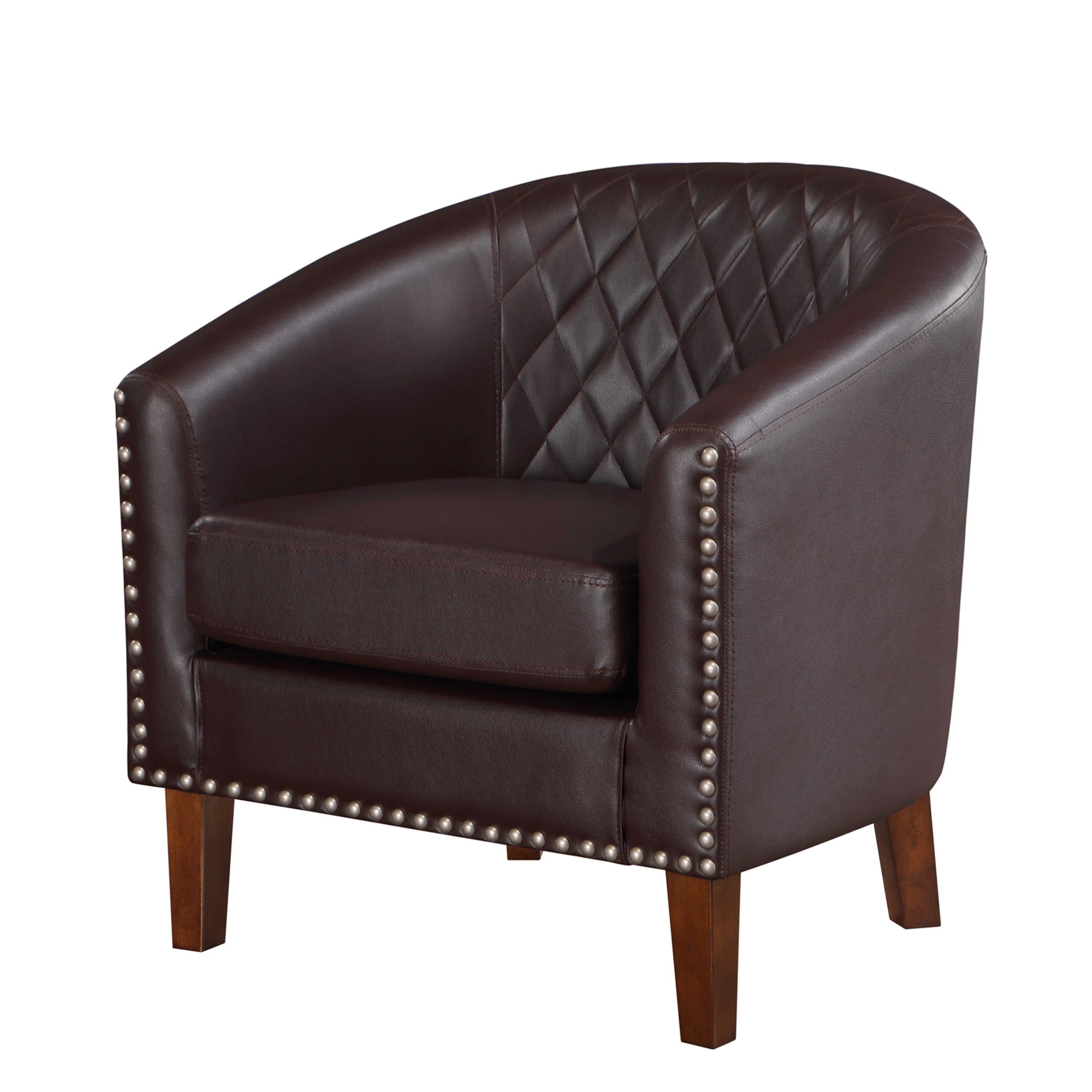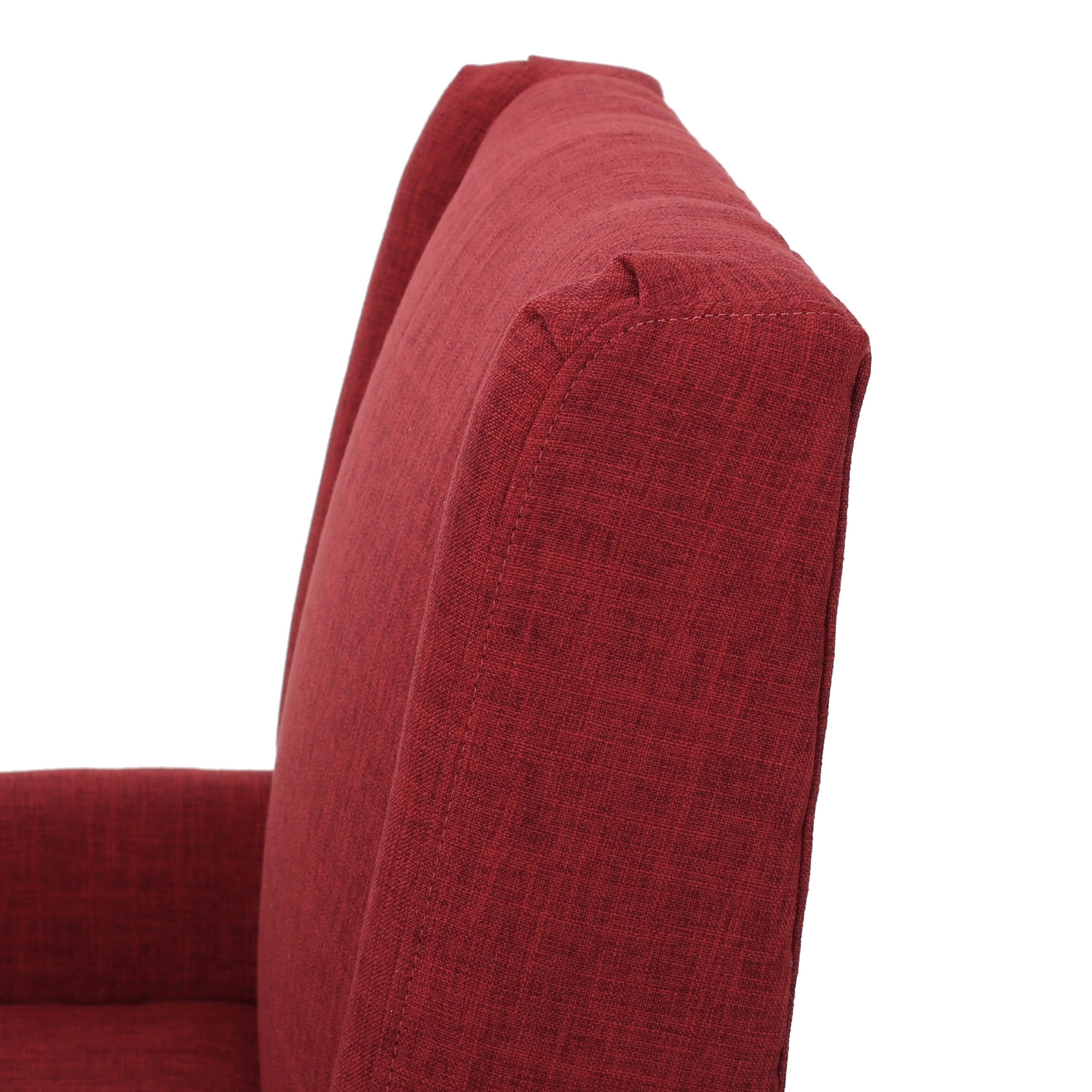 Includes: One (1) Accent Chair Material: Fabric, Rubberwood Dimensions: 27.50 inches deep x 28.50 inches wide x 36.50 inches high Seat dimensions: 18.75 inches high x 21 inches wide x 19.50 inches deep Arm Height: 22.00 inches Color: Red Leg Finish: Natural Stain Fabric Composition: 100% Polyester Assembly Required