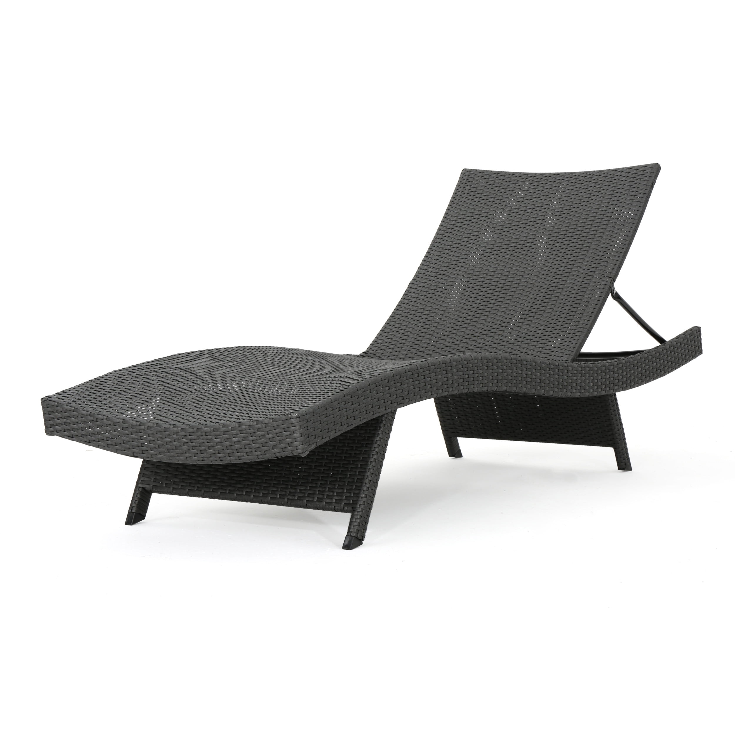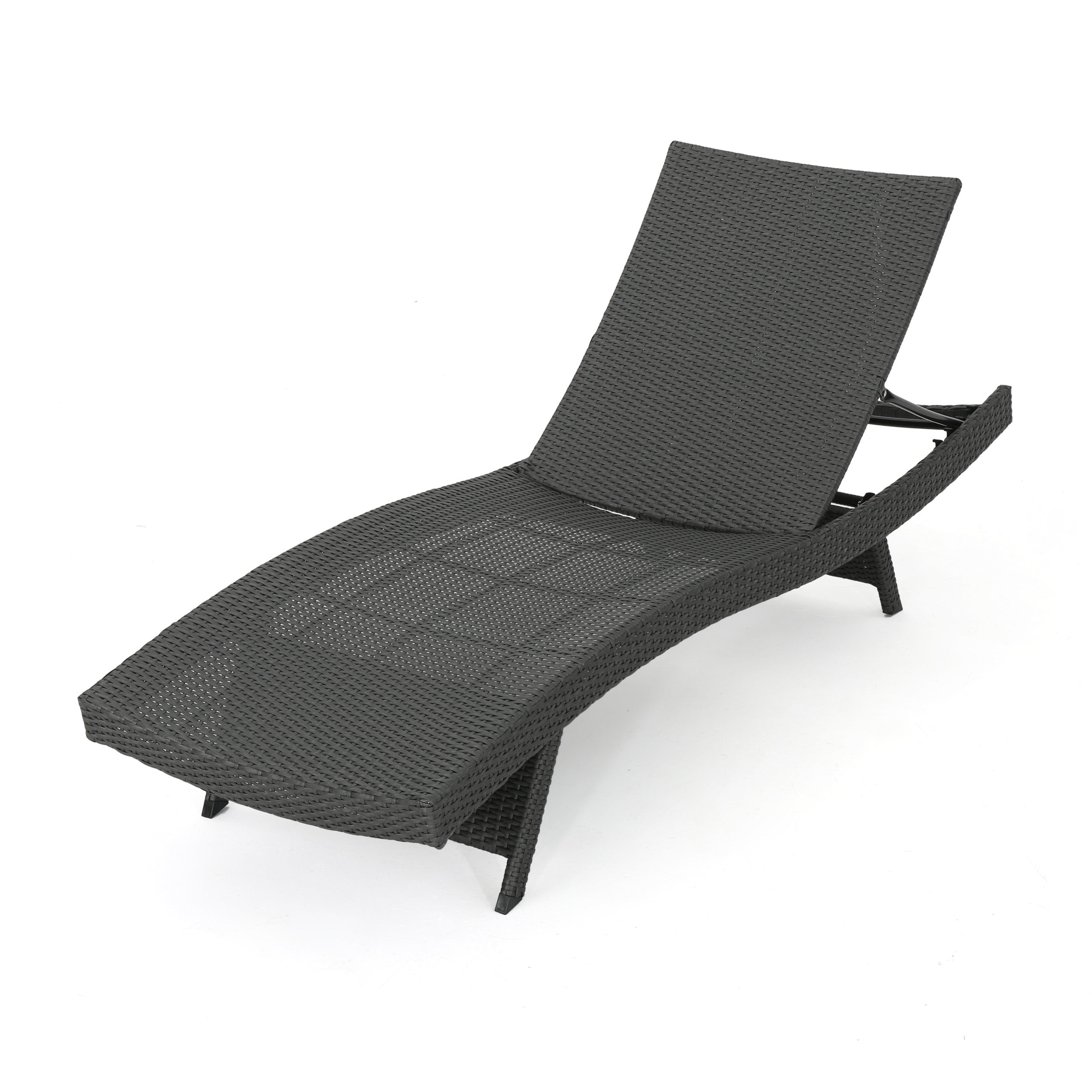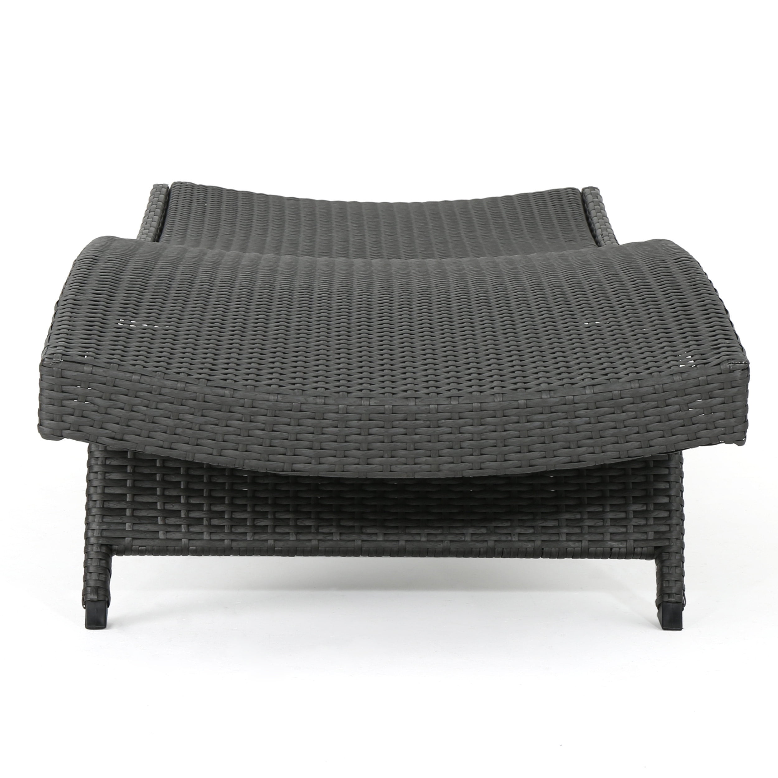 Noble House Anthony Outdoor Wicker Armless Adjustable Chaise Lounge, Set of 2, Grey