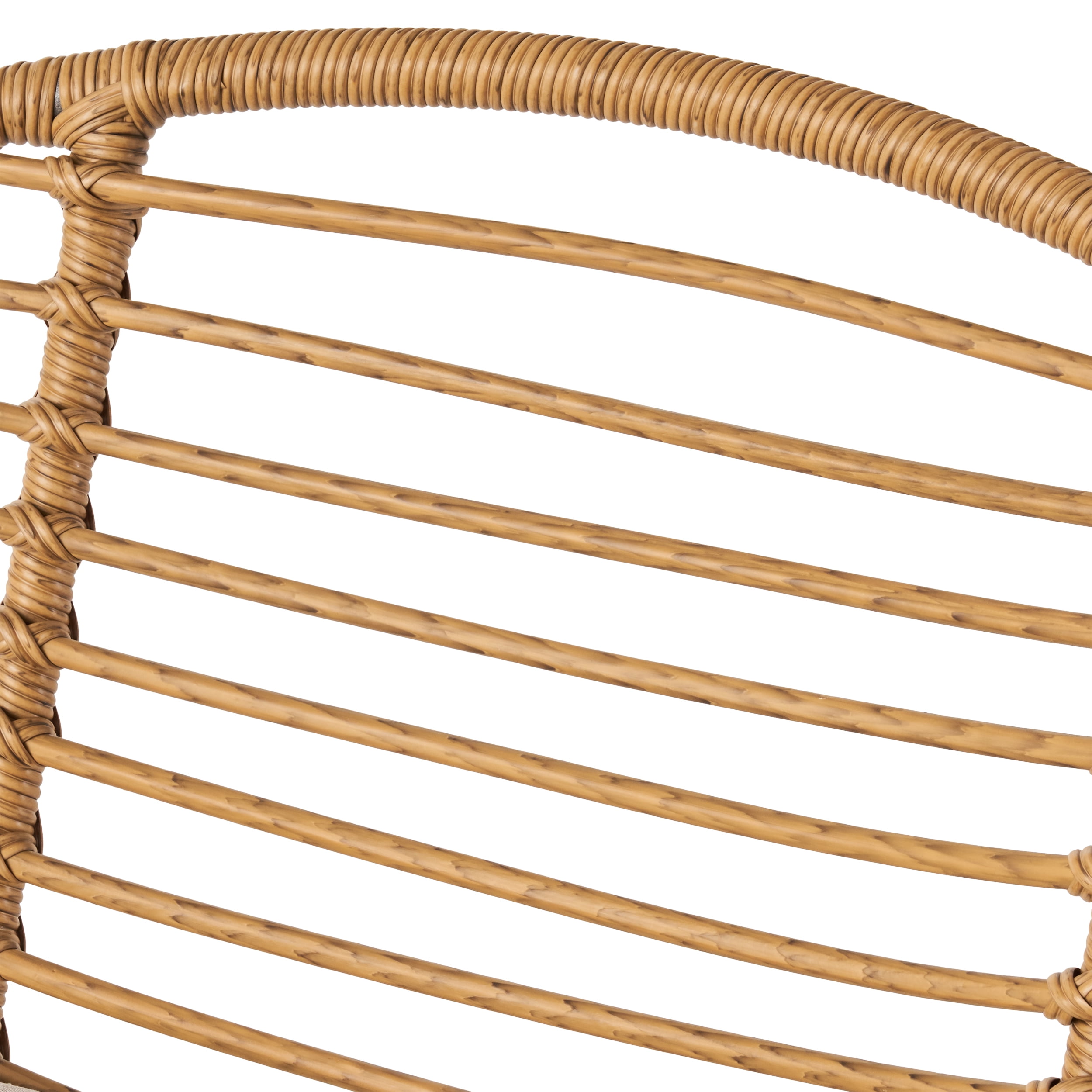 Sit back and relax with a loved one in our delightful basket chair set, a perfect addition to any interior space. Featuring a delightful hand-wrapped look and water-resistant cushion, our chair provides a timeless style to your home while providing ultimate comfort. Consisting of a steel frame and rattan material, this charming piece is made to last with its durable structure and intricately crafted finish. Sure to become your favorite spot to relax, our chair set will last you for years to come. MODERN: With clean lines contrasted perfectly by its rounded silhouette, our basket chair is the ideal modern accessory for your interior space. Finished with thin angled legs, this chair not only has a sleek, minimalistic look but also provides a stable structure. POLYETHYLENE RATTAN: Featuring a long-lasting woven seat, this style is not only incredibly durable but also provides a versatile appearance. The handcrafted details of this material allow this piece to blend seamlessly with your decor. WATER-RESISTANT CUSHIONS: Our cushions are covered with a non-porous material that makes cleaning any spill a breeze. STEEL FRAME: The frame of this chair consists of a steel material, making this incredibly durable and easy to maintain. Finished with a polished black color, this frame emphasizes its modern style. ASSEMBLY REQUIRED: Some assembly is required for this set. All of the instructions and tools needed for assembly are included. This comes as a set of two. Features: Includes: Two (2) Chairs Material: Polyurethane Rattan Cushion Material: Water Resistant Fabric Cushion Composition: 100% Olefin Leg Material: Steel Rattan Finish: Light Brown Cushion Color: Beige Leg Finish: Black Hand Crafted Details Specifications: Product Dimensions: 29.75″H x 37″W x 23.25″D Product Weight: 24.26 lbs Seat Dimensions: 16.5″H x 20″W x 17″D Arm Height: 24″H