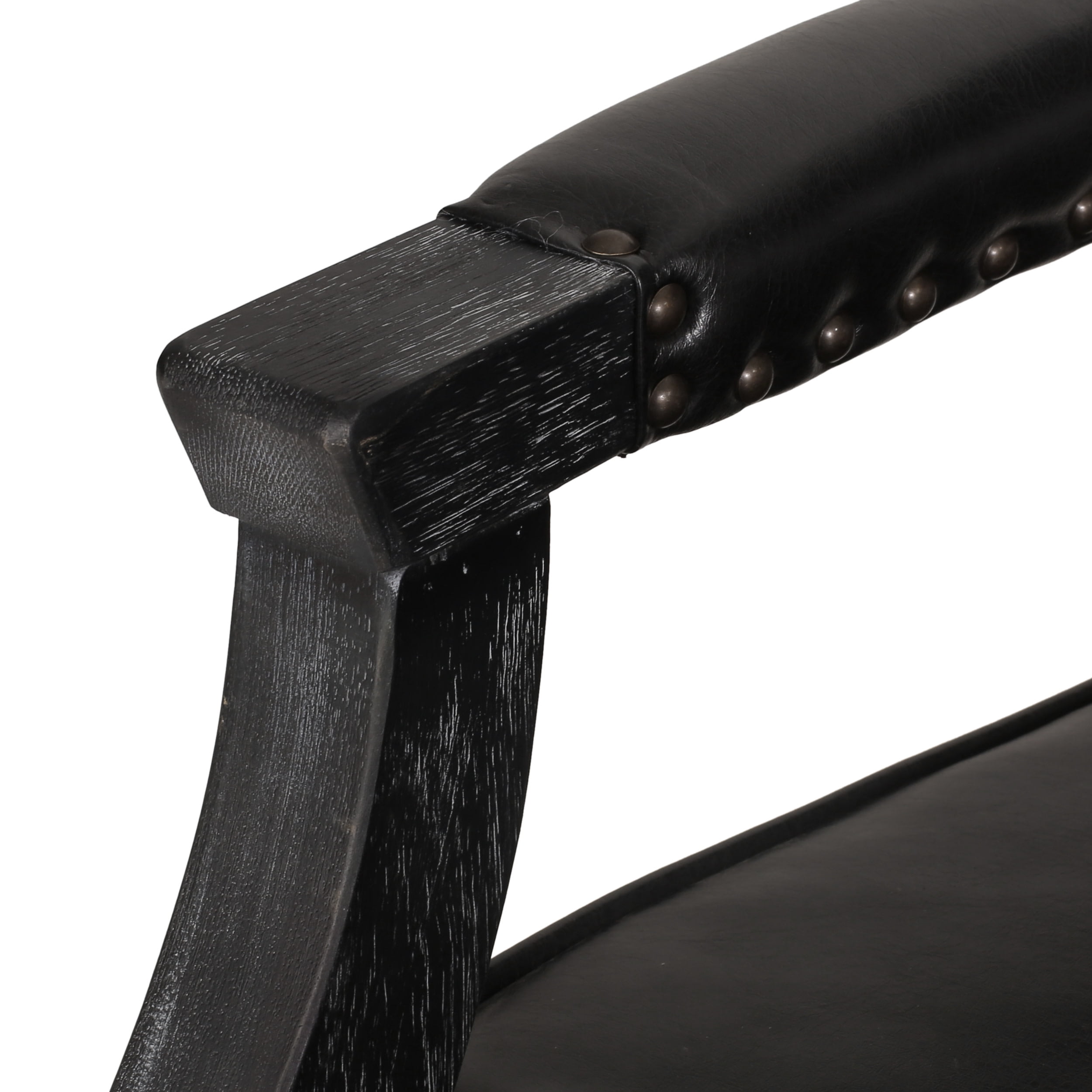 Noble House Ardson Faux Leather and Wood Dining Arm Chair with Nailhead Trim, Midnight Black and Gray