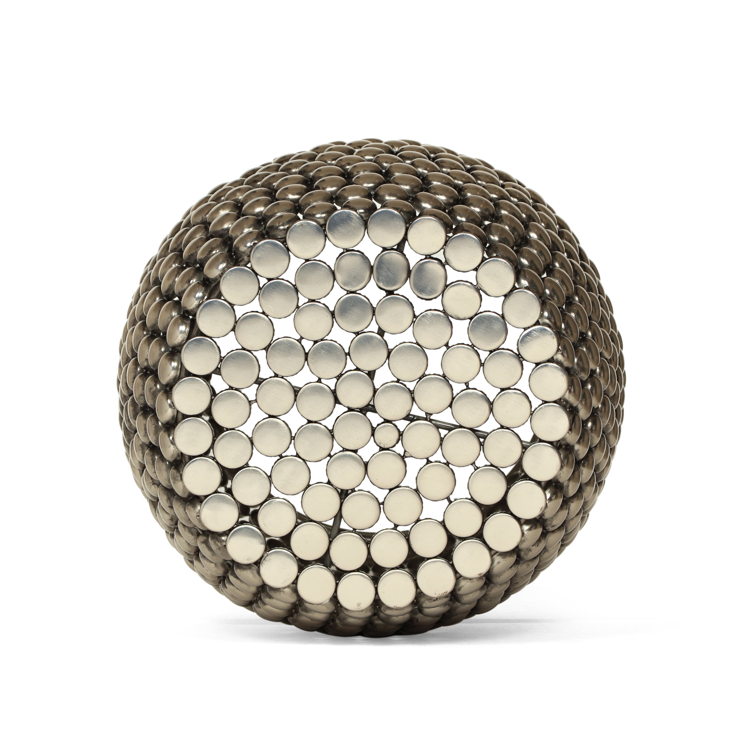 Give your decor a playful companion that is designed to complement and enhance your interior space with texture and design. Our handcrafted accent table brings a charming modern touch to your home with its convex drum frame and unique studded surface. Constructed of sturdy iron that boasts an antique nickel finish, our accent table offers incredible style and functionality to any room. This table seamlessly blends together practicality and aesthetics to create an accessory that will last you for years to come. MODERN: Our accent table offers a simplistic structure and metallic colors for a modern touch to any home. Featuring a convex drum shape with a brilliantly studded textured finish, this accent table set will instantly give your decor a chic atmosphere. HANDCRAFTED DESIGN: This accessory is expertly designed and handcrafted with artisan expertise. Any natural variations are not product flaws, but rather, will ensure that your purchase is truly a one-of-a-kind product. UNIQUE DESIGN: This table features a gorgeous textured metal finish that consists of studded nailhead accents, creating a unique accessory for your home. This pattern complements the convex silhouette of the table with its continuous curve motif. IRON FRAME: Constructed of iron, the table is made to be incredibly durable, ensuring that this piece will hold up under use. Refined with an eye-catching studded design, this accent table offers both texture and style, making it an understated yet chic addition to your home. DIMENSIONS: Choose an accessory that is the perfect size for you and your furniture. This accent table is 16.00” W x 16.00” D x 17.50” H. You will love how much your space can transform with the simple addition of this charming table.