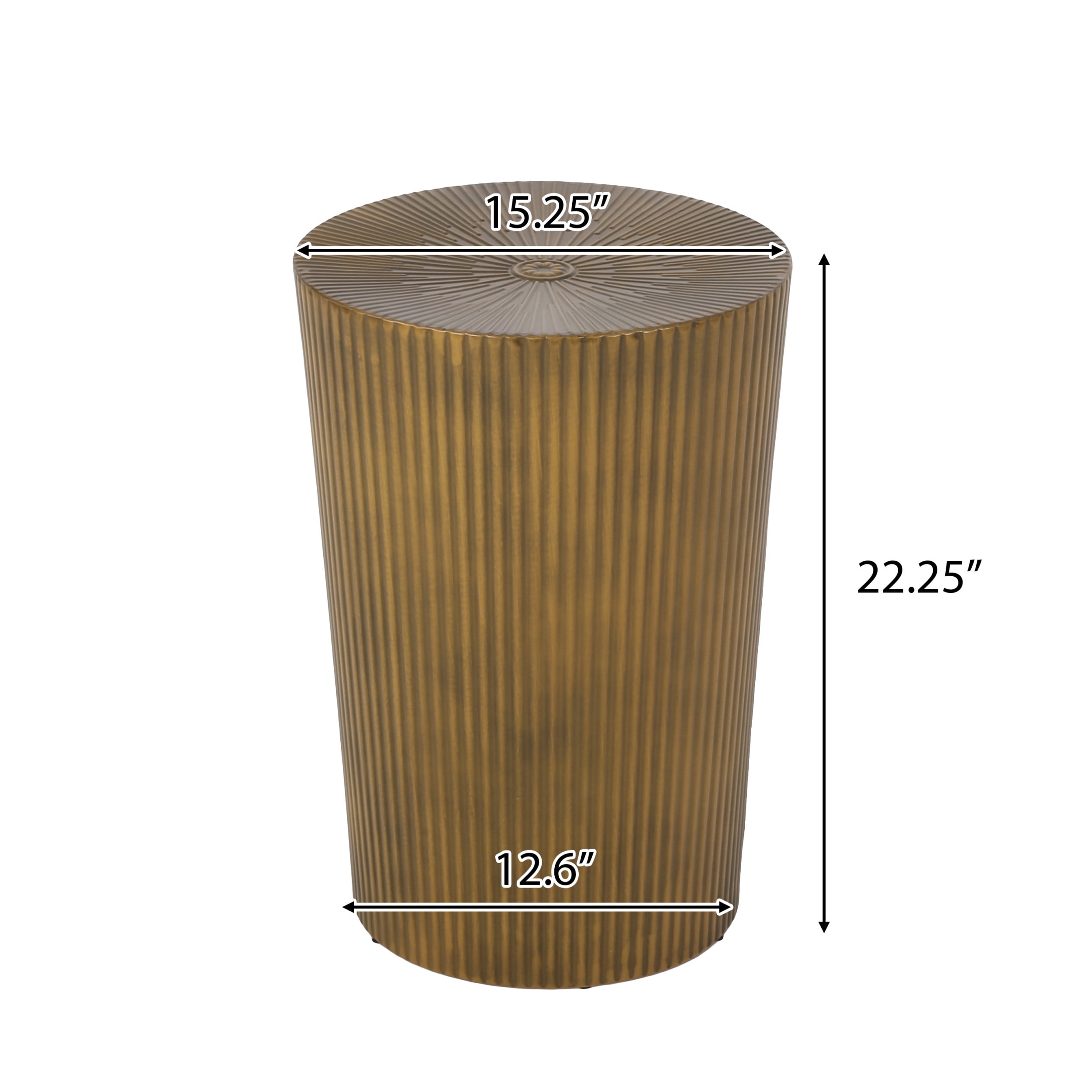 Noble House Bartram Iron Sunburst Side Table, Brushed Antique Gold: Includes: One (1) Side Table Material: Iron Multiple Color Options No Assembly Required Dimensions: 15.25 inches deep x 15.25 inches wide x 22.25 inches high Weight Capacity: 45 lbs