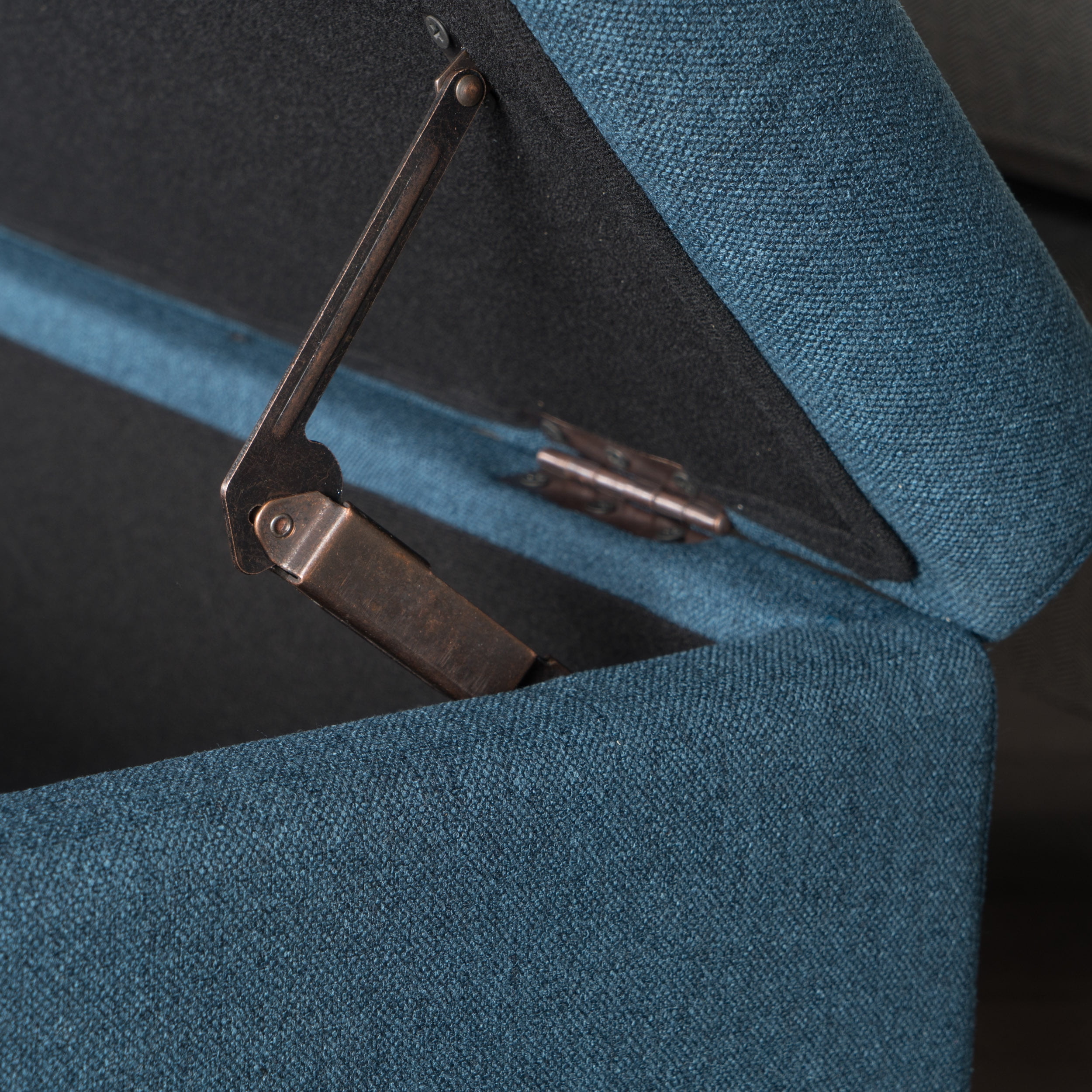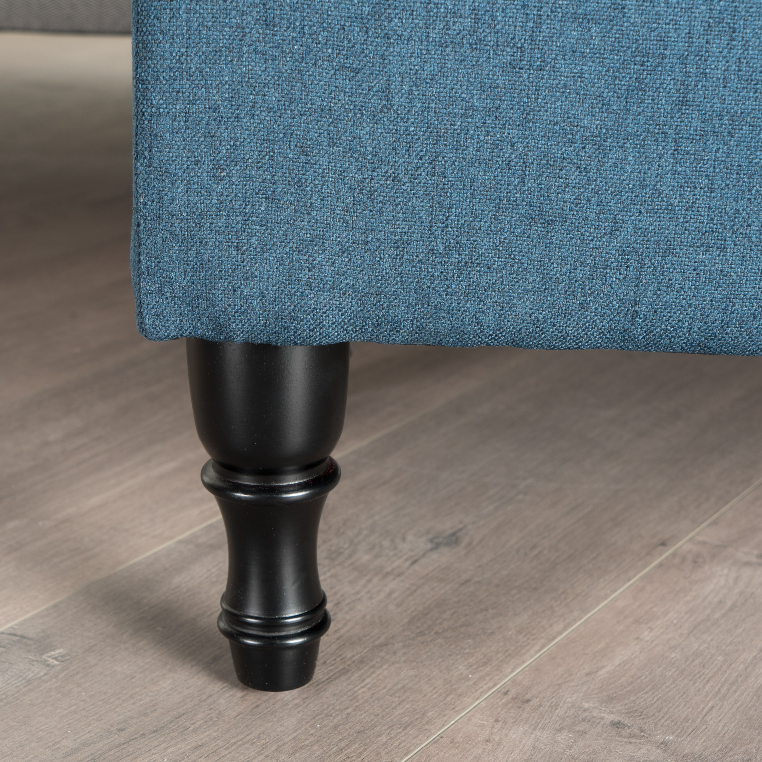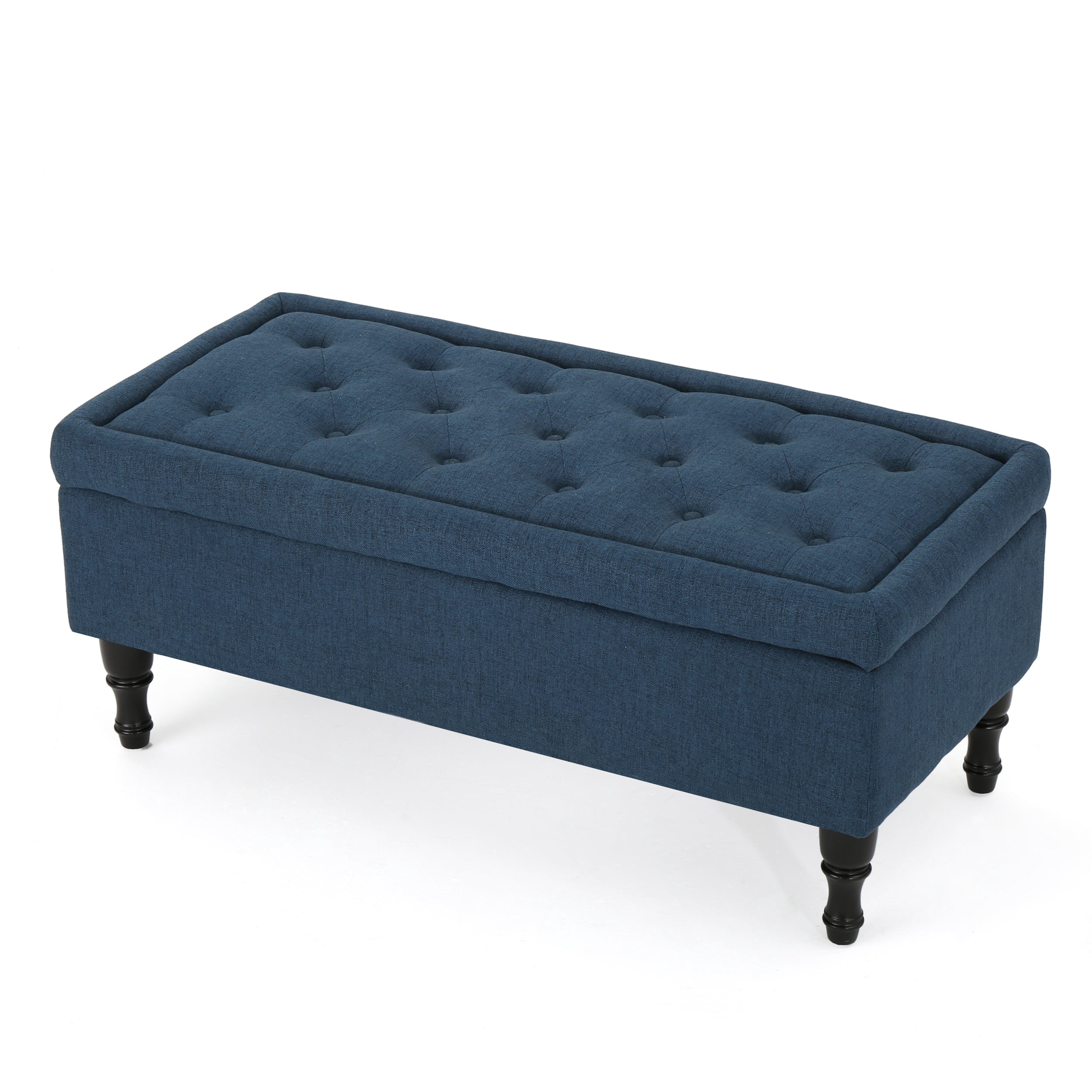 Includes: One (1) Storage Ottoman Material: Fabric Fabric Composition: 100% Polyester Leg Material: Birch Color: Navy Blue Leg Finish: Dark Brown Light Assembly Required Hand Crafted Details Dimensions: 19.25 inches deep x 40.75 inches wide x 17.25 inches high Noble House