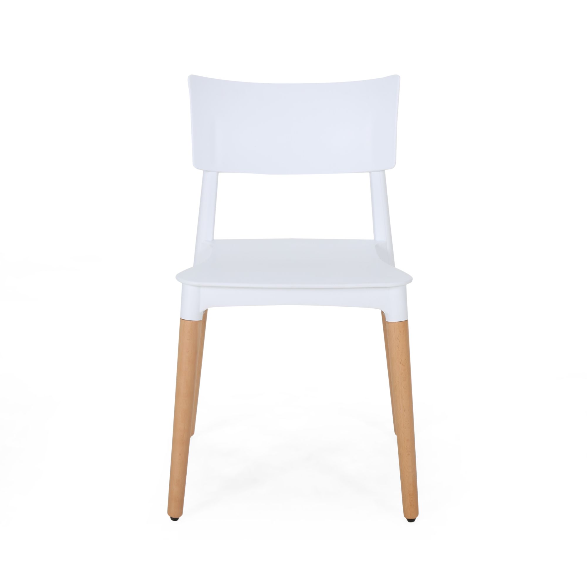Noble House Beeman Contemporary Plastic Dining Chairs, Set of 2, White: Includes: Two (2) Dining Chairs Seat Material: Polypropylene Frame Material: Beech Wood Multiple Color Options Frame Finish: Natural Some Assembly Required Dimensions: 18.75 inches deep x 19.25 inches wide x 31.30 inches high Seat Dimensions: 17.50 inches deep x 17.50 inches wide x 18.00 inches high