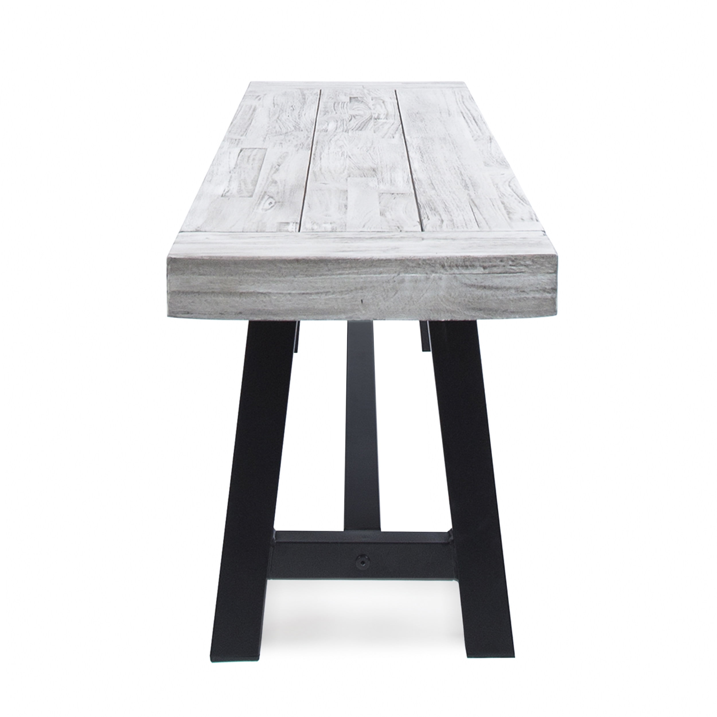 Includes: One (1) Bench Material: Acacia Wood Leg Material: Iron Finish: Light Grey Sandblast Leg Finish: Rustic Black Assembly Required Hand Crafted Details Dimensions: 14.75 inches deep x 63.00 inches wide x 17.50 inches high