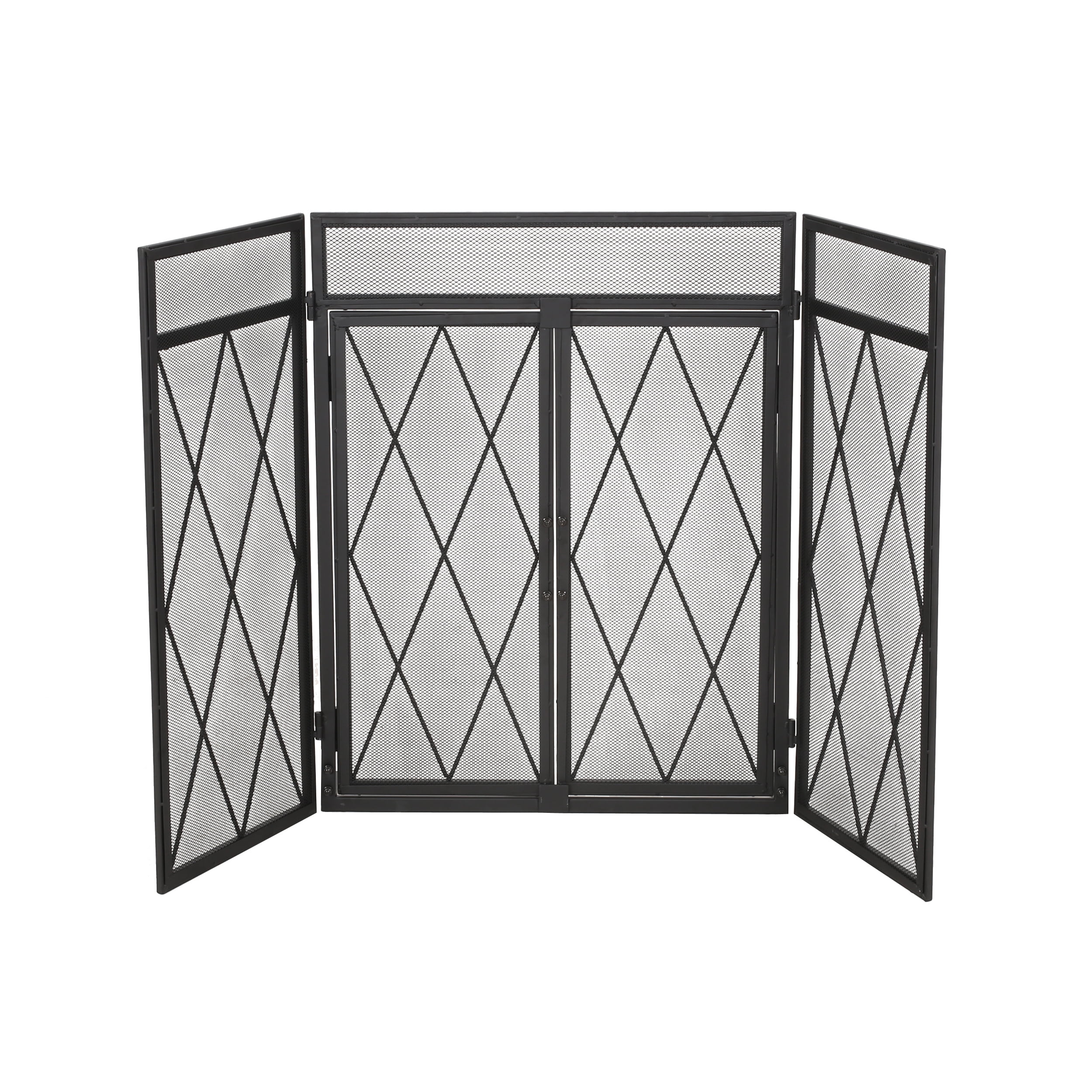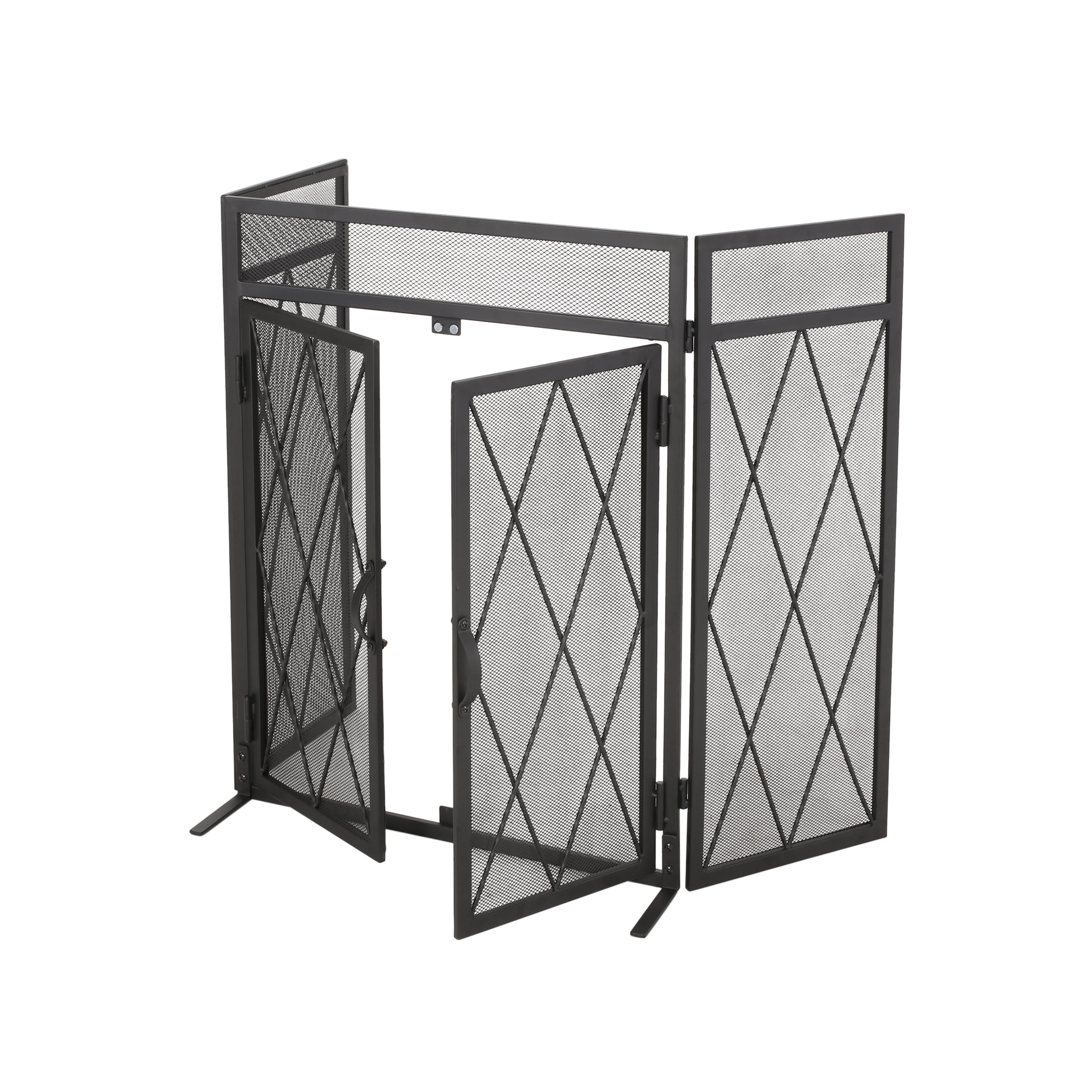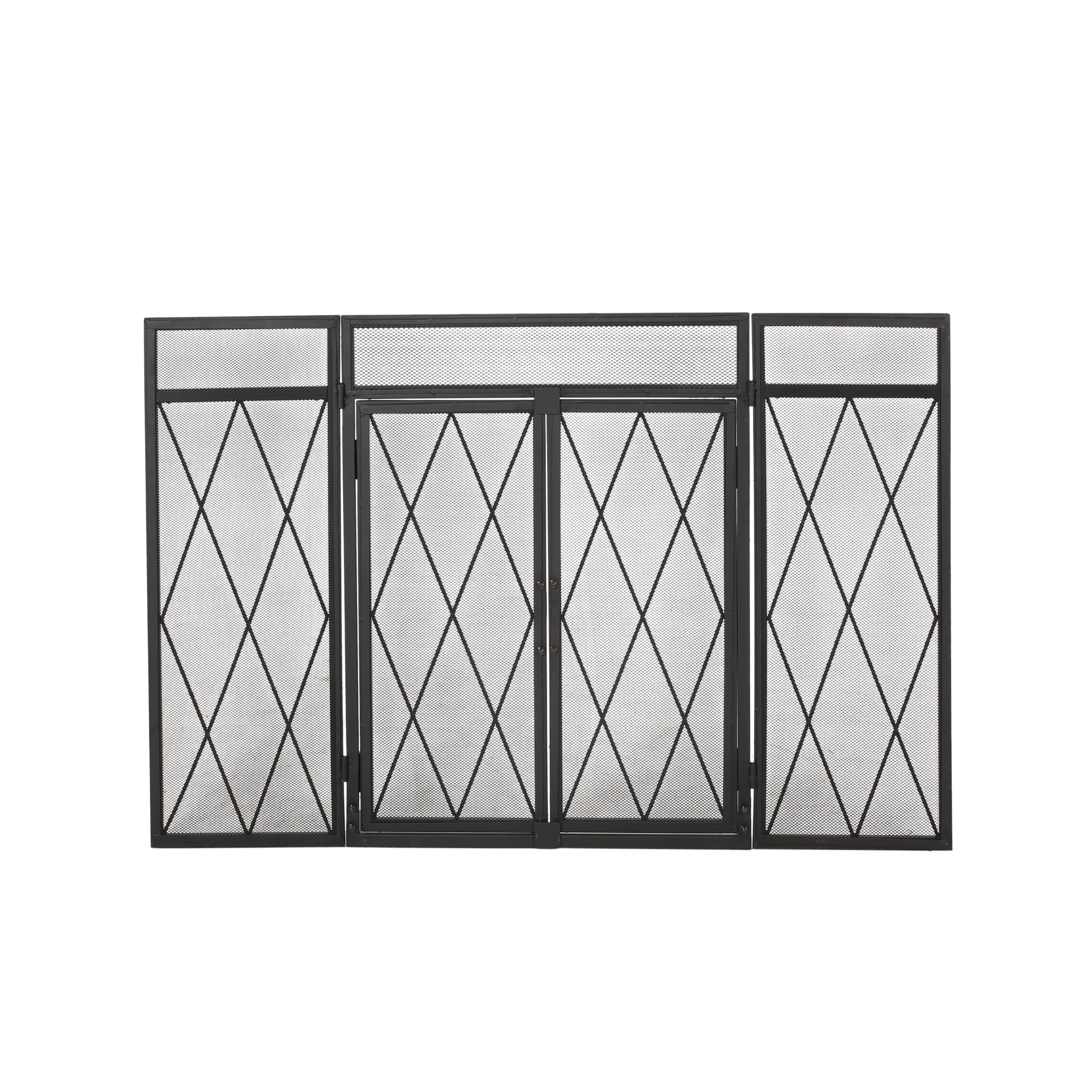 Noble House Biscay Metal Fireplace Screen with Door, Matte Black