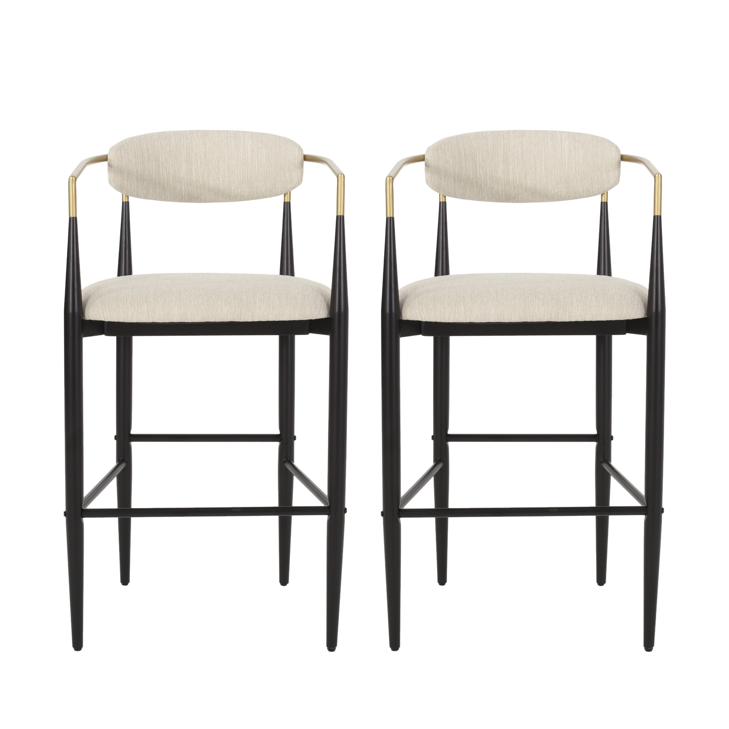 Noble House Boise Fabric and Metal 30 Inch Barstools, Set of 2, Beige, Black, and Gold