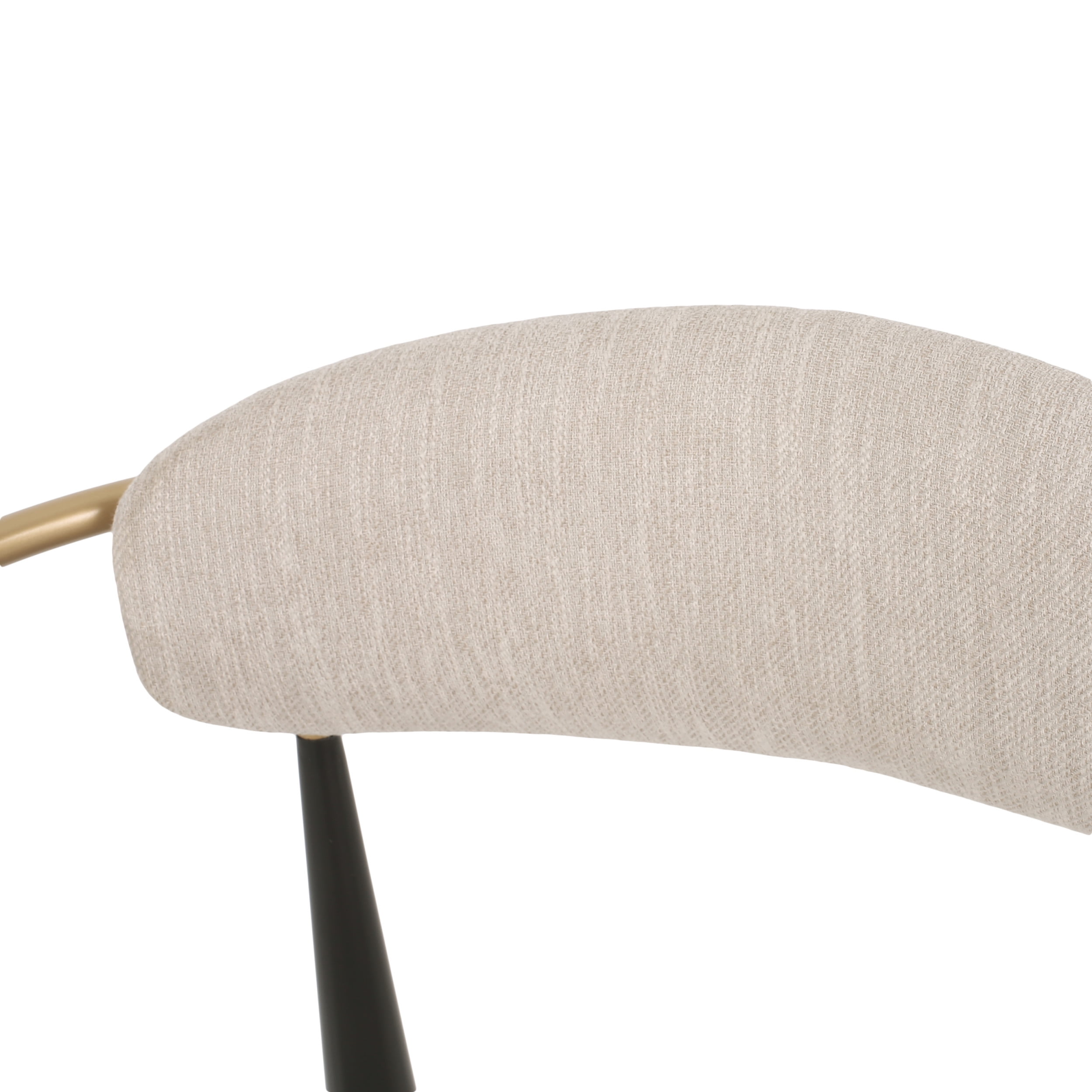 Noble House Boise Fabric Upholstered Metal Dining Chairs, Set of 2, Beige, Black, and Gold