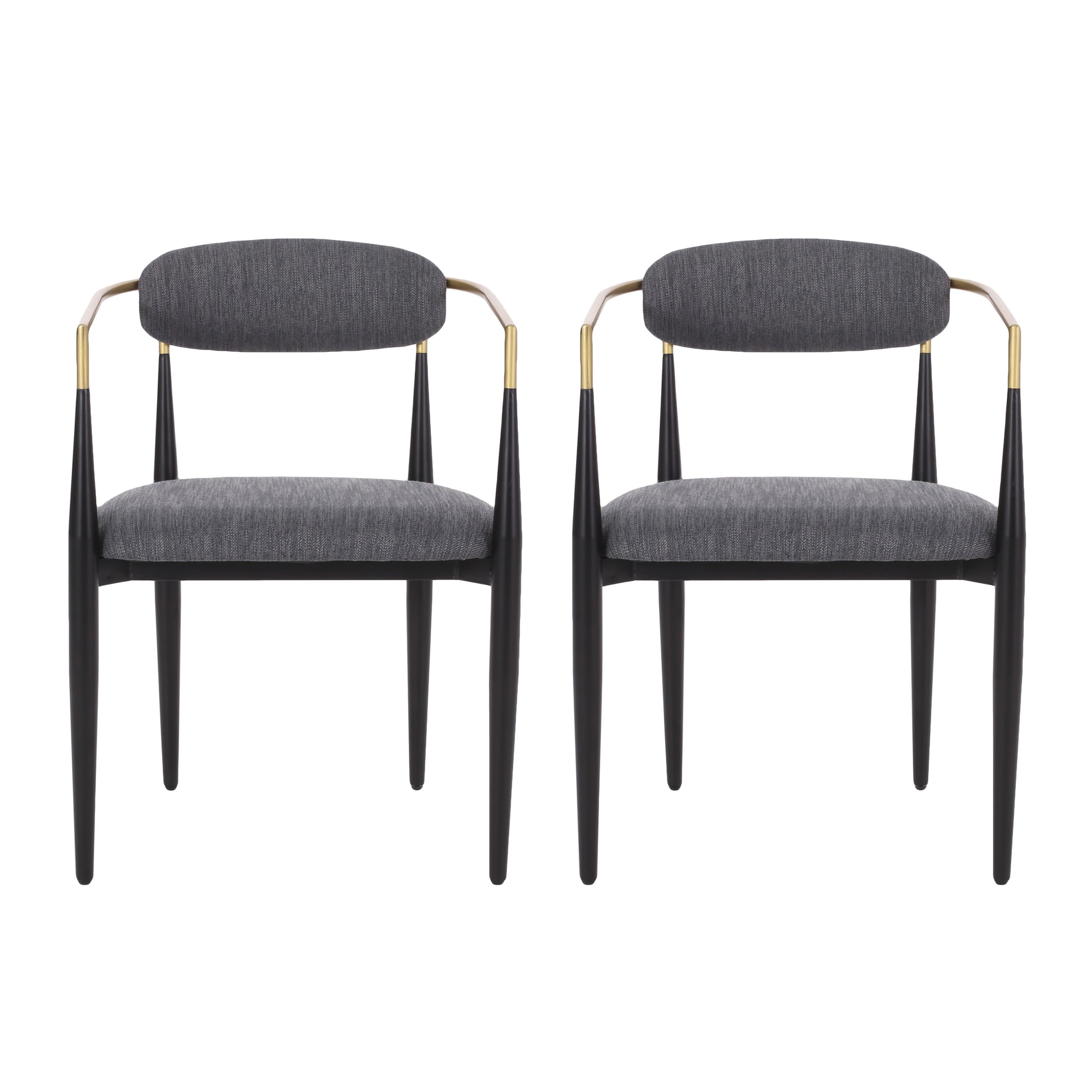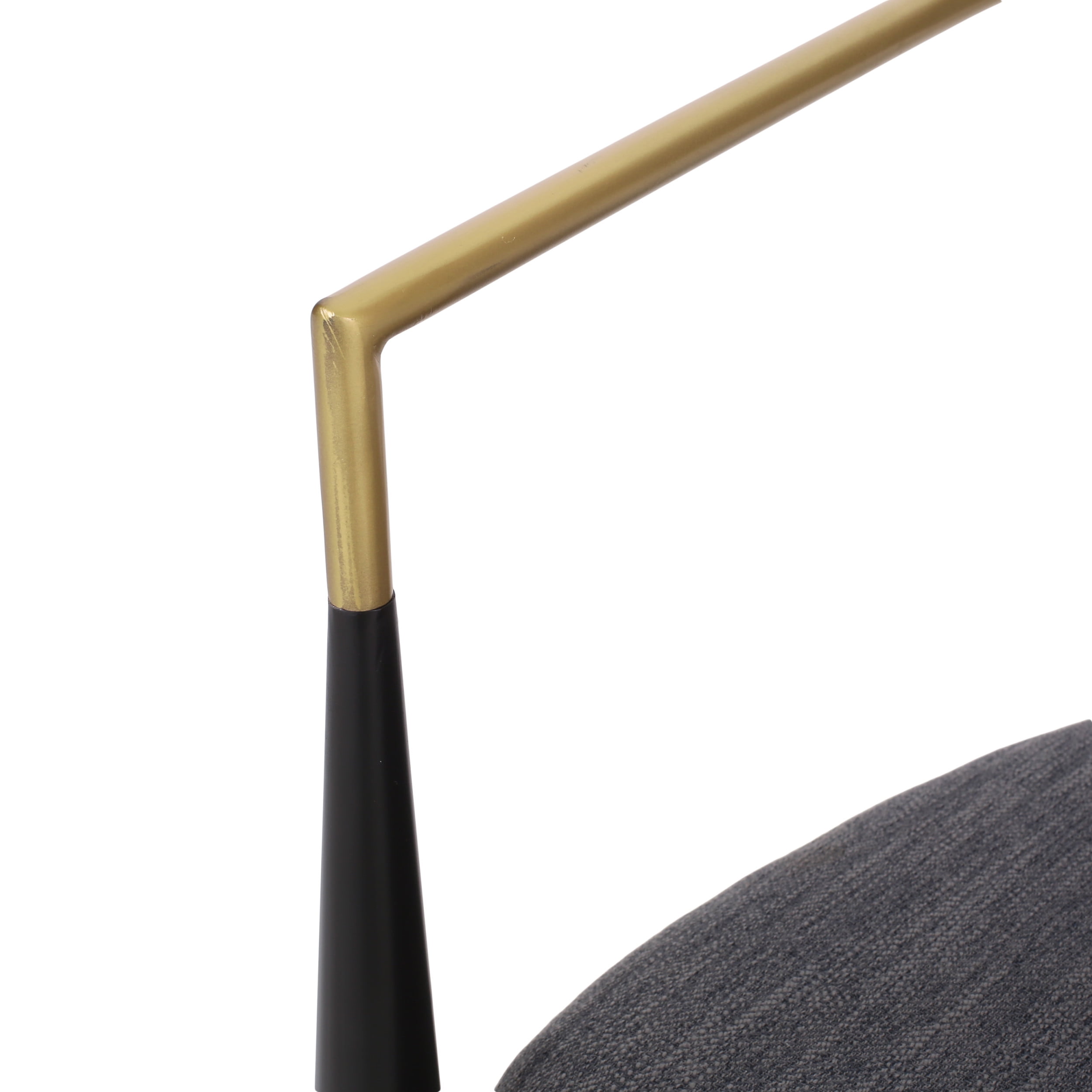 Noble House Boise Fabric Upholstered Metal Dining Chairs, Set of 2, Charcoal, Black, and Gold