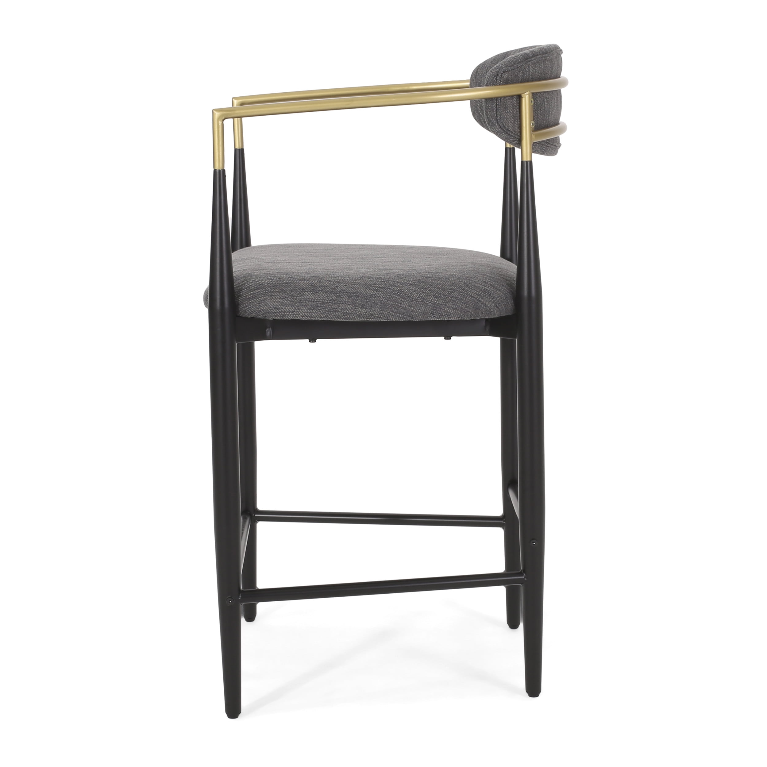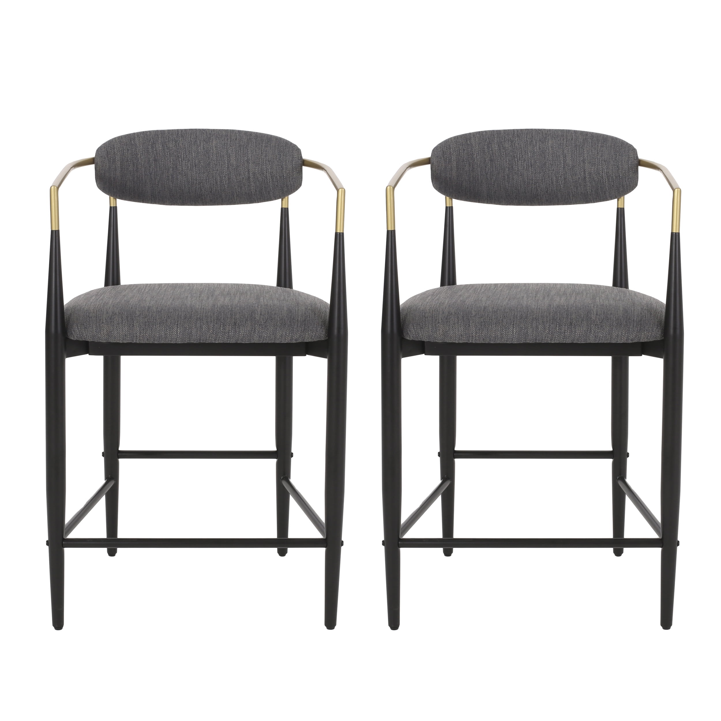 Noble House Boise Indoor Fabric and Metal 25 inch Counter Stools, Set of 2, Charcoal, Black, and Gold