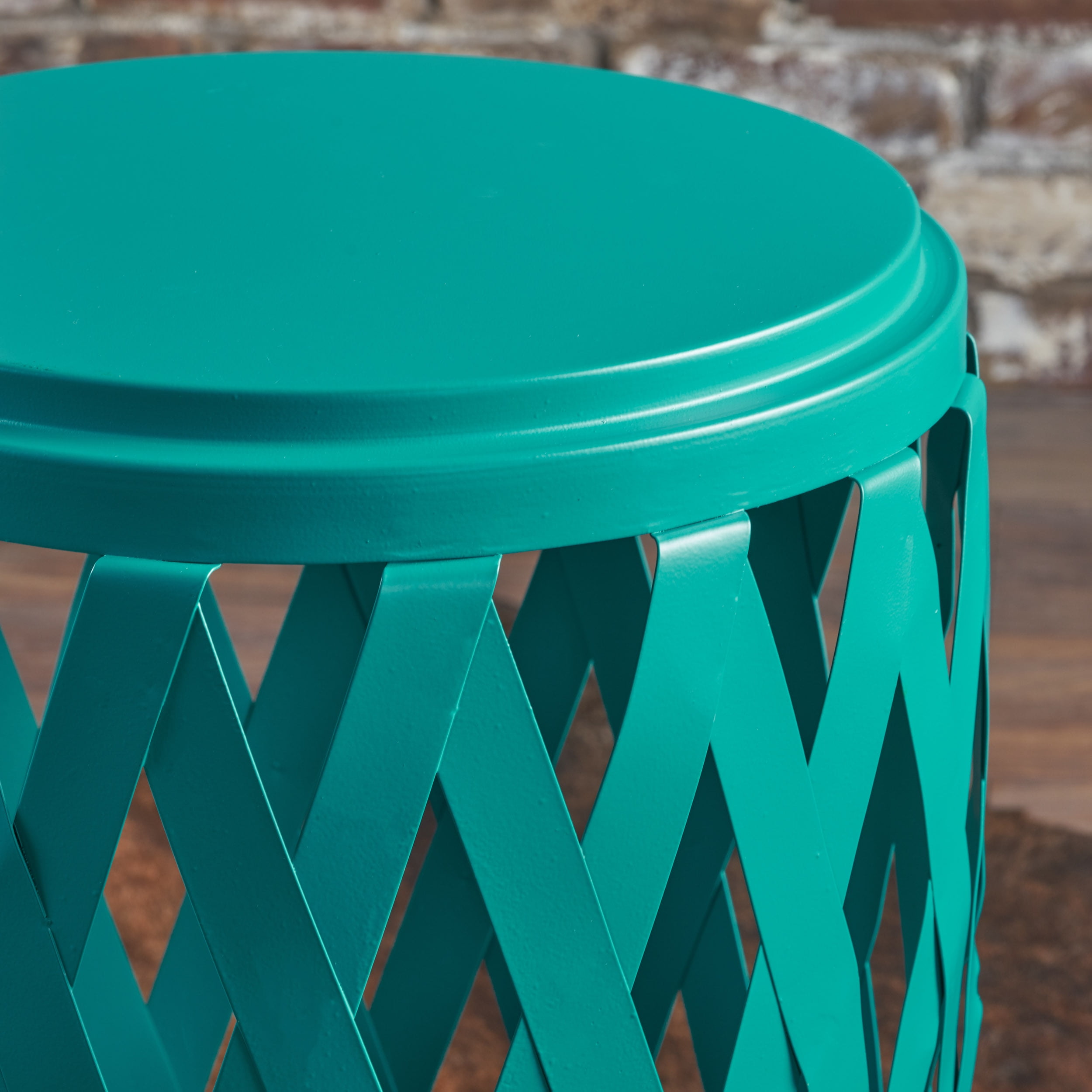 Includes: One (1) Table Hand Crafted Details Dimensions: 15.00 inches deep x 15.00 inches wide x 22.75 inches high Finish: Matte Teal No Assembly Required Material: Iron