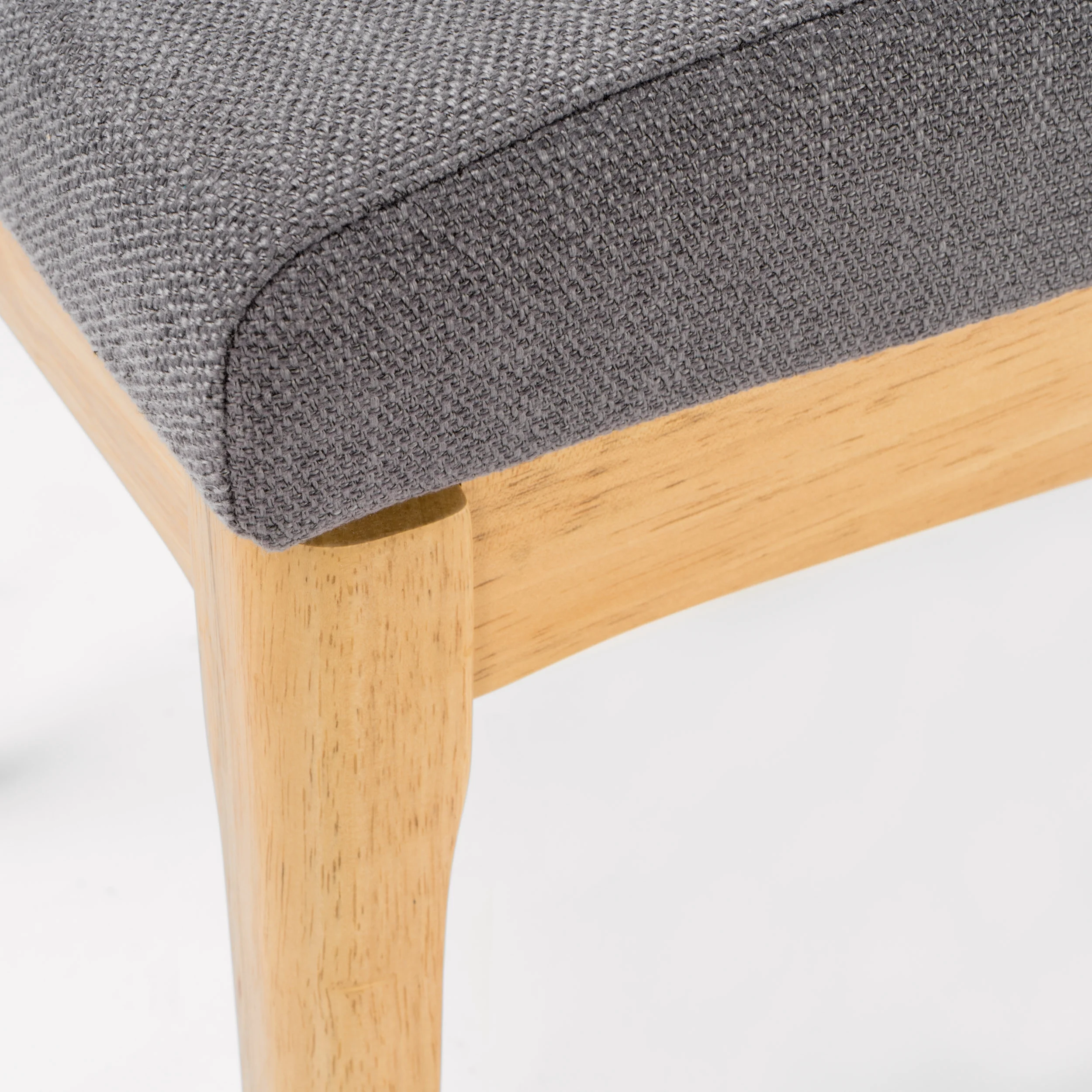 Includes: Two (2) Dining Chairs Materials: Fabric, Rubberwood Dimensions: 23.03 inches deep x 17.52 inches wide x 32.09 inches high Seat Dimensions: 17.00 inches deep x 17.50 inches wide x 19.25 inches high Color: Dark Grey Leg Finish: Natual Oak Assembly Required