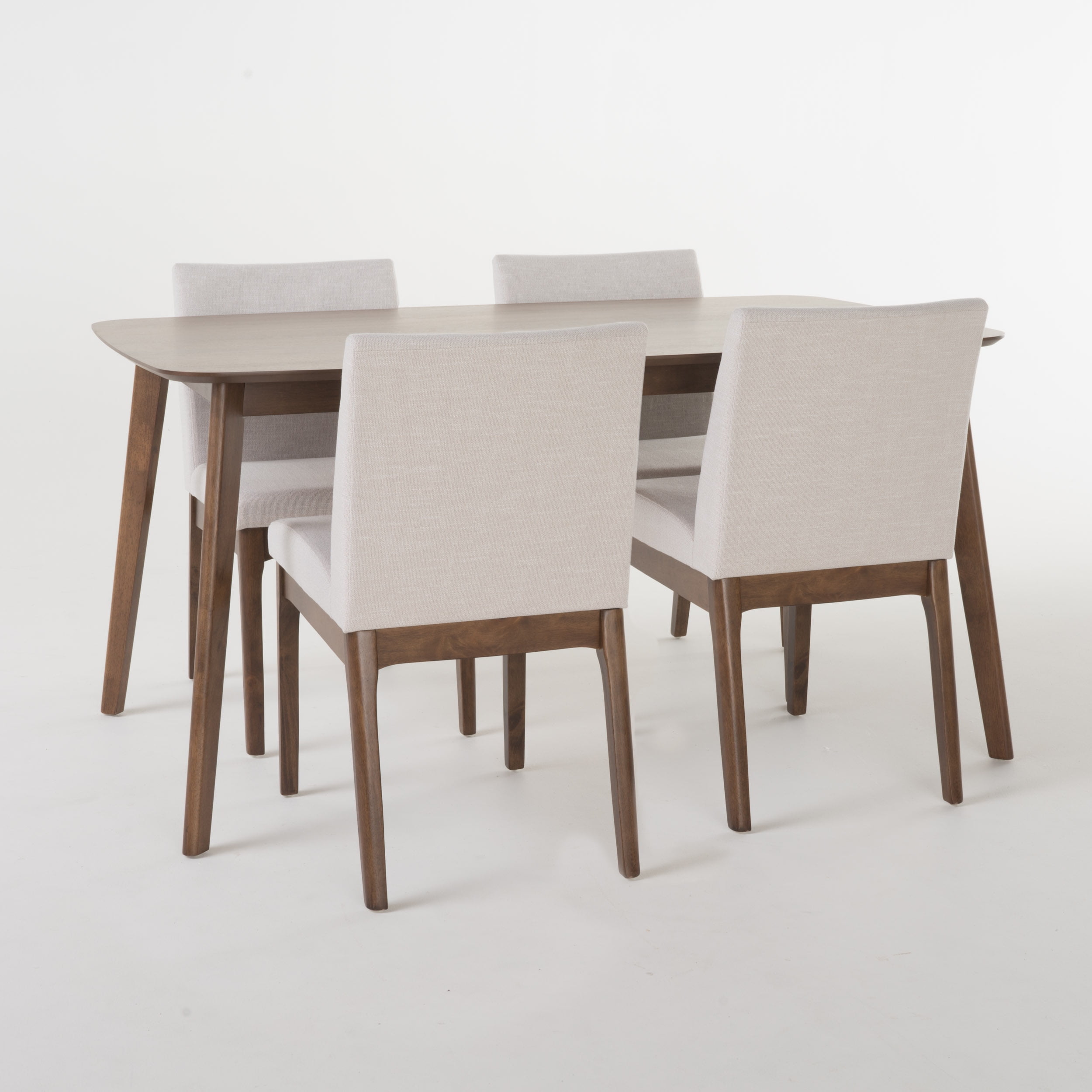 Noble House Caruso Mid-Century Modern 5 Piece Dining Set, Light Beige and Walnut