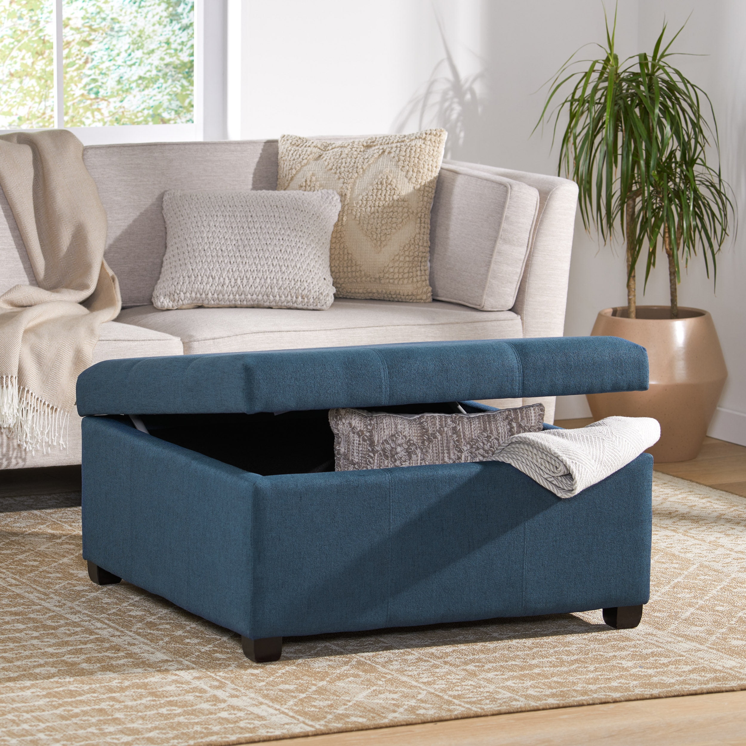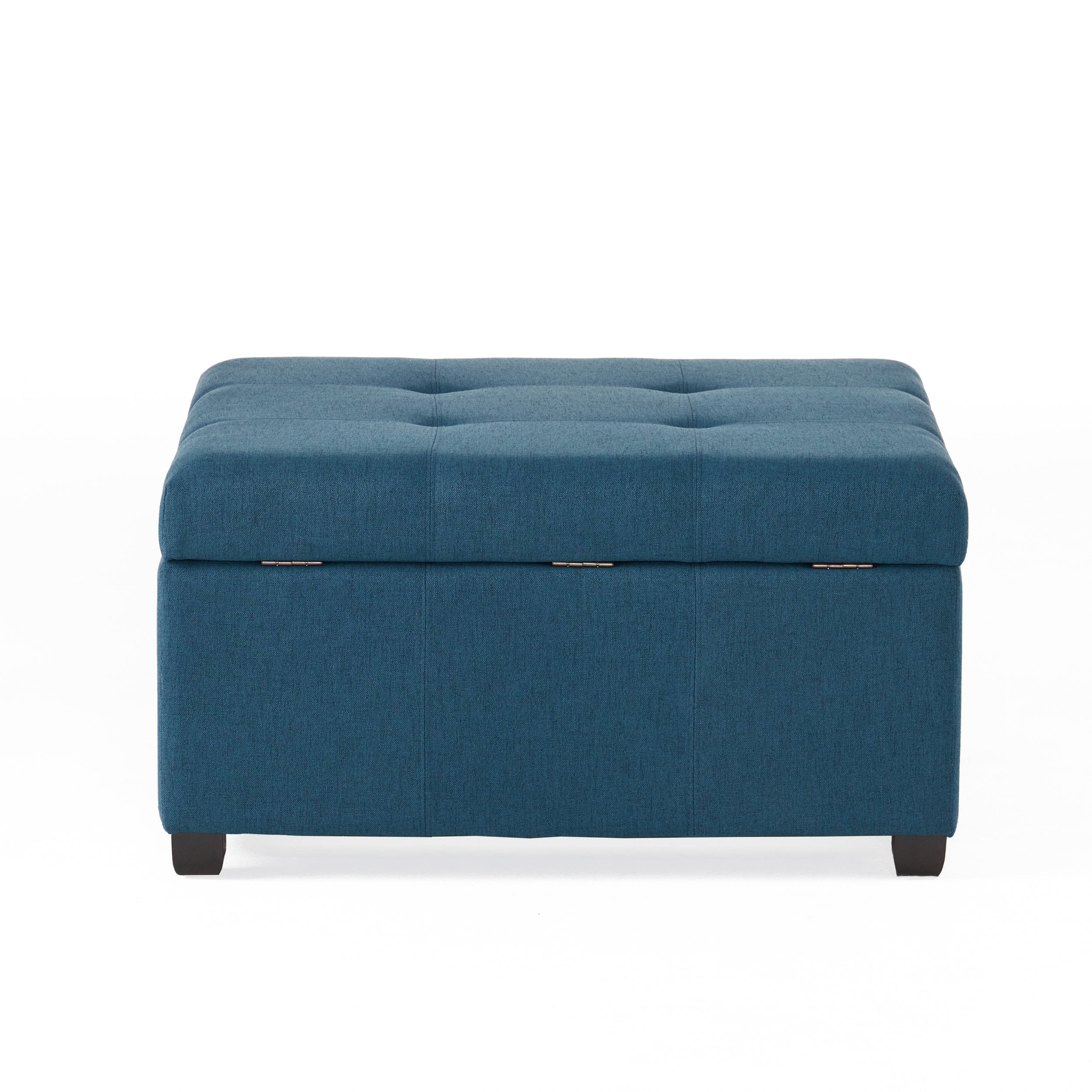 Noble House Chloe Fabric Storage Ottoman, Dark Blue
