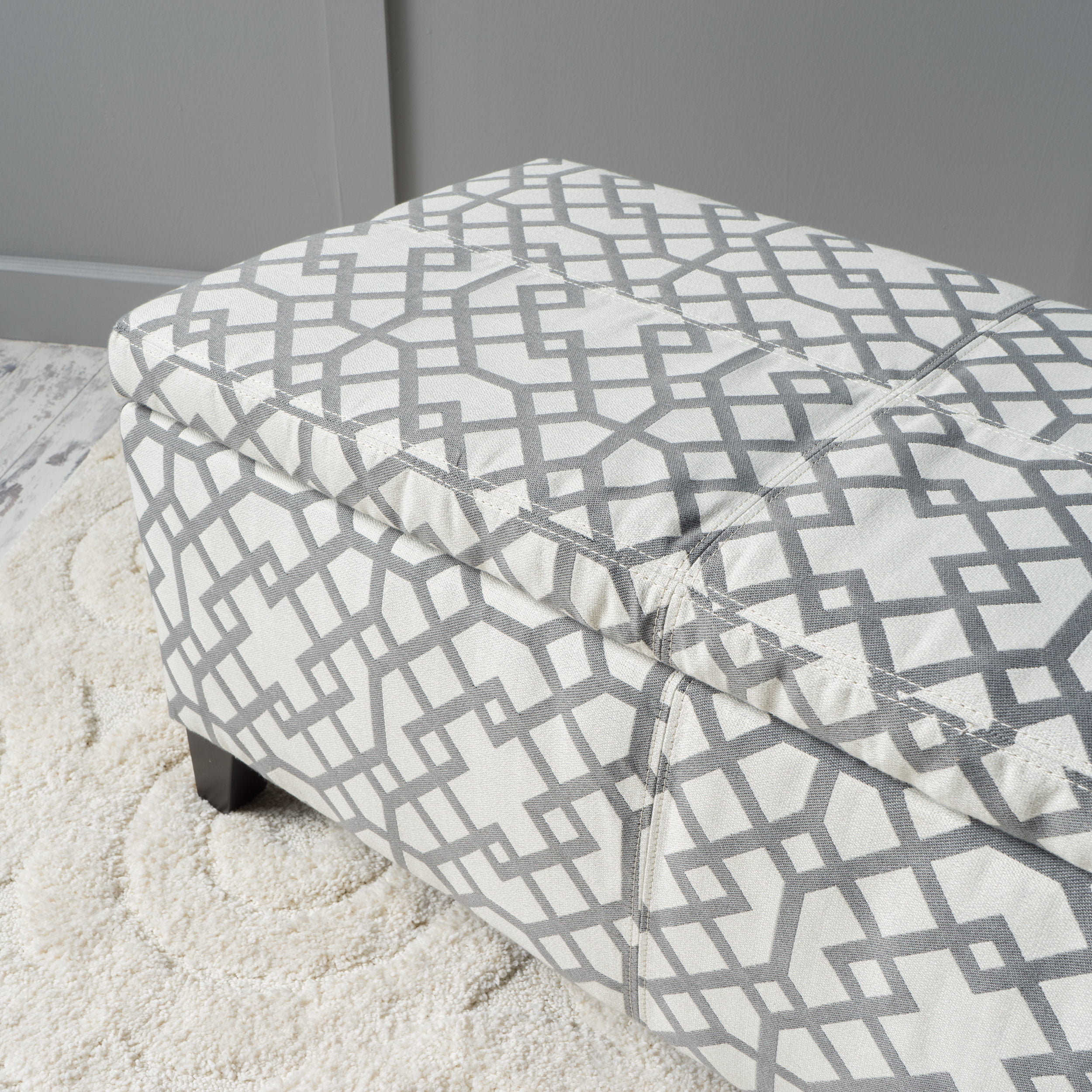 Noble House Clemens Rectangular Geometric Fabric Lift Top Storage Ottoman, Grey