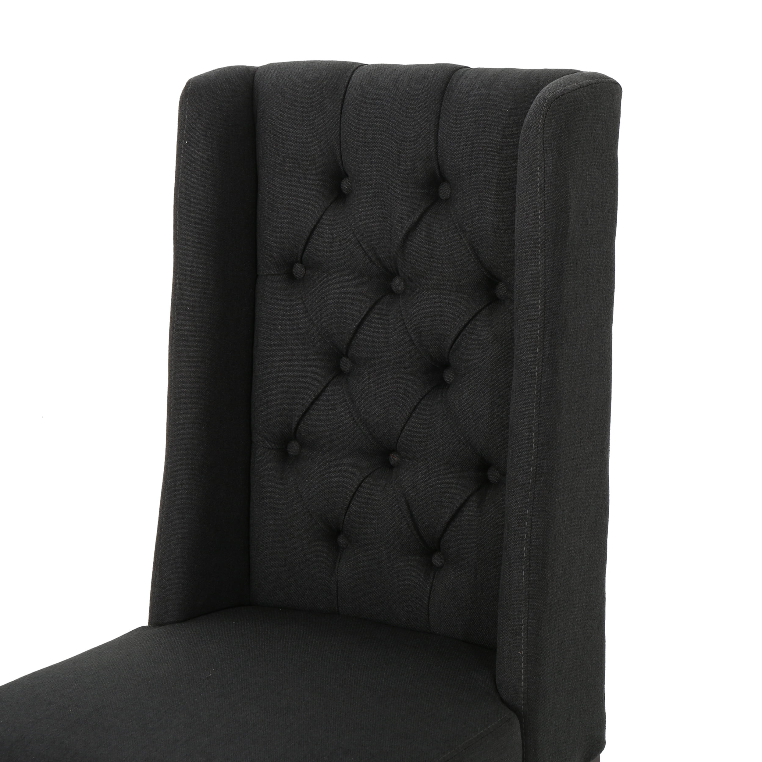 Noble House Cordella Indoor Contemporary Fabric Dining Chairs, Set of 2, Dark Charcoal