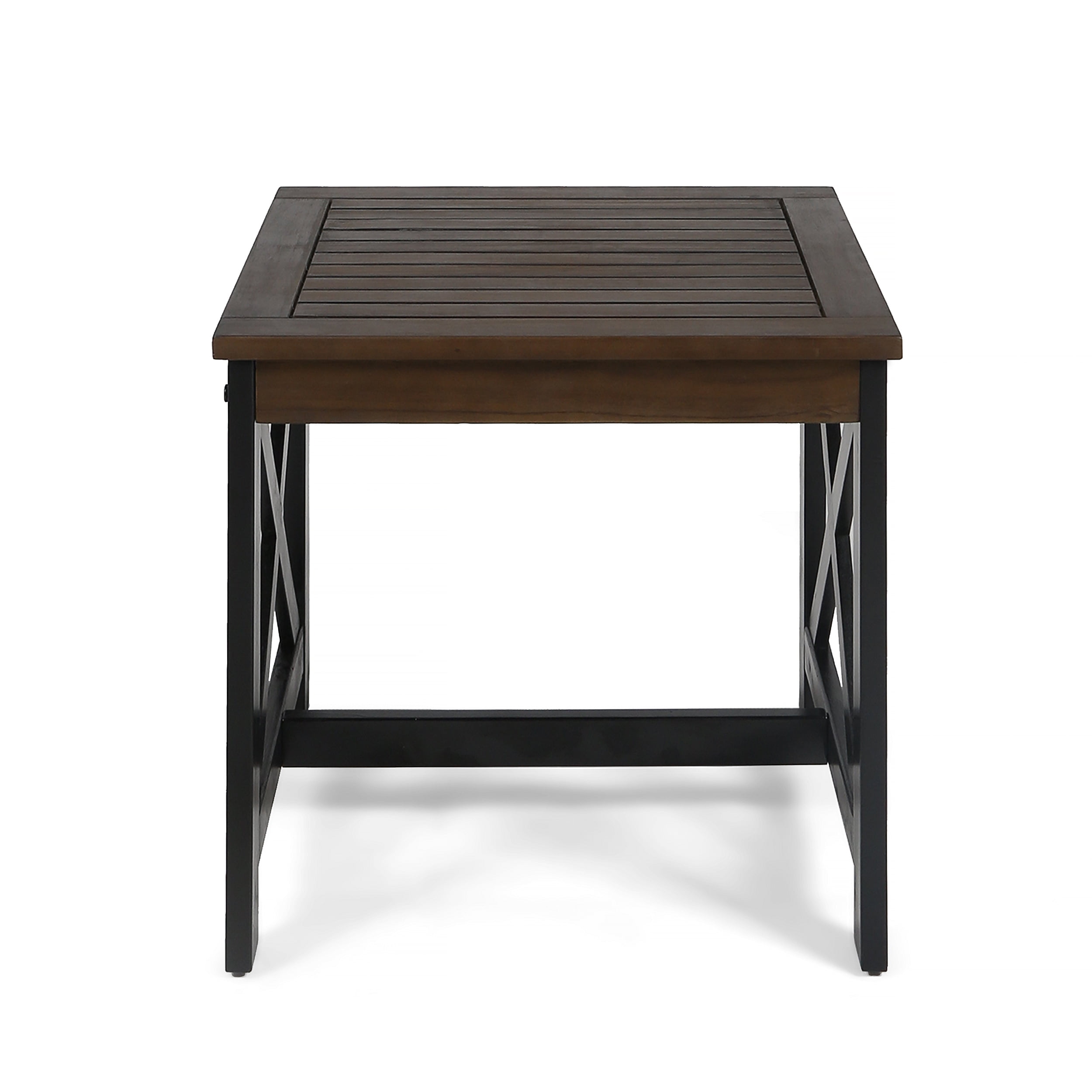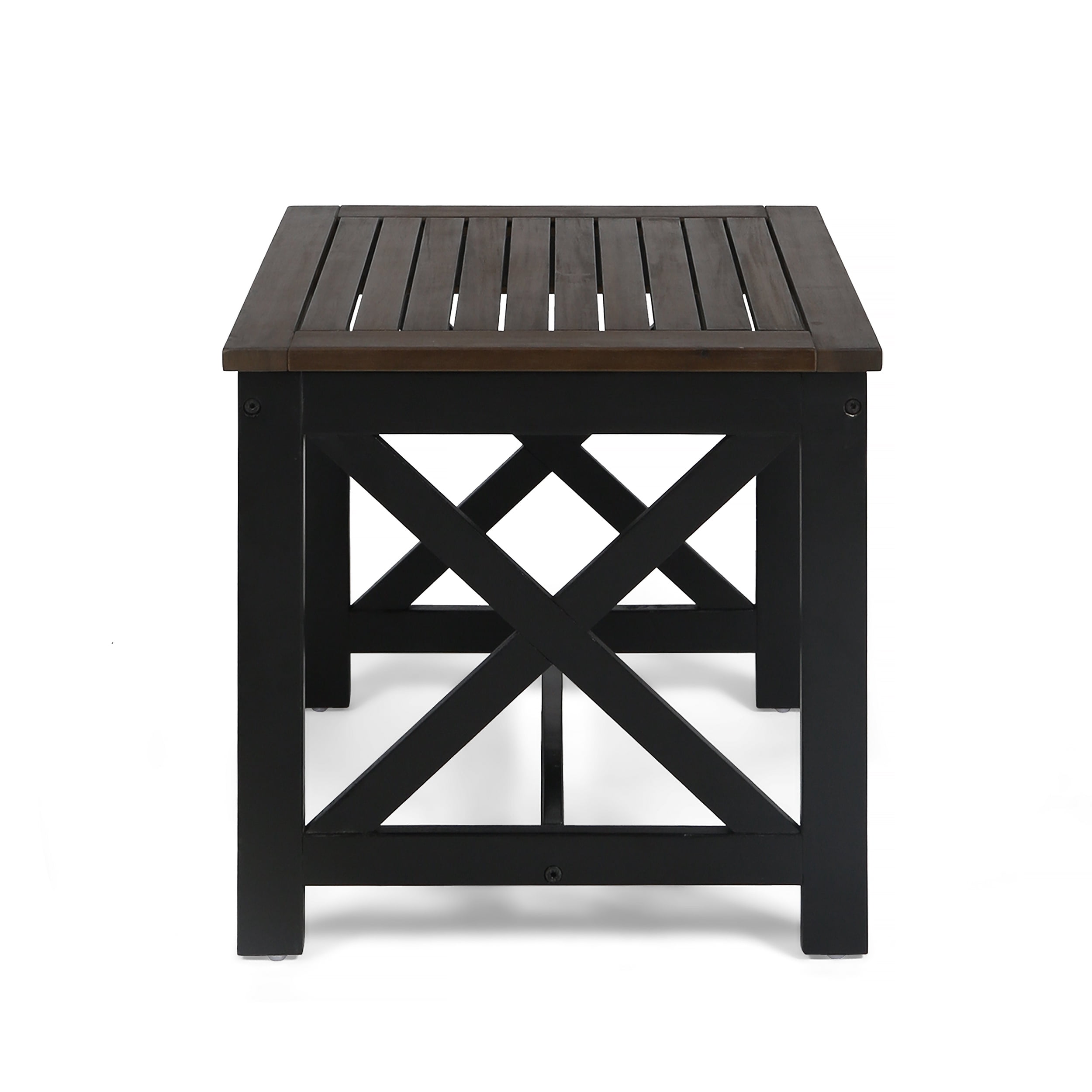 Noble House Crystal Beach Acacia Wood Outdoor End Table in Dark Brown and Black