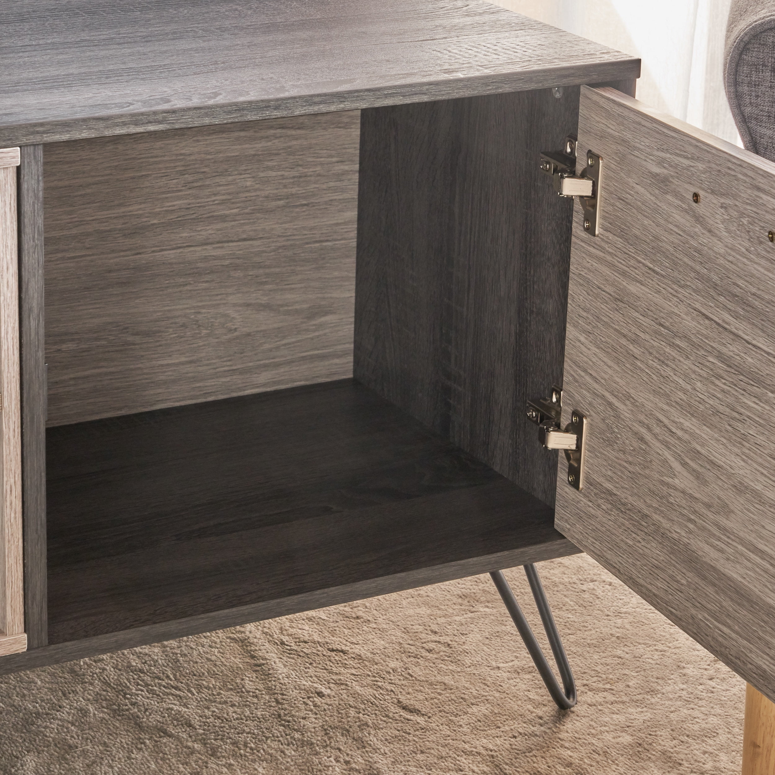 Noble House Cynthia Mid Century Modern Faux Wood TV Stand, Sonoma Grey Oak, Grey Oak, Black