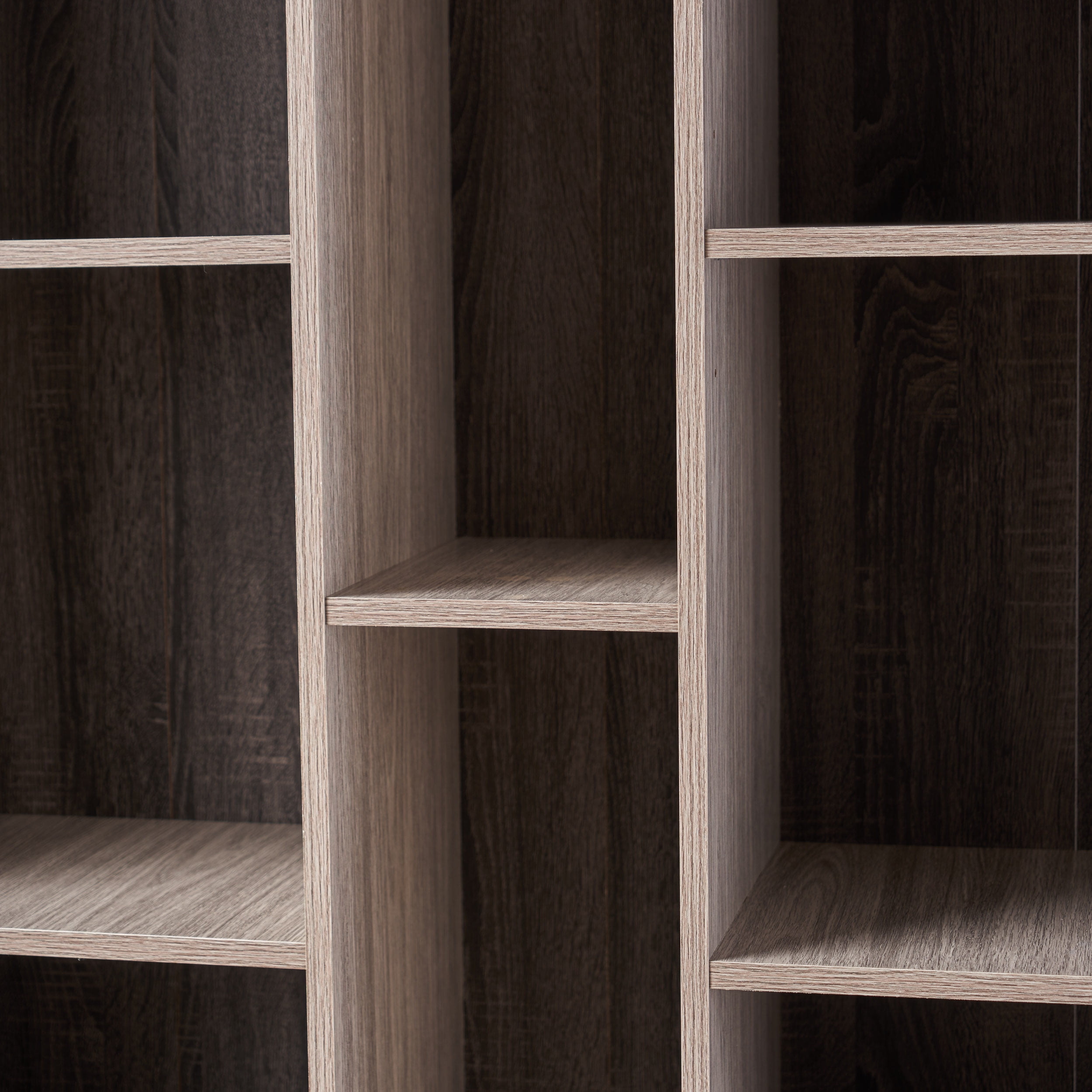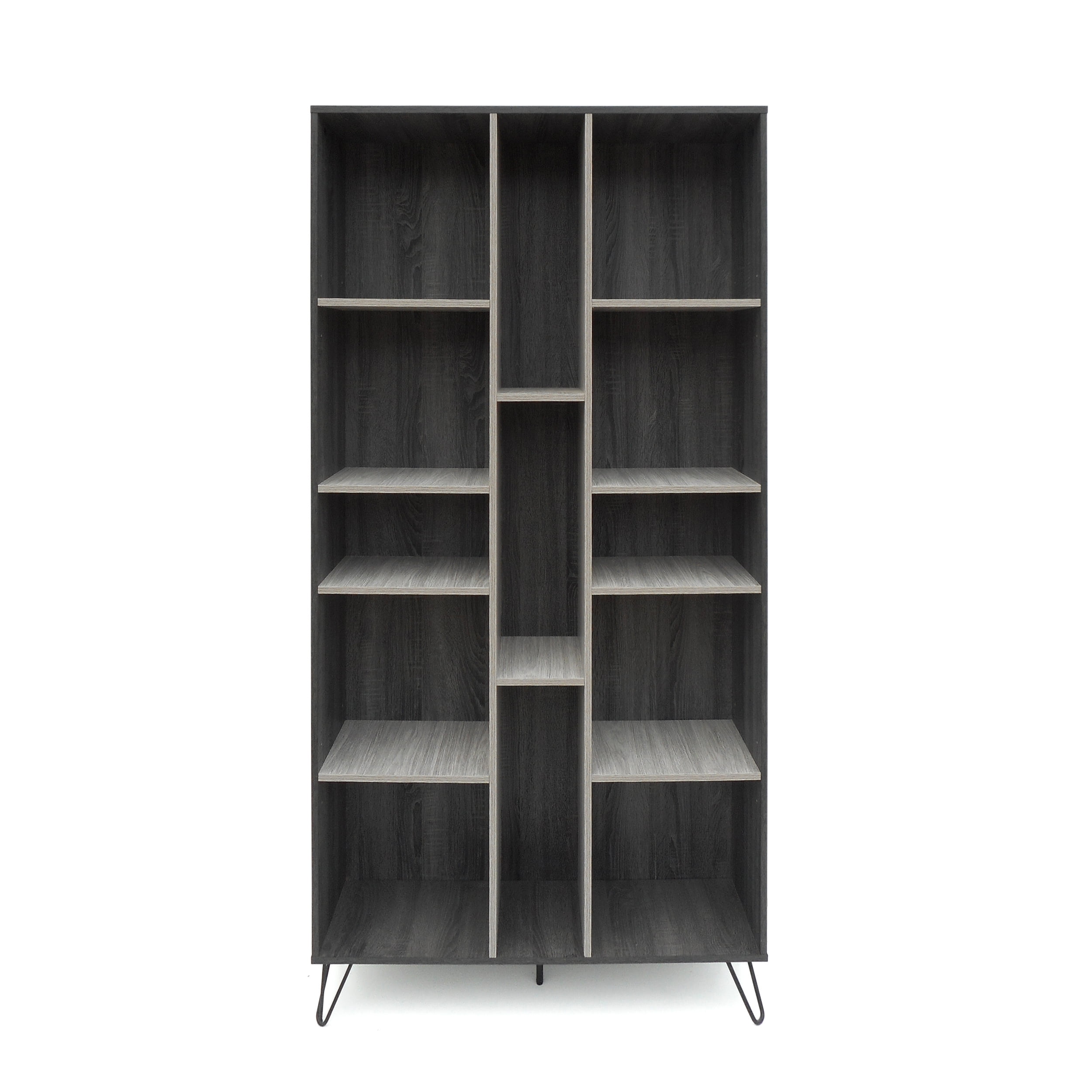Noble House Daisy Modern Two Toned Faux Wood 13 Shelf Bookcases., Sonoma Grey Oak, Grey Oak, Black