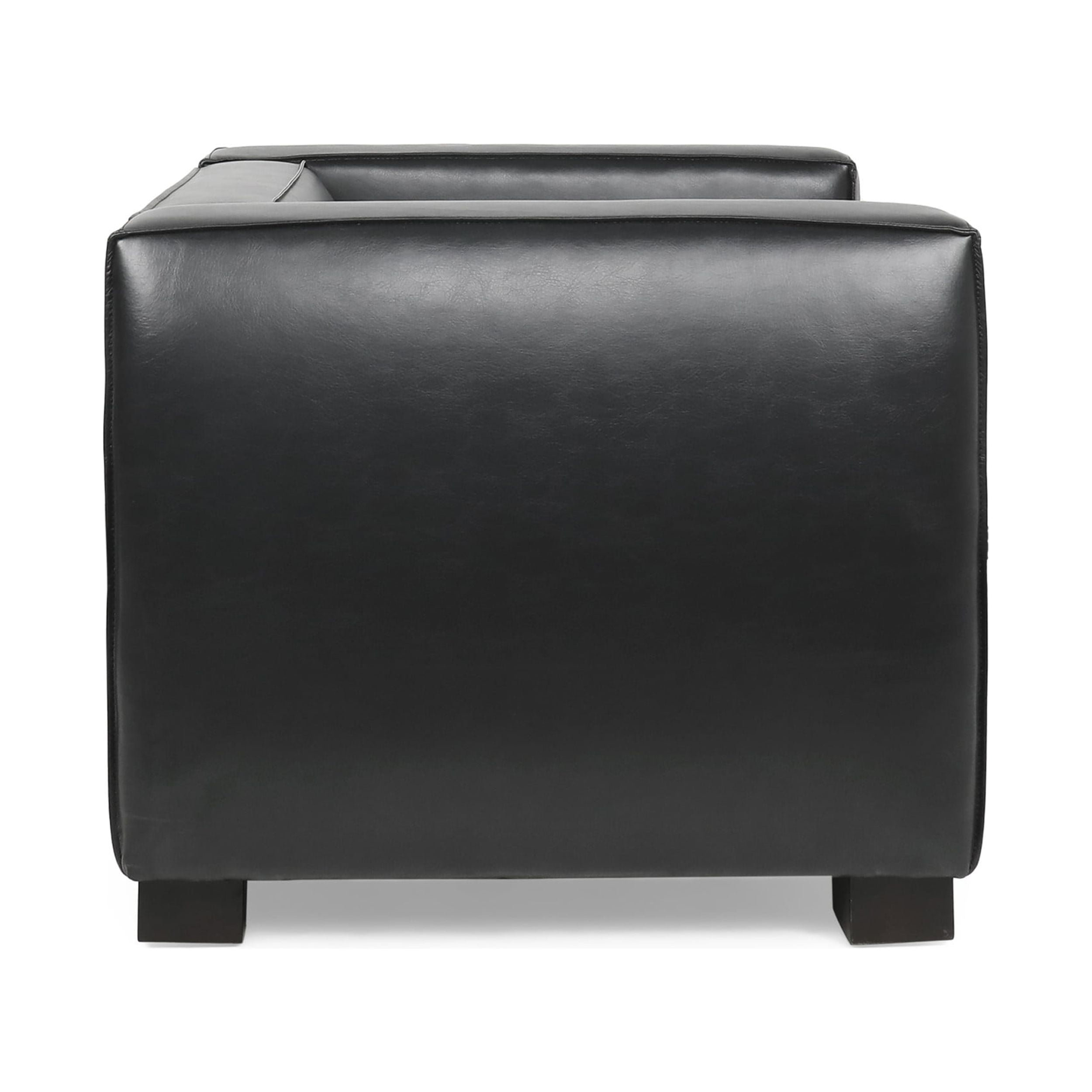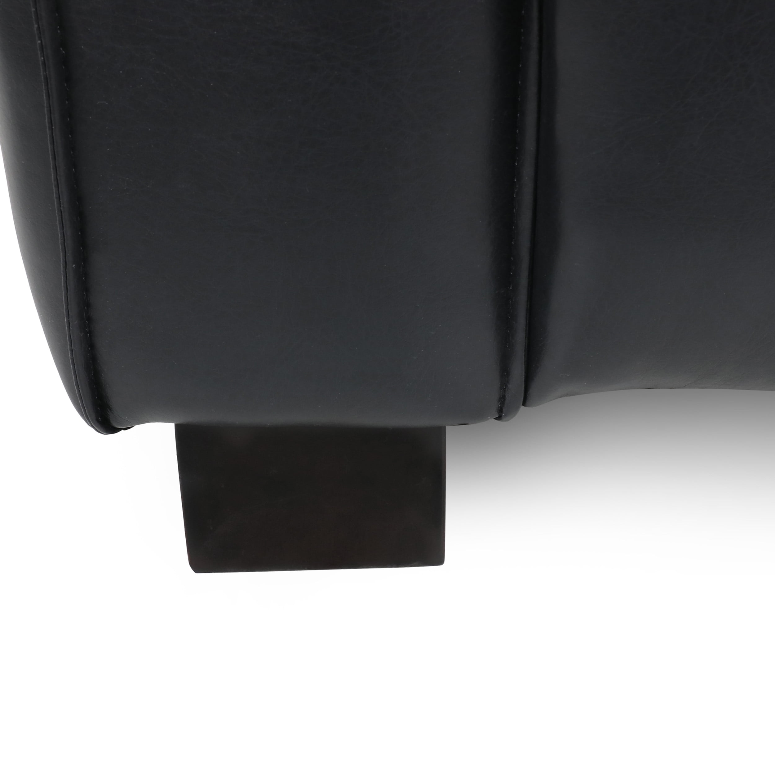 Noble House Denison Faux Leather Club Chair, Midnight Black and Dark Walnut: Includes: One (1) Club Chair Material: Faux Leather Leg Material: Birch Wood Multiple Color Options Leg Finish: Dark Walnut Assembly Required Dimensions: 31.25 inches deep x 39.00 inches wide x 26.00 inches high Seat Dimensions: 22.75 inches deep x 23.00 inches wide x 15.75 inches high Weight Capacity: 300 lbs