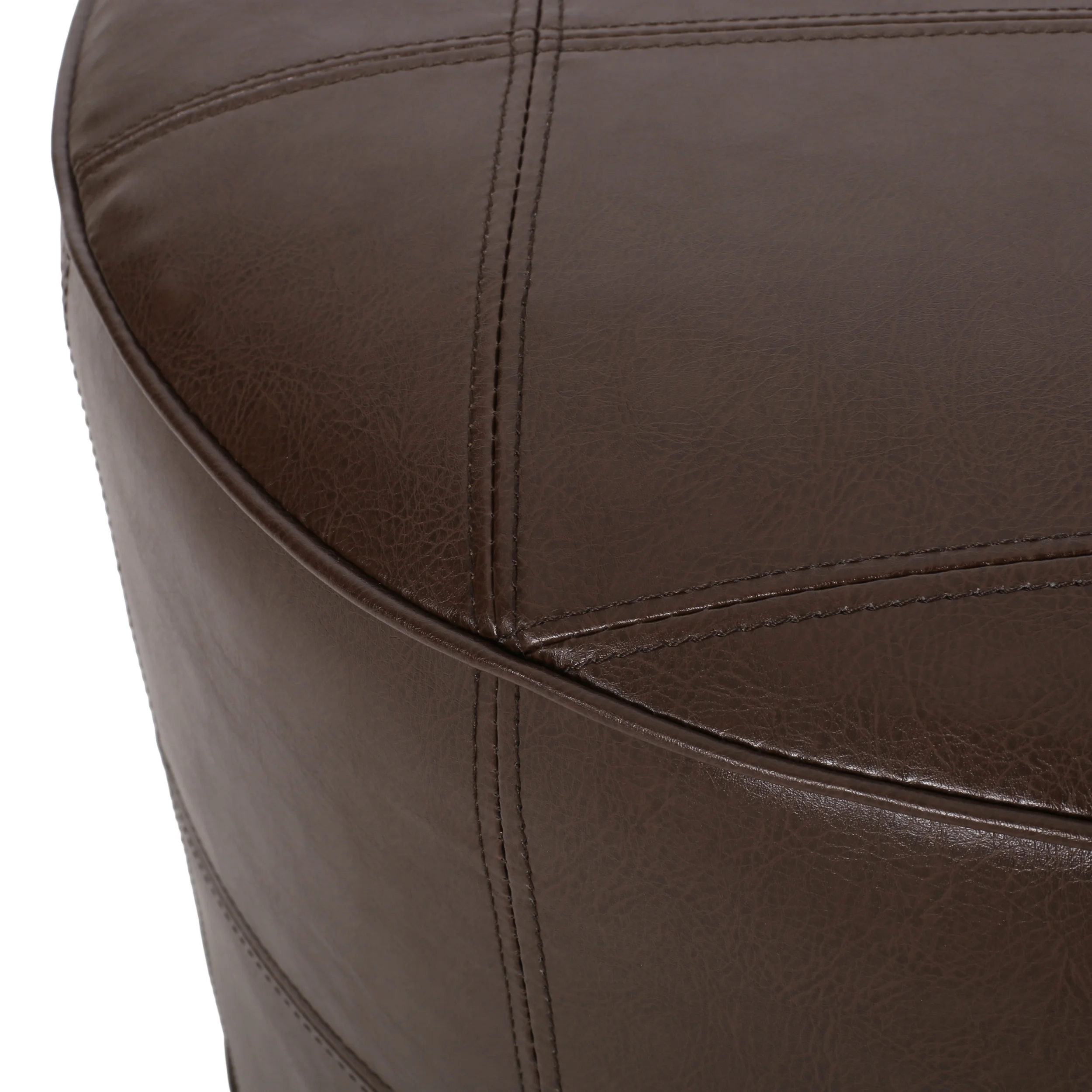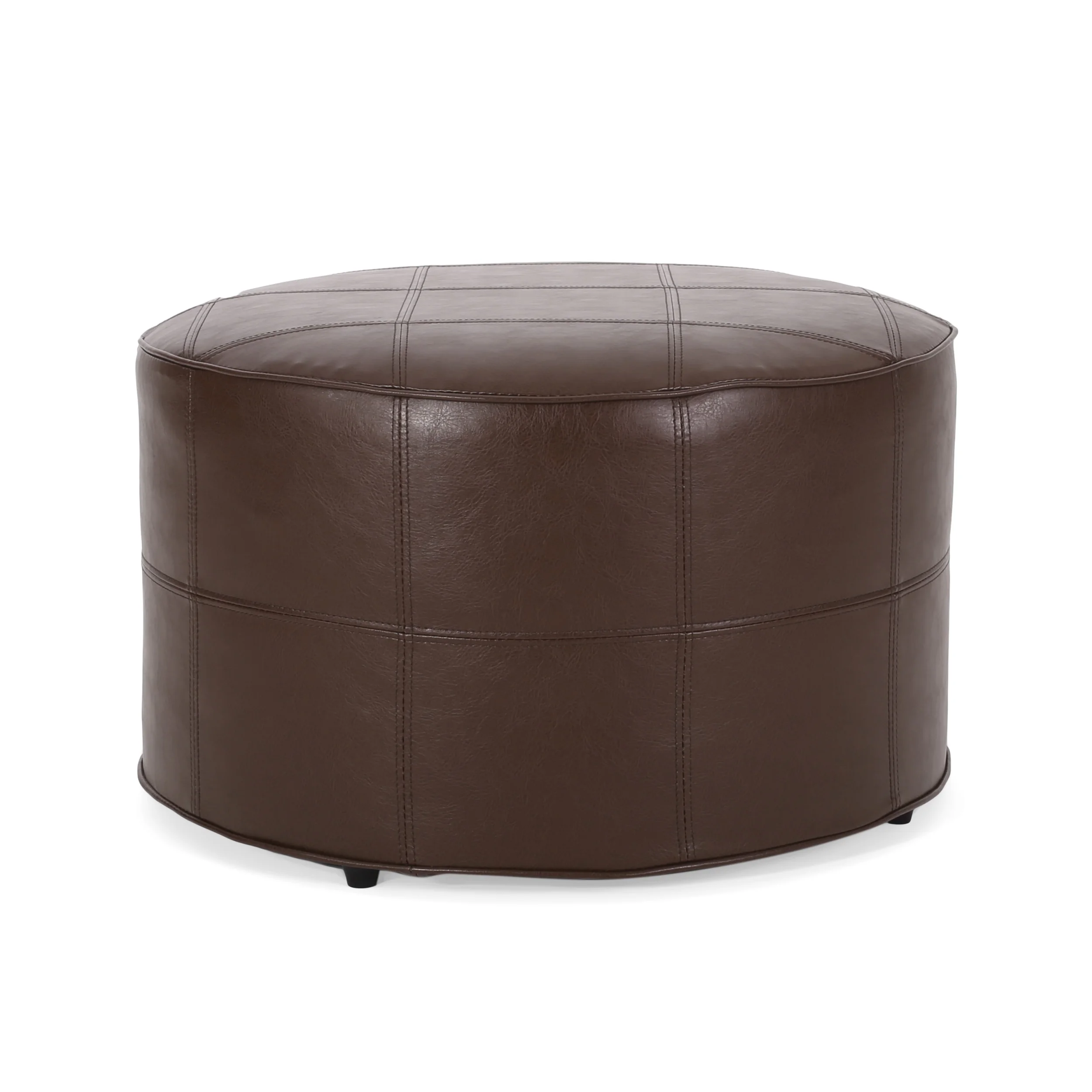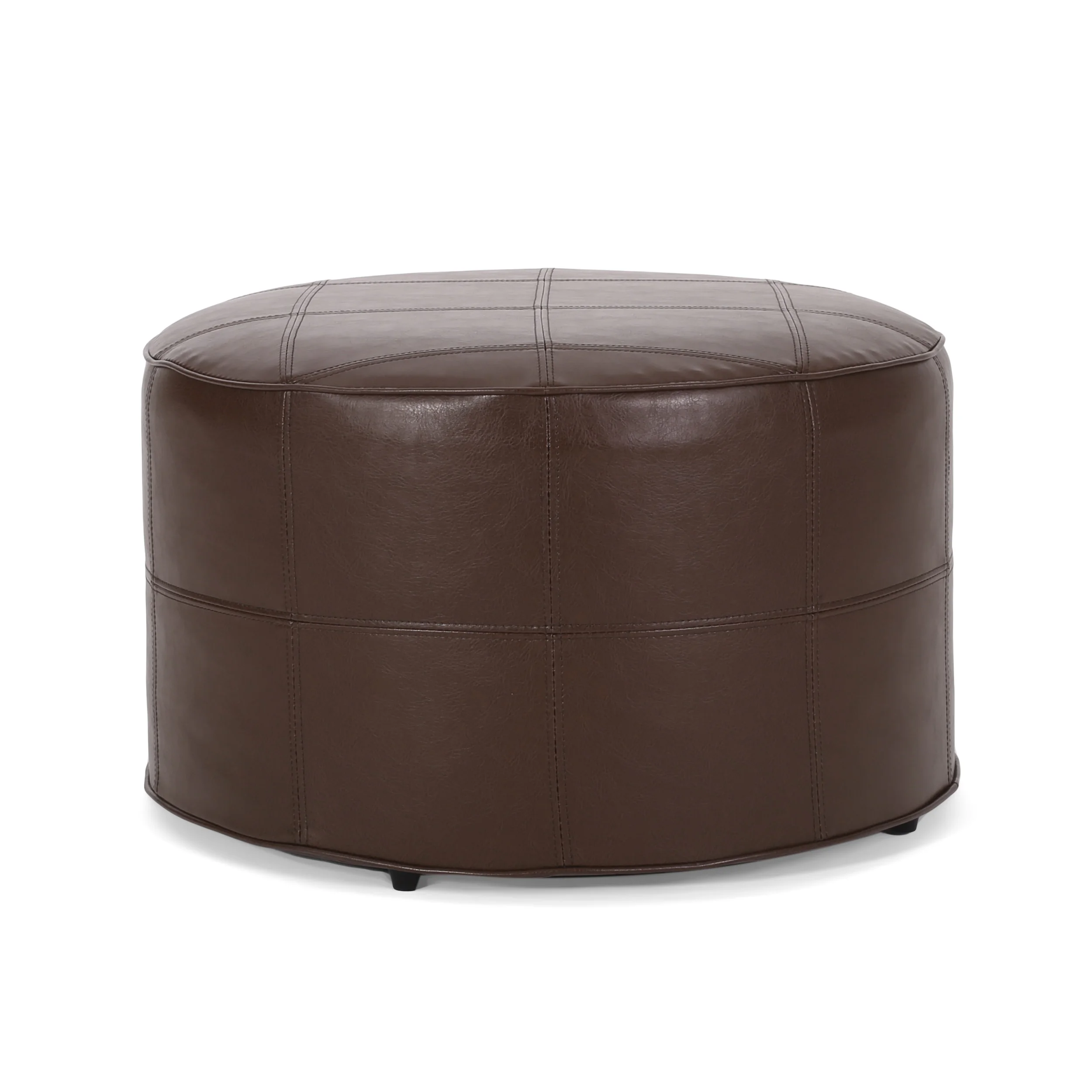 Noble House Derring Faux Leather Small Ottoman, Dark Brown