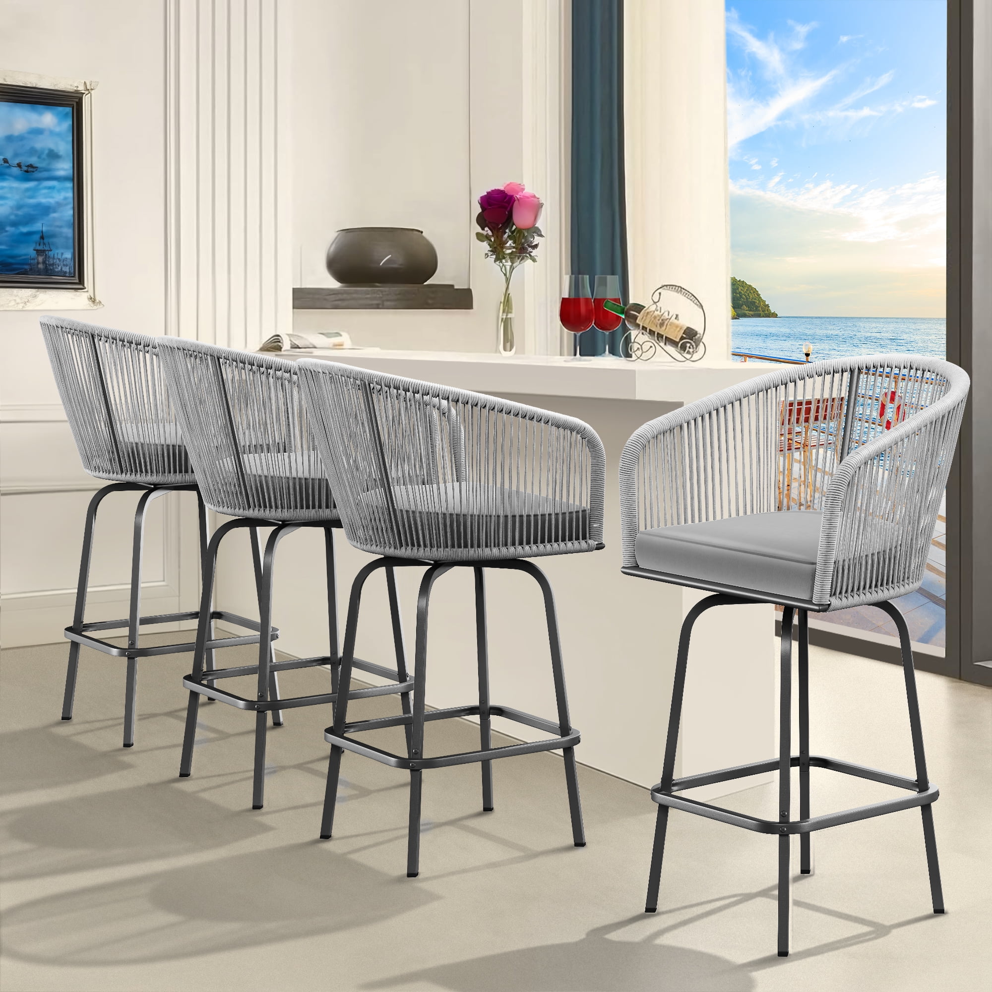 Add quintessential seating to your home that elevates your decor. Featuring smooth upholstery and a classic H-frame base, our barstool set brings a sophisticated touch to any interior space. Each stool has cozy armrests that not only offer incredible comfort but also truly accentuate the superior style of your home decor. Completed with a solid wood frame with a gorgeous weathered finish, this set of two barstools provides sturdy space for you to perch at any kitchen counter or home bar.