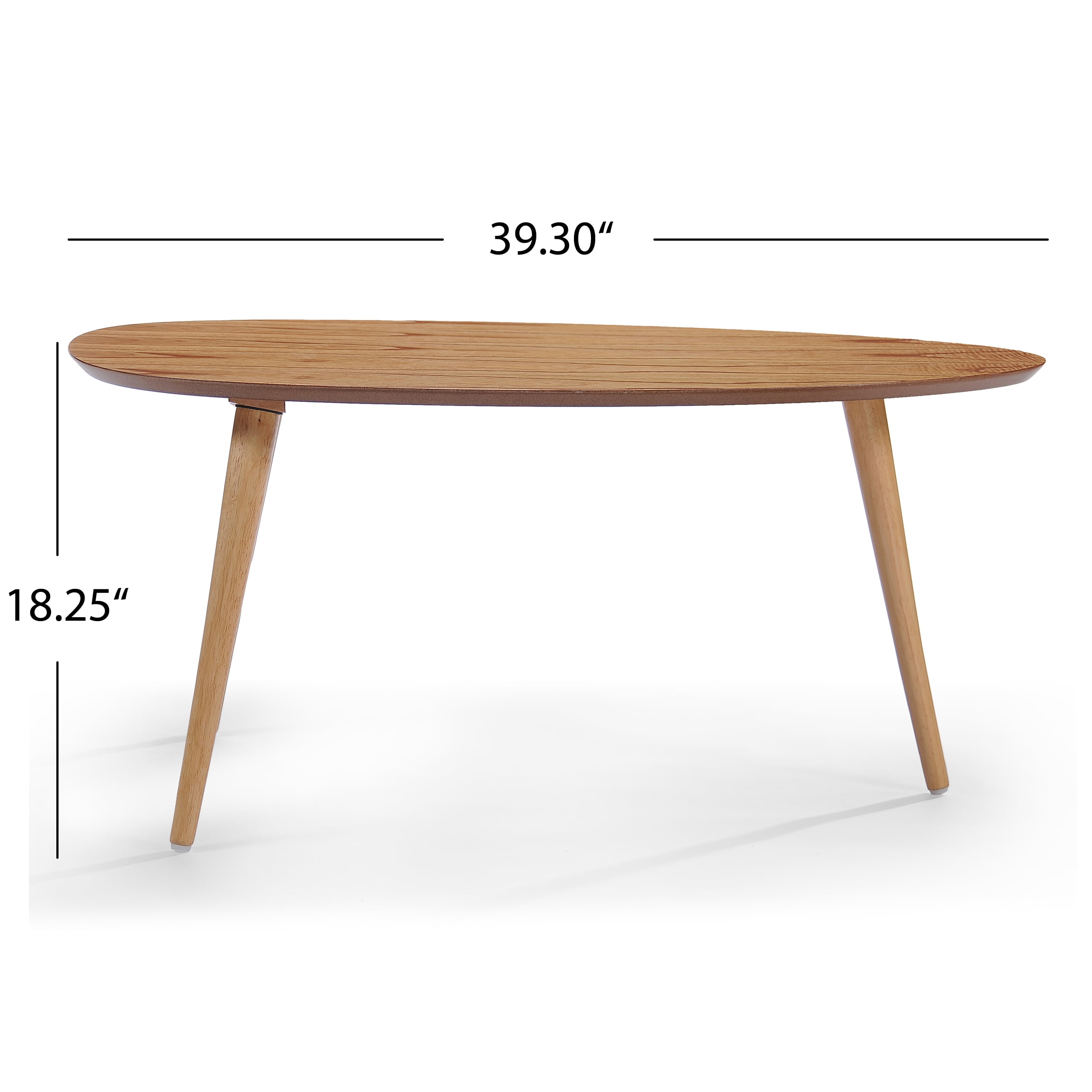 This egg shaped coffee table, made with rubberwood and mindi veneer, is a great addition to any home. The mid-century theme for this table gives it both a clean look as well as a smooth finish. This table is a must have for any mid-century fan, and is sure to match with any decor you currently have.