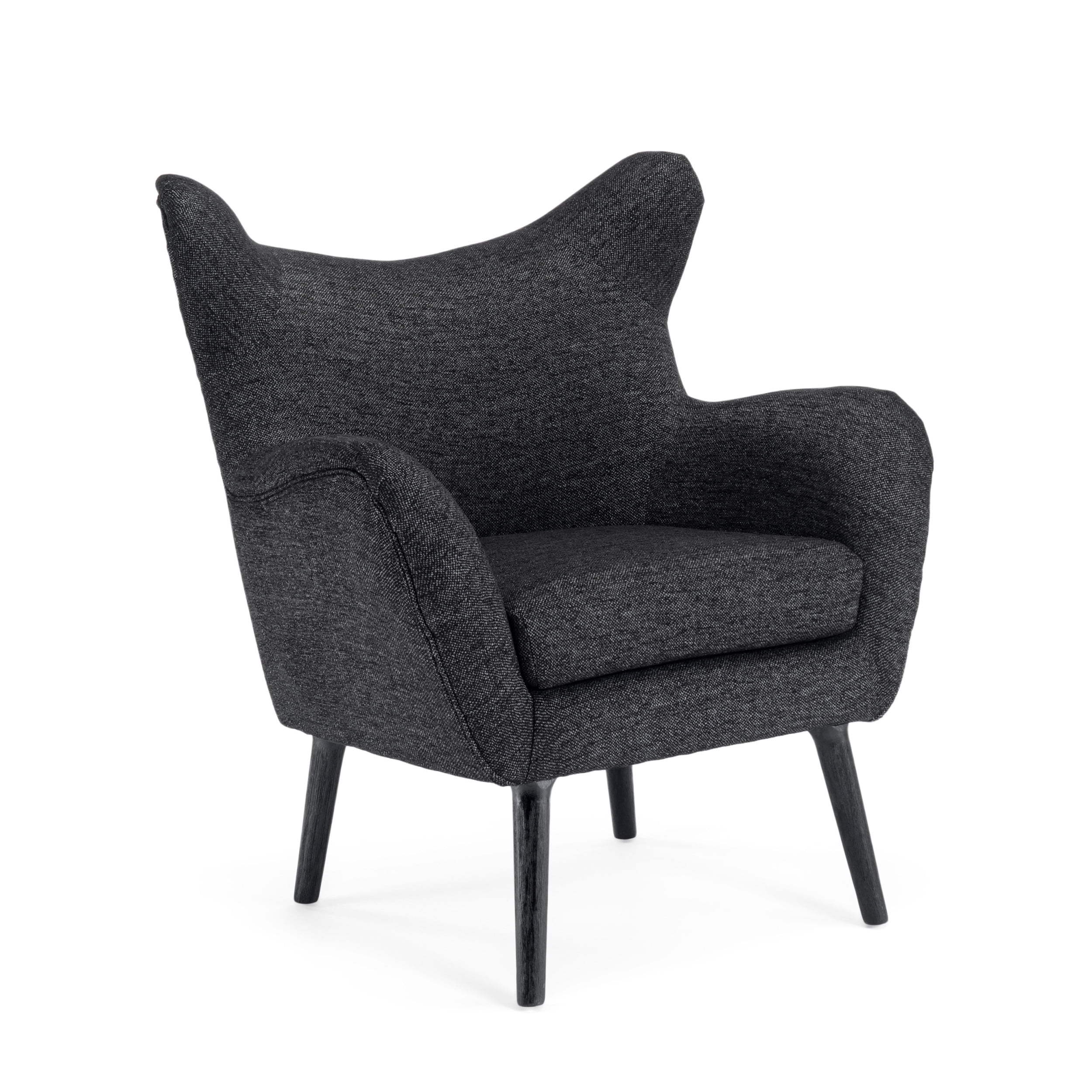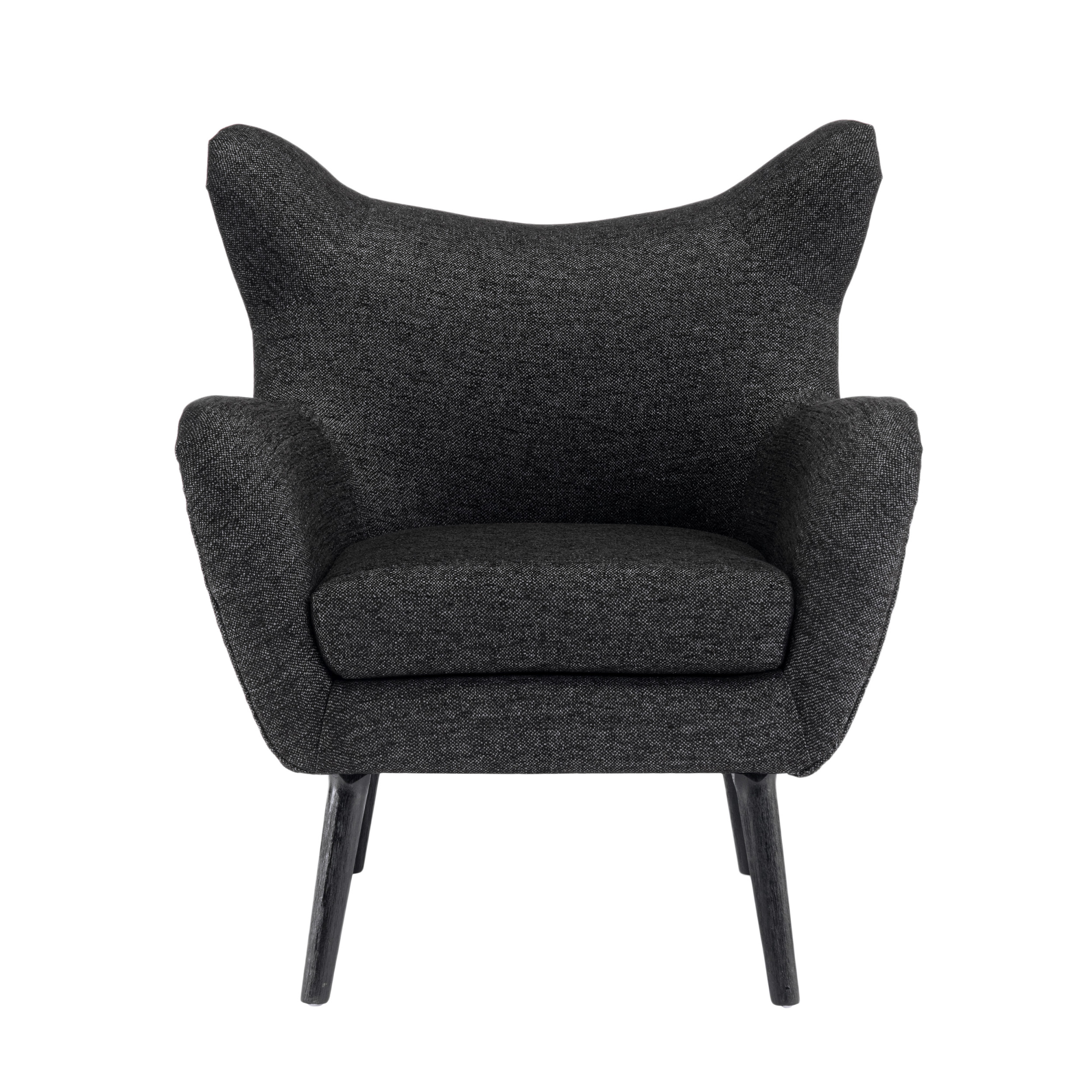 Noble House Edenbrook Fabric Wingback Club Chair, Black Textured Tweed and Black: Includes: One (1) Club Chair Material: Fabric Leg Material: Oak Wood Color: Black Textured Tweed Leg Finish: Black Assembly Required Dimensions: 29.00 inches deep x 34.00 inches wide x 39.00 inches high Seat Dimensions: 21.00 inches deep x 21.25 inches wide x 20.00 inches high Arm Height: 26.25 inches Weight Capacity: 300 lbs