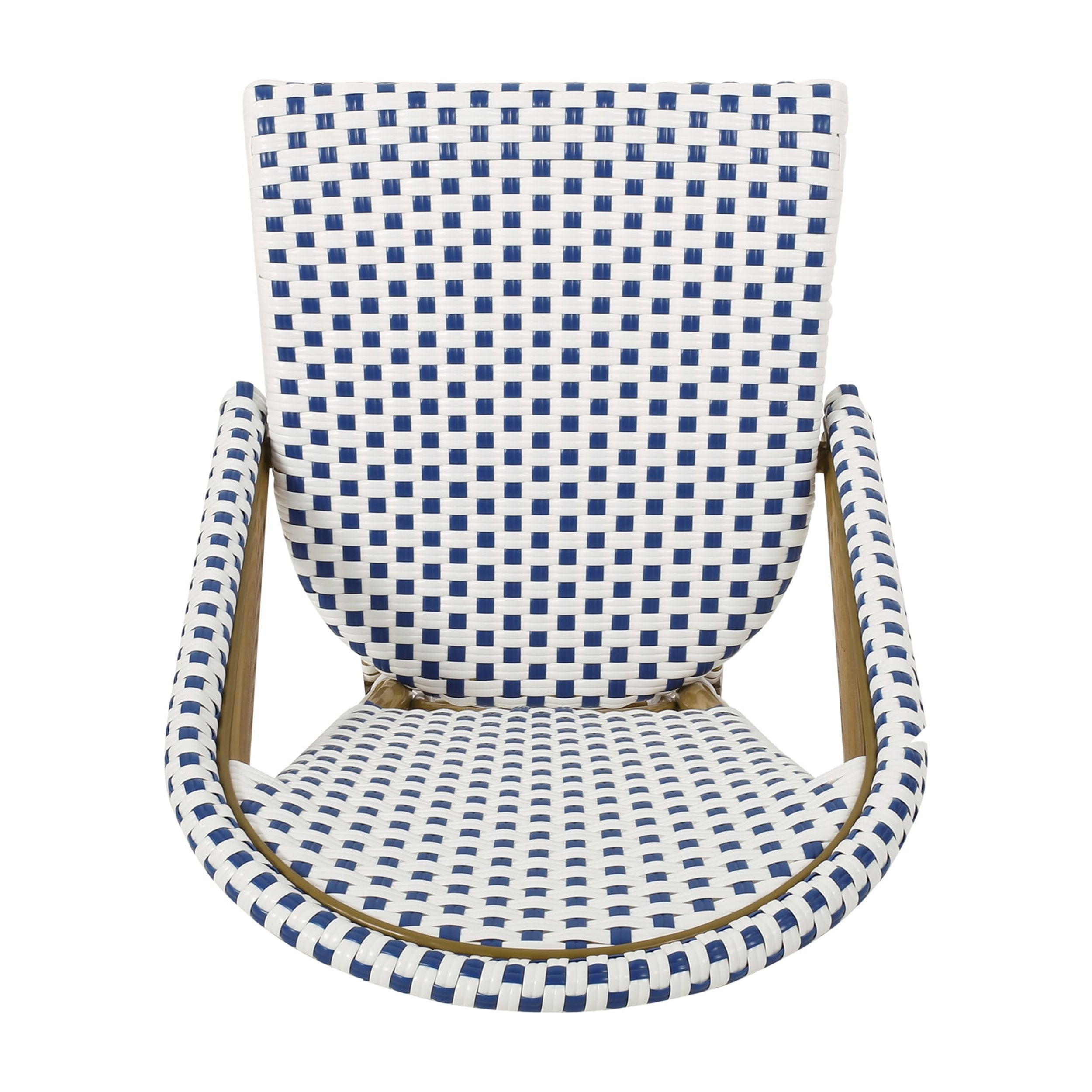 Add a breezy finishing touch to your patio space that provides the perfect spot for you and your guests to enjoy. Built with bamboo finished aluminum frames, this chair set not only offers a natural touch with its charming design but it showcases also outstanding durability. The seat and backrests are finished with stunning wicker which brings refreshing breathability and style to your summer lounging. Perfect to pair with a side table or your favorite bistro table, these accent chairs are sure to bring your outdoor space to the next level. FRENCH INSPIRATION: Designed with an outdoor cafe vibe in mind, our accent chairs bring a sophisticated air of relaxation to your home. With striking colors, wicker wrappings, and a classic curvaceous structure, our chair set brings the streets of Paris to your outdoor space. ALUMINUM FRAME WITH FINISH: This chair set is built with aluminum, creating a lightweight and stable frame. This material is rust-resistant which will further extend the life of your product. This is finished with a bamboo print finish to give this set a natural look. POLYETHYLENE RATTAN: Featuring a long-lasting woven finish, this style is not only incredibly durable but also provides a versatile appearance. The intricate details of this material allow this piece to blend seamlessly with your outdoor decor. DIMENSIONS: Choose an accessory that is the perfect size for you and your furniture. You will love how much your space can transform with the simple addition of this charming chair set. ASSEMBLY REQUIRED: Some assembly is required for this chair set. All of the instructions and tools needed for assembly are included. This comes as a set of two. For residential use only. Not intended for commercial purposes. Features: Set includes 2 dining chairs Material: Aluminum, faux rattan Finish: Blue, white Frame material: Aluminum Seat and back material: Faux rattan Wrapping material: Faux rattan Frame finish: Bamboo print Multiple color options For residential use only. Not intended for commercial purposes. Specifications: Product Dimensions: 35″H x 18.5″W x 21.5″D Product Weight: 16.98 lbs Seat Dimensions: 17.5″H x 16″W x 16.5″D