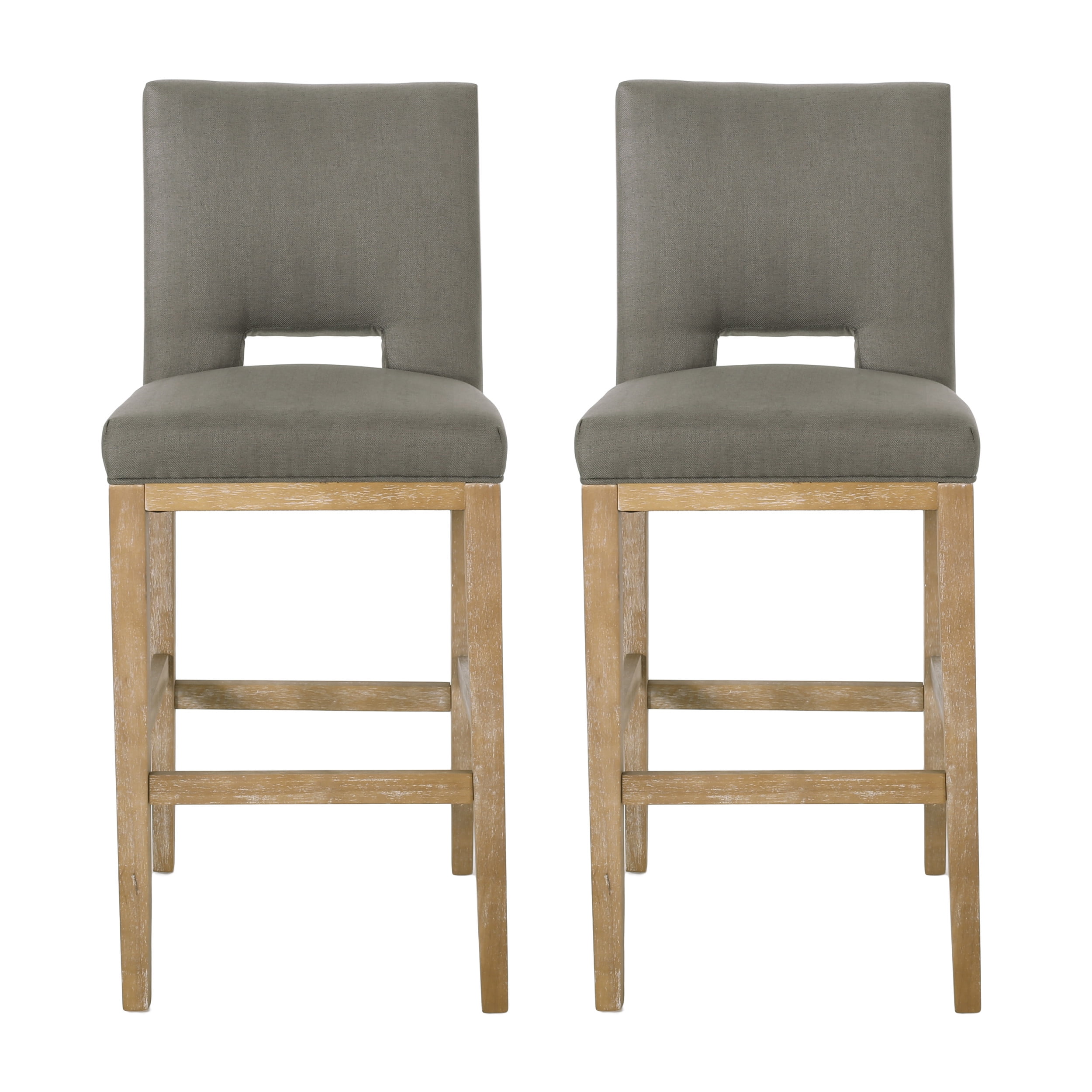 Noble House Elmcrest Fabric Upholstered 31 Inch Barstools, Set of 2, Deep Gray and Weathered Natural